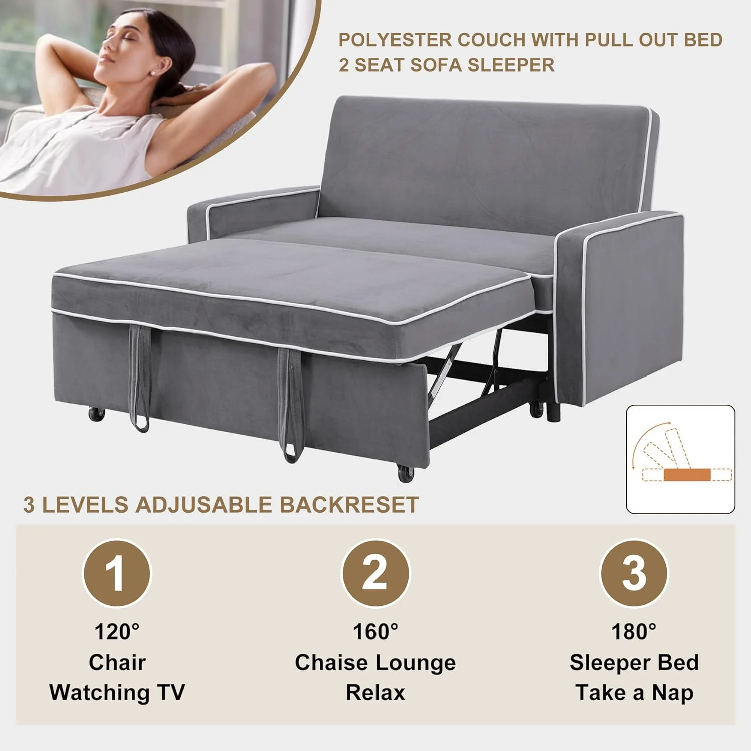 DEALTOPS Pull Out Loveseats Sleeper Sofa Bed, Gray