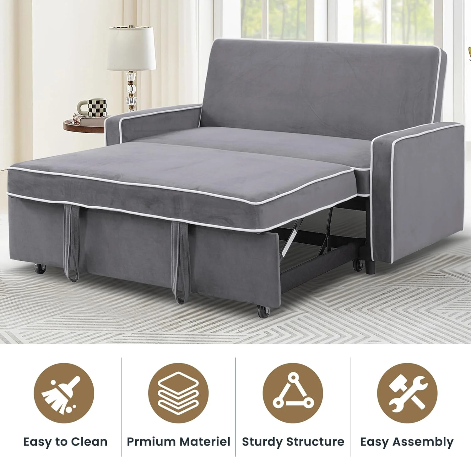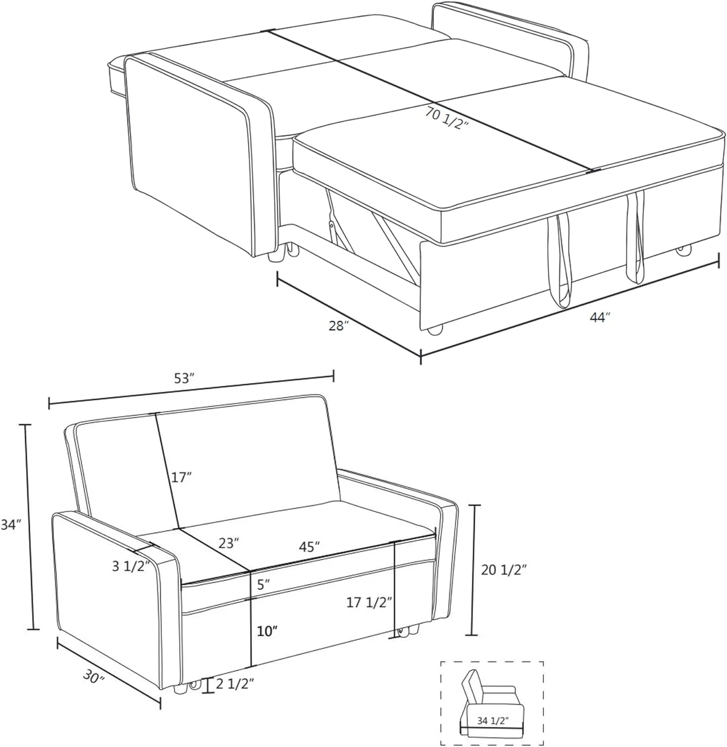 Space-Efficient Design: This pull-out sofa bed is perfect for compact living spaces. It’s a stylish sofa by day and transforms effortlessly into a bed, maximizing furniture utility with a smooth pull-out mechanism. Versatile 3-in-1 Functionality: These sofa beds serve as a comfortable sofa, convenient daybed, and a space-saving pull-out bed. The design optimizes functionality without sacrificing comfort, making it ideal for smaller living spaces. Adjustable Backrest: The loveseat sleeper sofa bed features an adjustable backrest for a customizable seating solution. Users can personalize the angle and support, making it suitable for lounging, entertainment, and sleeping. Durable Framework: Boasting a sturdy framework, this pull-out sofa ensures longevity and stability. Crafted from high-quality materials, it’s capable of withstanding regular use. Premium materials enhance both aesthetic appeal and durability. Simple Assembly Process: The convertible loveseat has a straightforward assembly process with clear instructions and minimal components. It requires no specialized tools, making it accessible to a wide range of users for quick and easy setup.