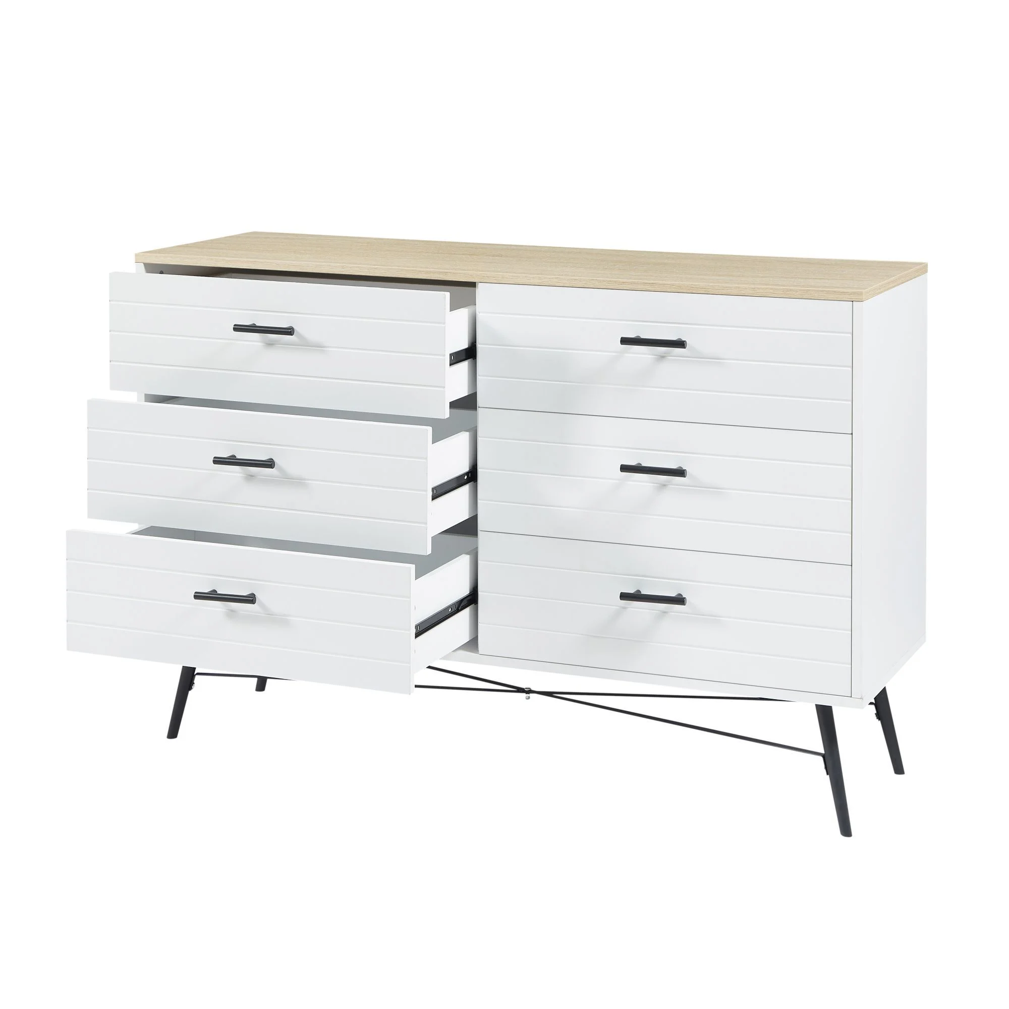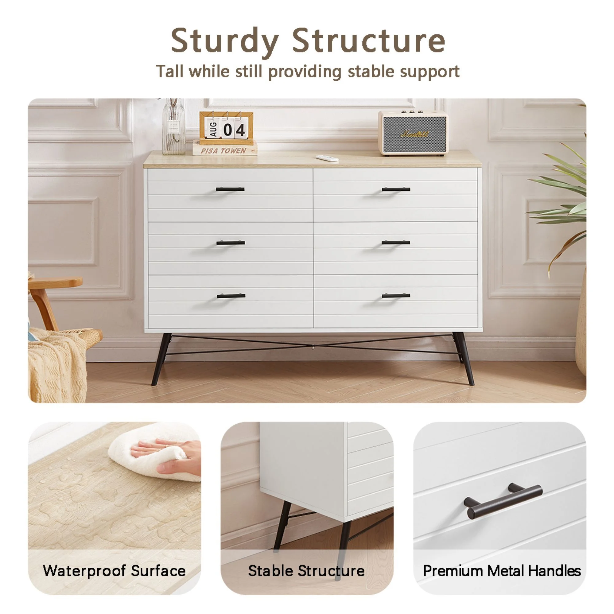 DEALTOPS Sleek 6-Drawer Dresser with X-Shaped Feet, Spacious Chest of Drawers, White