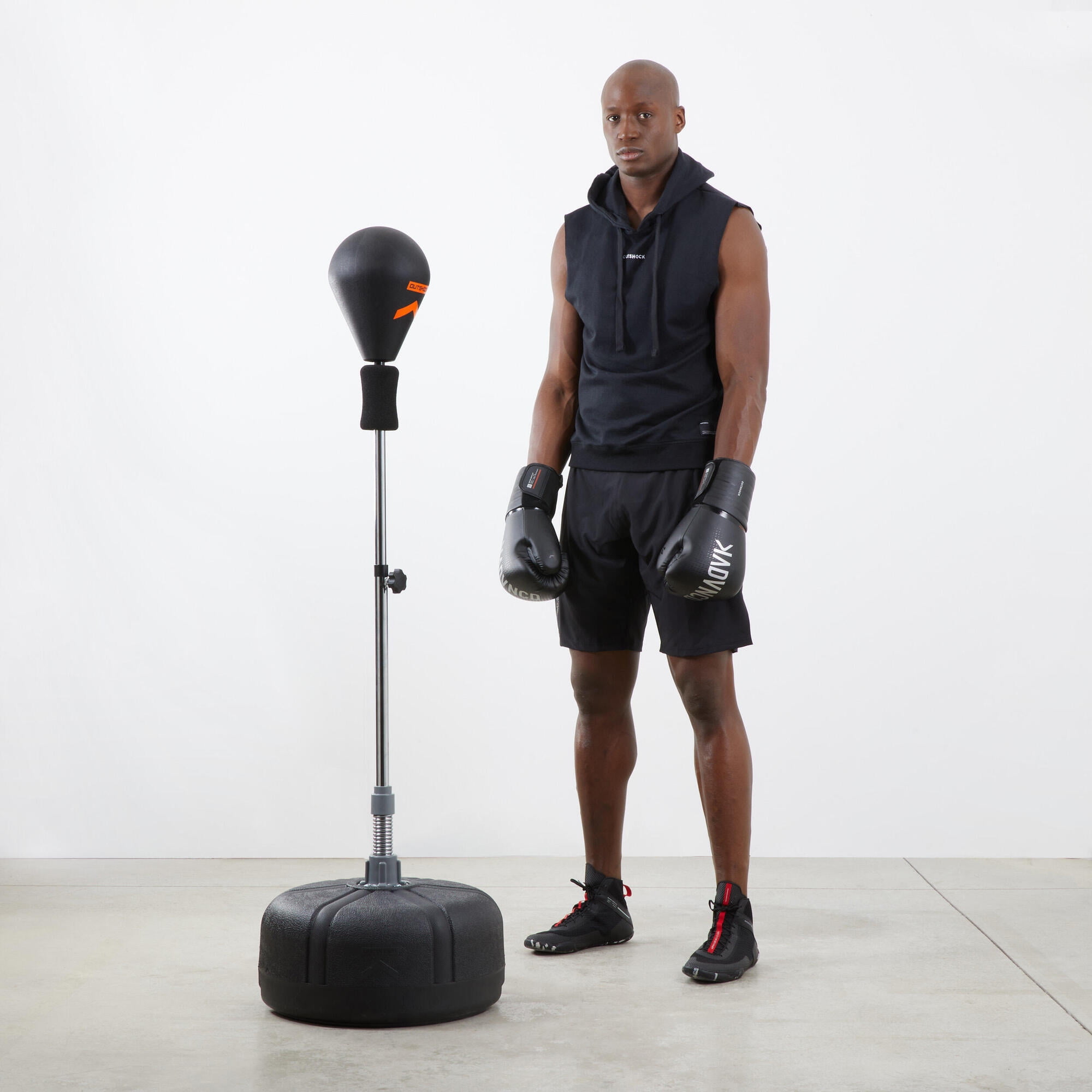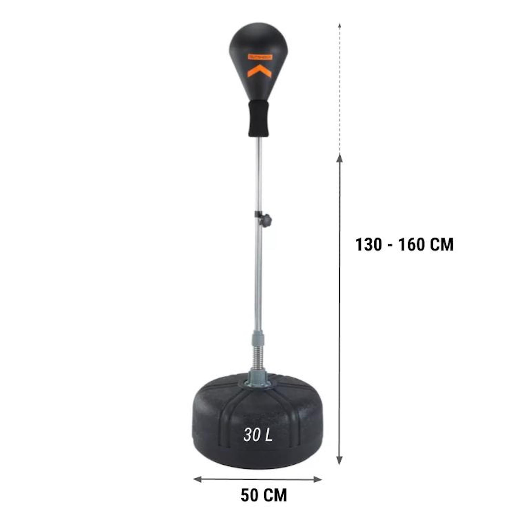 Decathlon Outshock, Adjustable height, Fitness training Punching Ball with stand, Adult Durability Punching Ball made of preformed foam. Th punching ball is designed to help you work on your punches and dodging movements. The pear-shaped foam ball has a stable metal base with a spring that is highly responsive to strikes. Steel pole for maximum resistance. Stability The base can be weighted with water or sand for excellent stability. Weighing in at 12.16 lbs. Versatility Adjustable height (51.2″ – 63″) Diameter: 19.7″ Always use protective gloves when hitting the ball to avoid injury (burns, bruises). Care advice Always use protective gloves when hitting the ball to avoid injury (burns, bruises). Clean your punching ball with a damp cloth and soapy water, and rinse it with fresh water. Do not store in a damp place (indoors or outdoors).
