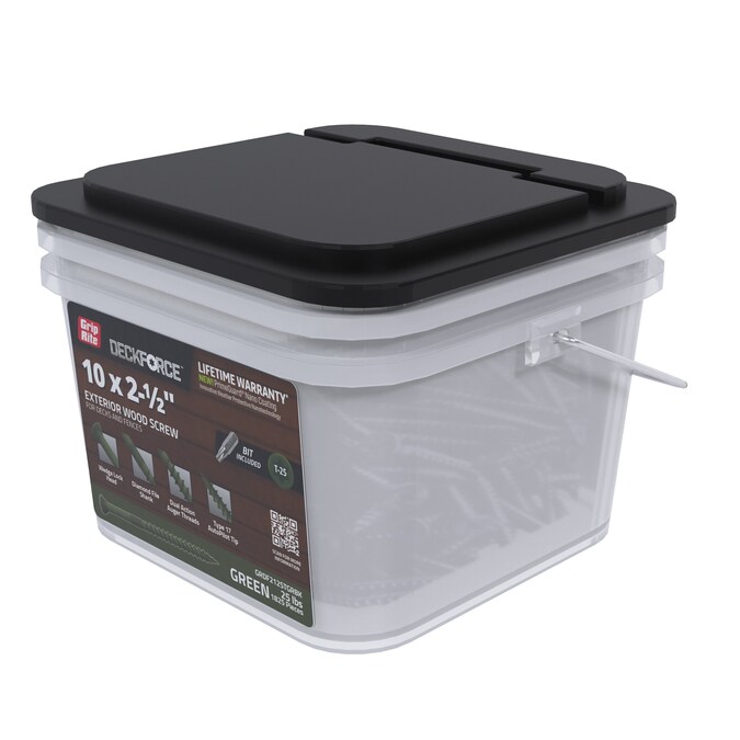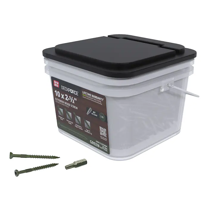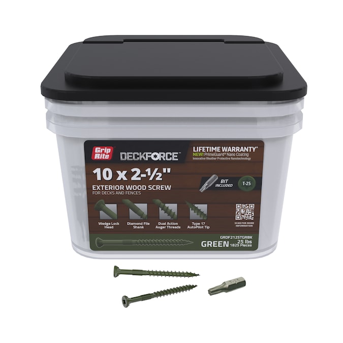 Sharp, strong, and swift: DeckForce exterior wood screws are the top choice for decks and fences. Reinforced with PrimeGuard Nano coating using innovative weather protective nanotechnology, DeckForce exterior wood screws have maximum corrosion-resistant protection backed by a limited lifetime warranty. Finish projects faster and with ease thanks to the dual action auger threads ensuring a smooth drive with little torque needed. Stop struggling and slipping with the sharp and precise T-17 autopilot tip, which virtually eliminates splitting wood or pre-drilling. The unique wedge lock head is specifically designed for the firmest connection and seamless finish. A job done right is a job well done using DeckForce exterior wood screws for decking and fencing.