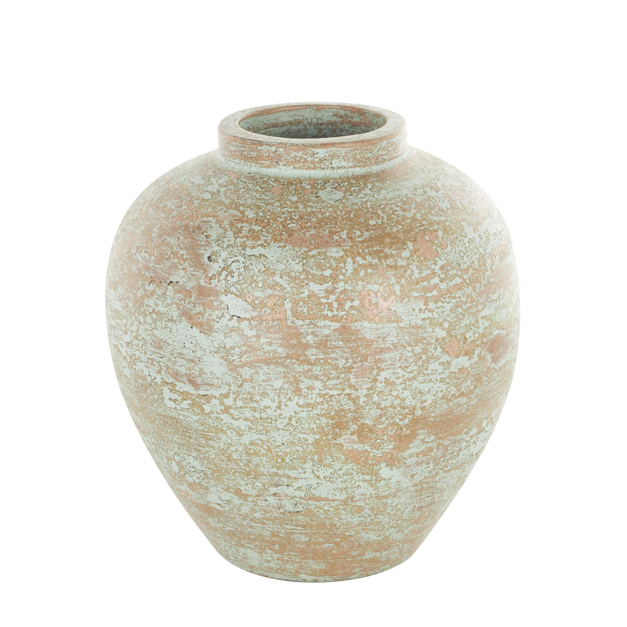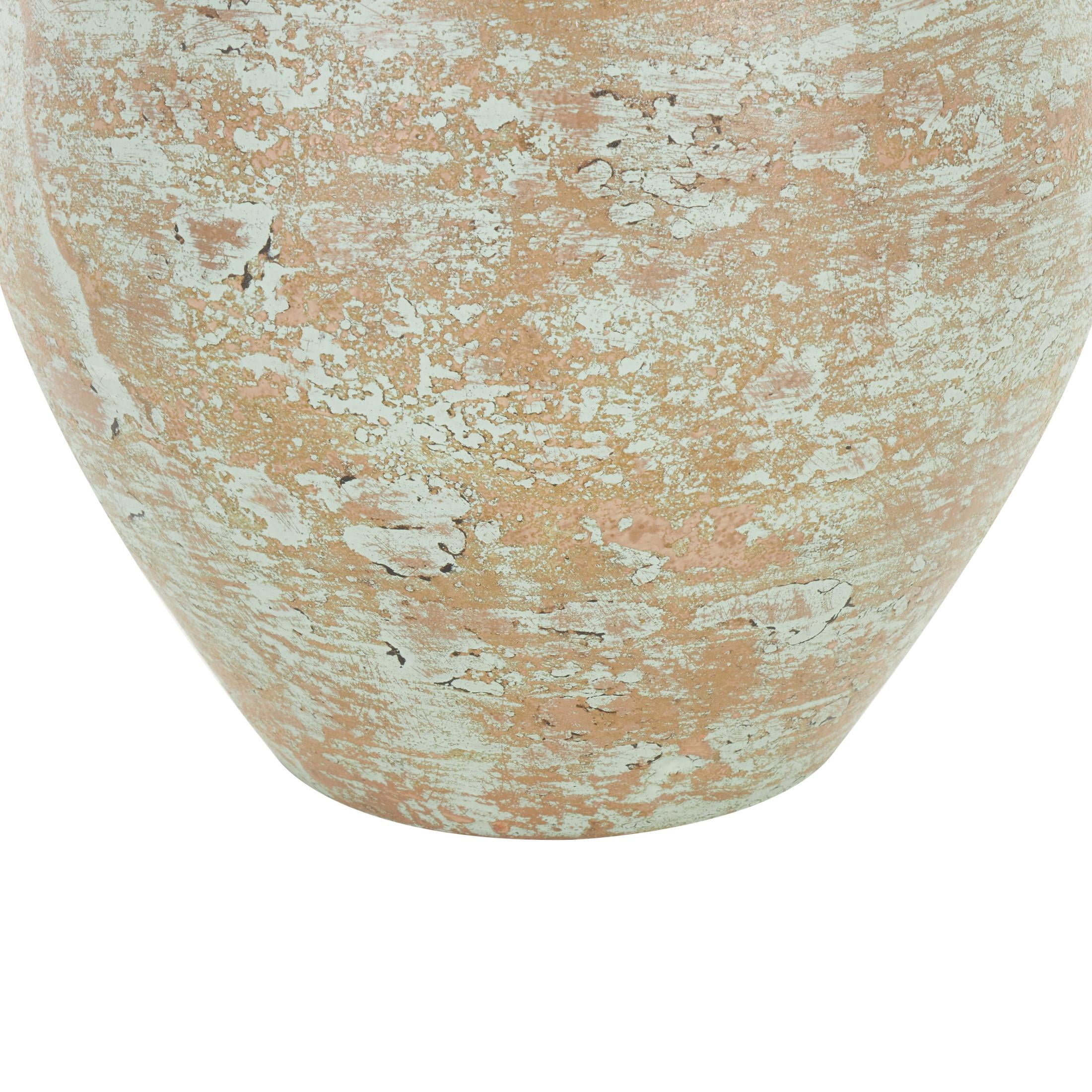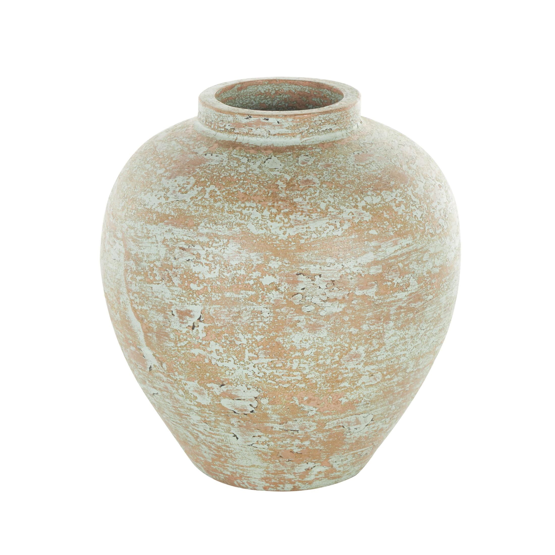 Infuse your home with cozy charm, where weathered textures, rustic finishes, and warm earthy tones create a wholesome atmosphere Crafted from red clay this brown decorative vase embodies a rustic elegance Featuring a brown color with green distressing, this round home decor vase has an antique and rustic charm An exceptional feature of this ceramic vase is its antique style, which imparts a charm to the piece The brown ceramic vase measures 11L x 11.05W x 12H inches, and weighs 10.945 lbs A classic rounded shaped distressed brown vase for dried flowers offers a timeless and versatile design, with texturing that adds artistic dimension to your decor Wipe clean with a dry cloth This farmhouse vase for home decor is molded and shaped from red clay and applying weathering and distressing techniques to create an aged and rustic appearance Farmhouse style DecMode 12″ Antique Style Textured Patina Brown Ceramic Vase makes a perfect addition to any home