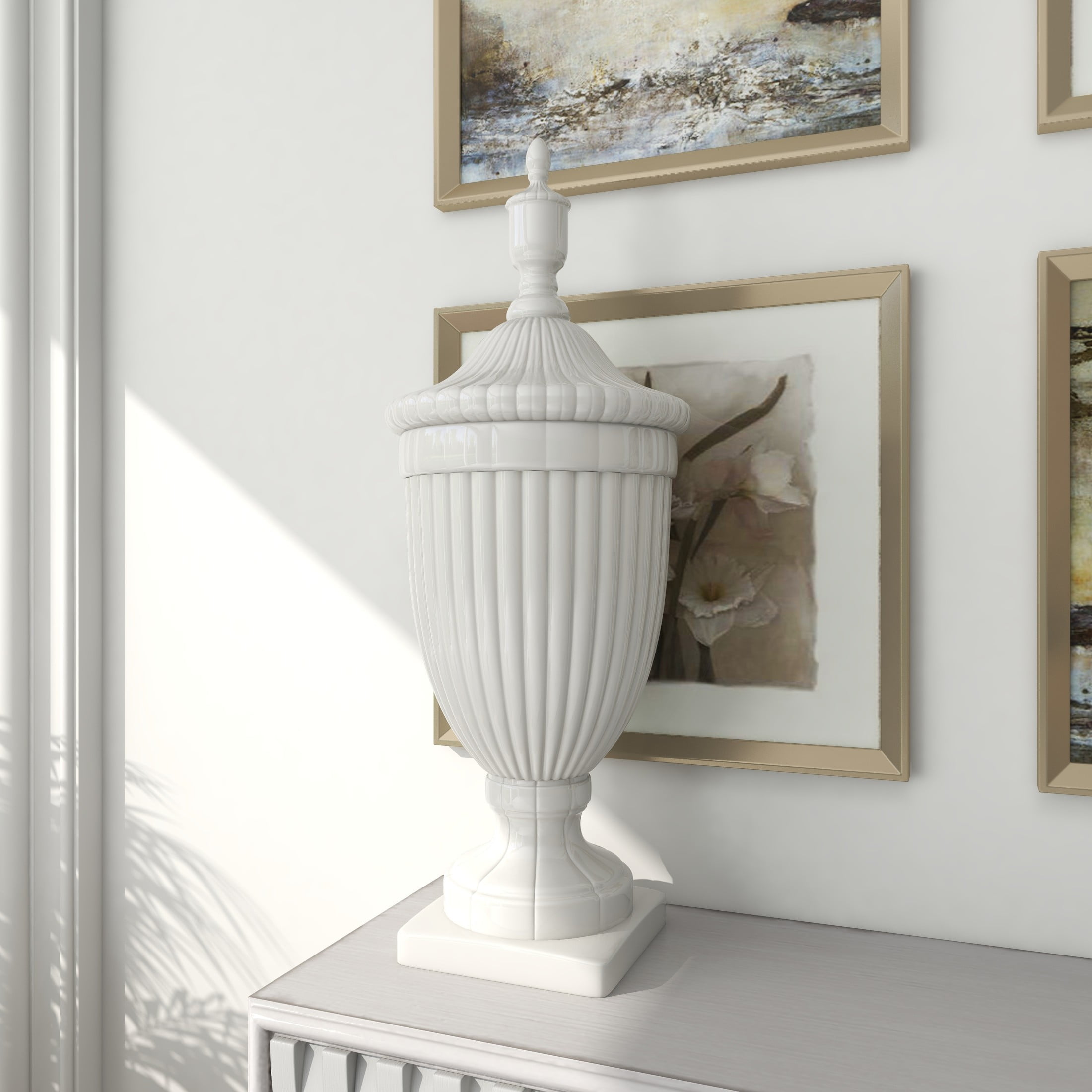 | Color | White Tall Fluted Urn Solid Amphora 12" x 12" x 32" |