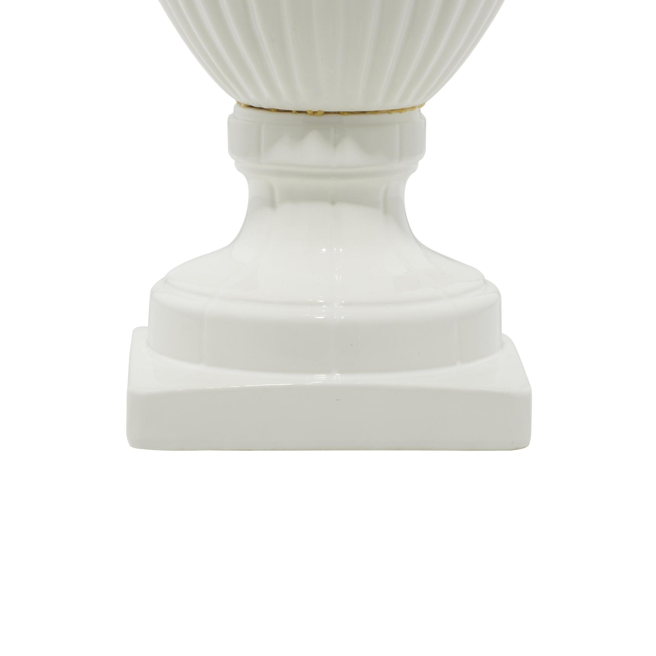 DecMode 12″ x 32″ White Ceramic Tall Fluted Urn Decorative Jars with Grooves and Lid, 1-Piece is a unique addition to your stylish home. The perfect compact storage for your belongings while keeping your surface space protected. Give your surface space a finishing touch with these beautifully crafted decorative jars. Serving as a versatile piece of decor, this white decorative container can be strategically placed on tables in your living room for an elevated look. Designed with felt or rubber stoppers at the base that prevent scratching furniture and table tops, as well as sliding around. This item ships in 1 carton. Please note that this item is for decorative purposes only and is not food safe. Dolomite decorative jars make a great gift for any occasion. Suitable for indoor use only. This item ships fully assembled in one piece. This is a single white colored decorative containers. Country style. Vase has a 10 in mouth opening.