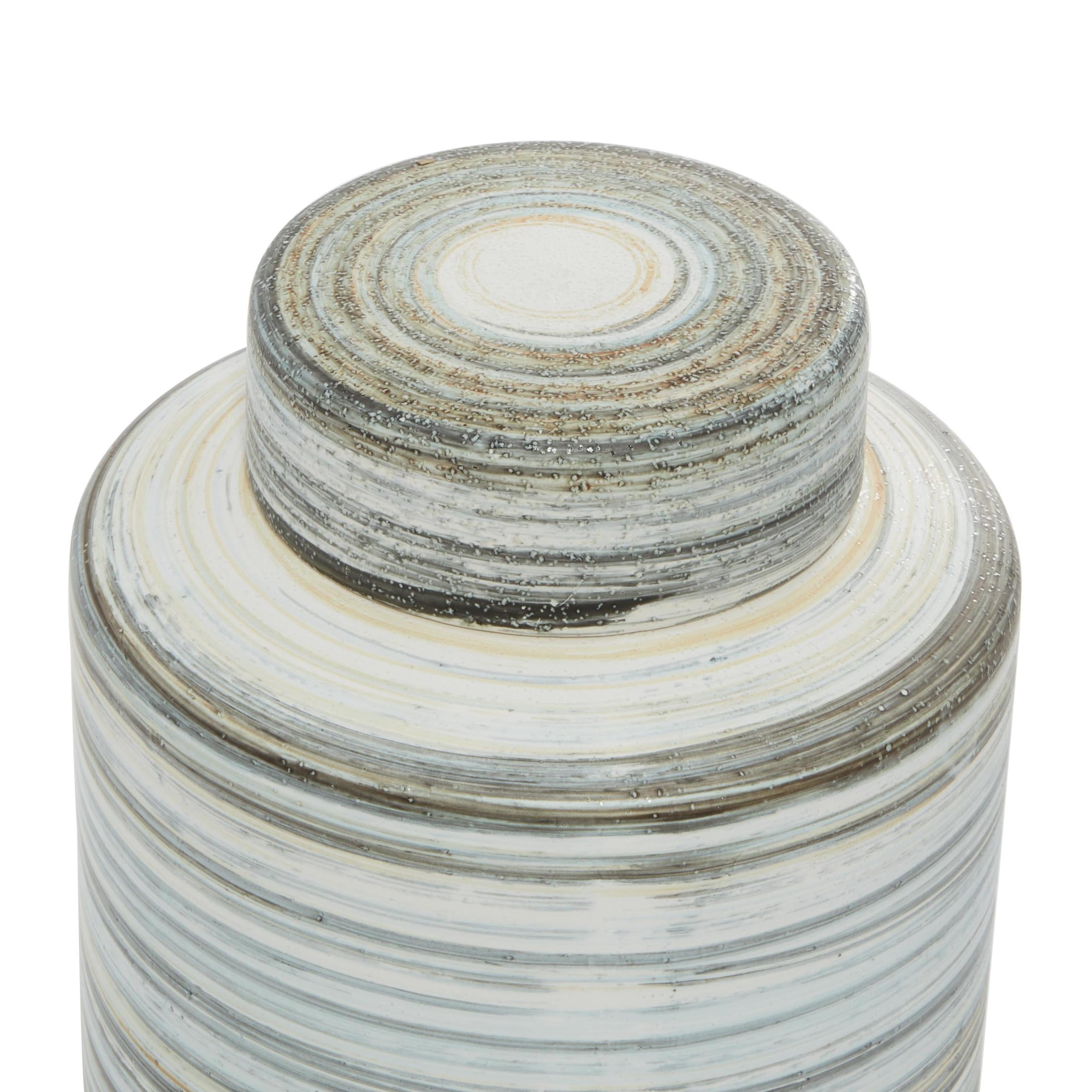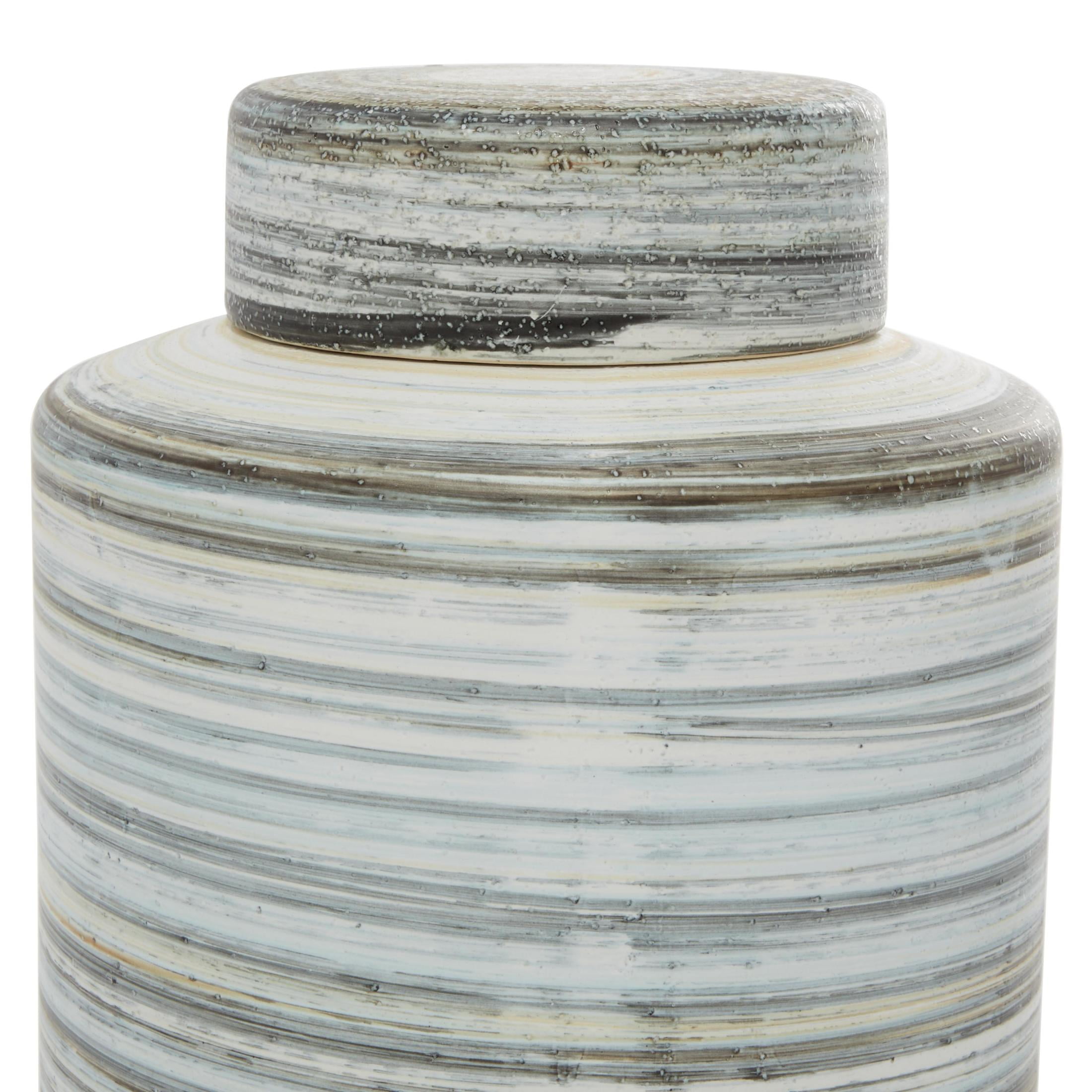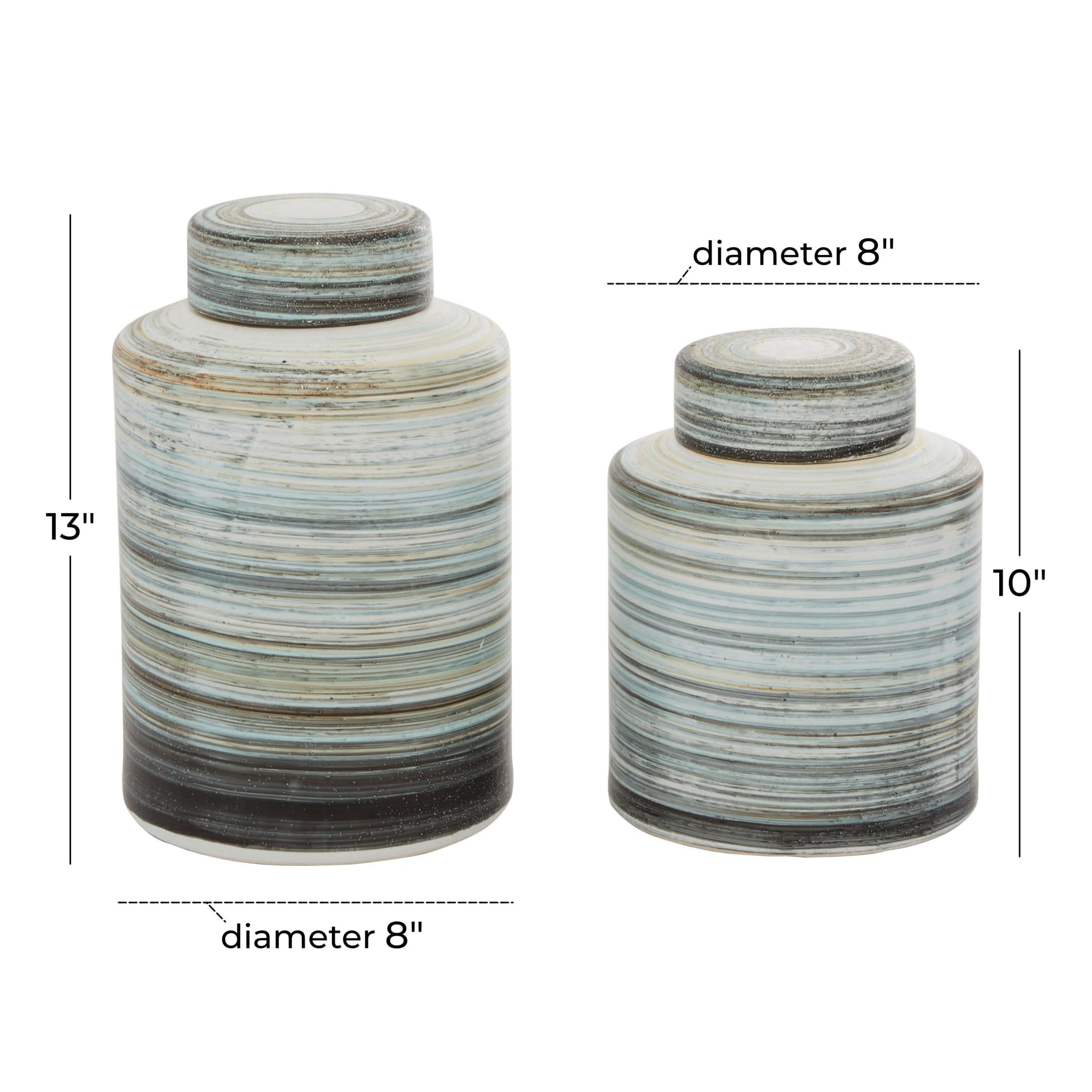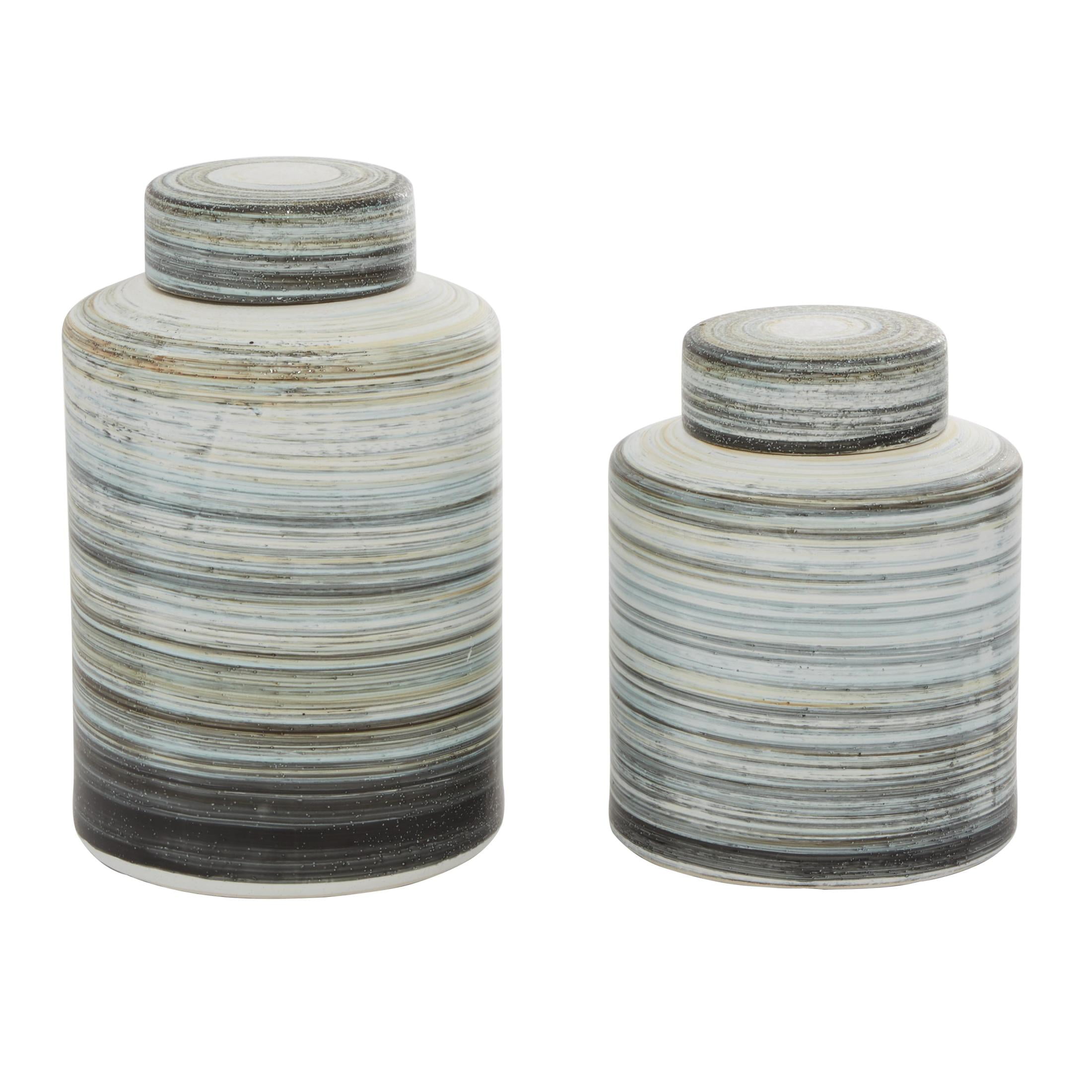 DecMode 13″, 10″H Gray Ceramic Striped Decorative Jars, 2-Pieces