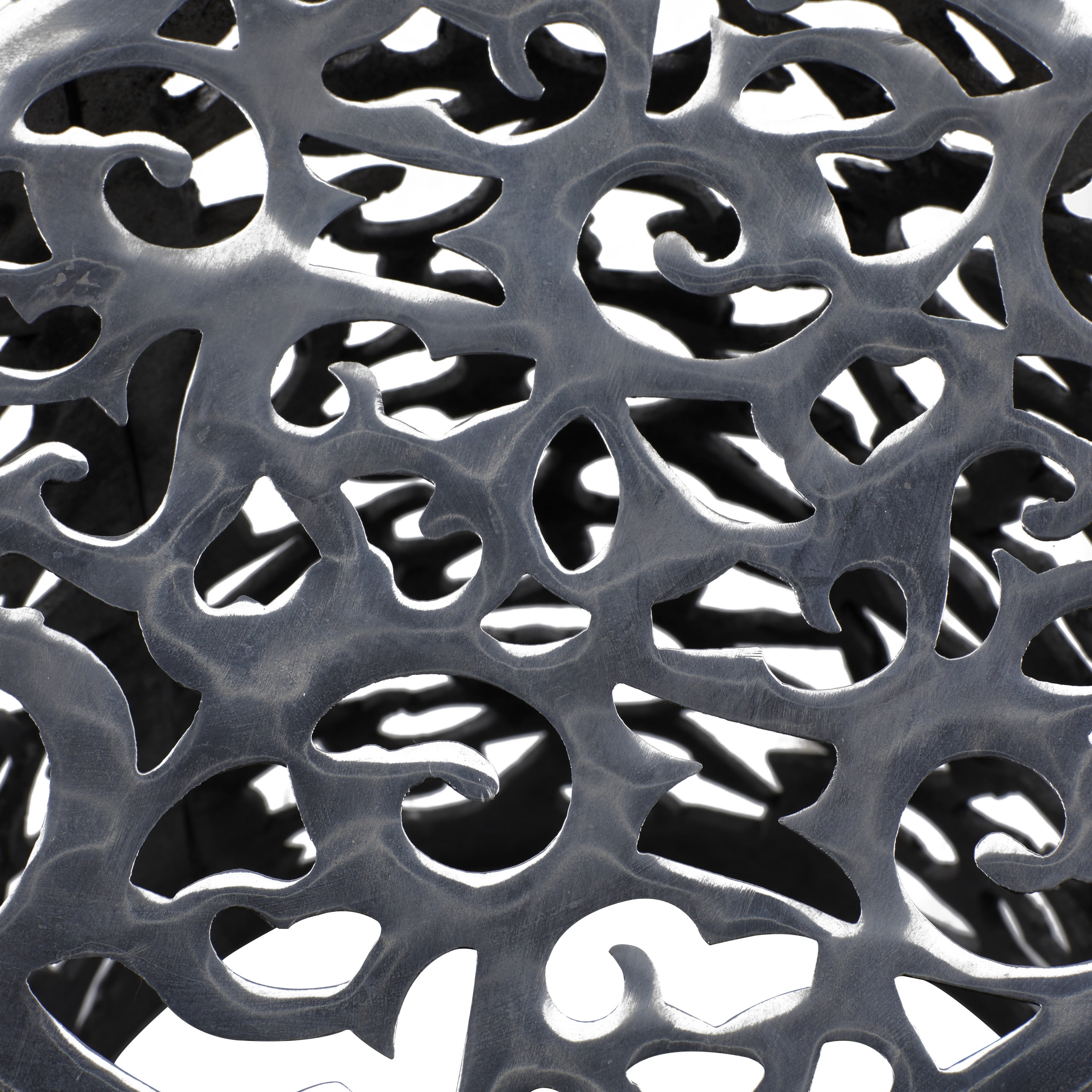 DecMode 13″ x 18″ Silver Aluminum Scroll Accent Table, 1-Piece is a unique addition to your stylish home. Bring a finishing touch to your home with an inviting appeal with this beautifully crafted accent table. A compact friendly table providing you with additional surface storage space any where in your home. Round silver accent table are best displayed near upholstered sofa or platform beds with potted plants and small decorative objects. This item ships in 1 carton. Suitable for indoor use only. This item ships fully assembled in one piece. Maximum weight limit is 100 lbs. Made in India. This is a single silver colored end table. Contemporary style.