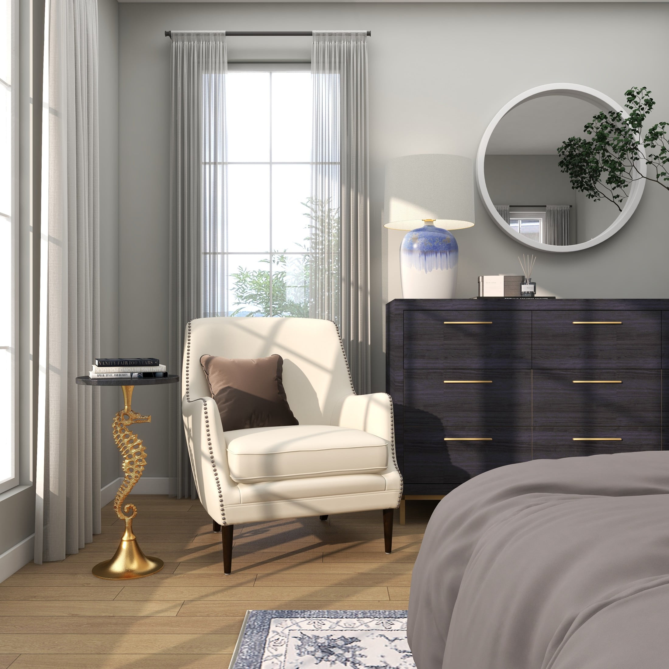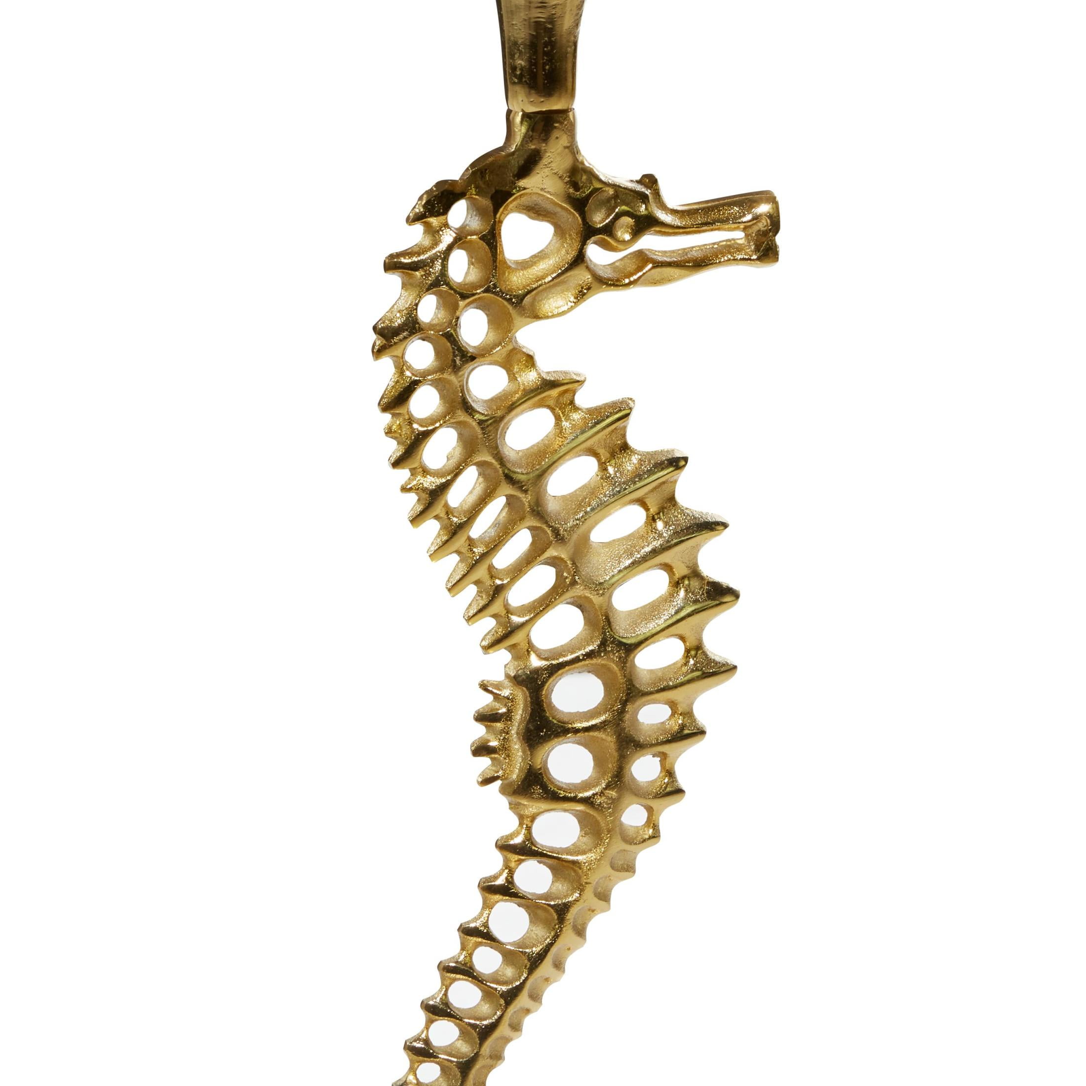 Inspired by blissful serenity and the allure of the sea, where soothing hues and natural textures bring effortless charm to the home A gold and black seahorse accent table constructed of robust and shiny aluminum material Metal seahorse-inspired side table flaunts a metallic gold finish with black top that brings elegance and next level style to your home Features a stylish table with a sea horse sculpture base in a pedestal style structure and complemented with round tray top for optimal display The accent table measures 13L x 13W x 24.75H inches, and weighs 13.14 lbs A head-turner accent furniture that includes a round top and a seahorse-designed pedestal Wipe clean with a dry cloth Aluminum pedestal is welded to form a unique and glossy seahorse design Coastal style DecMode 13″ x 25″ Gold Aluminum Sea Horse Accent Table with Black Marble Table Top, 1-Piece makes a perfect addition to any home