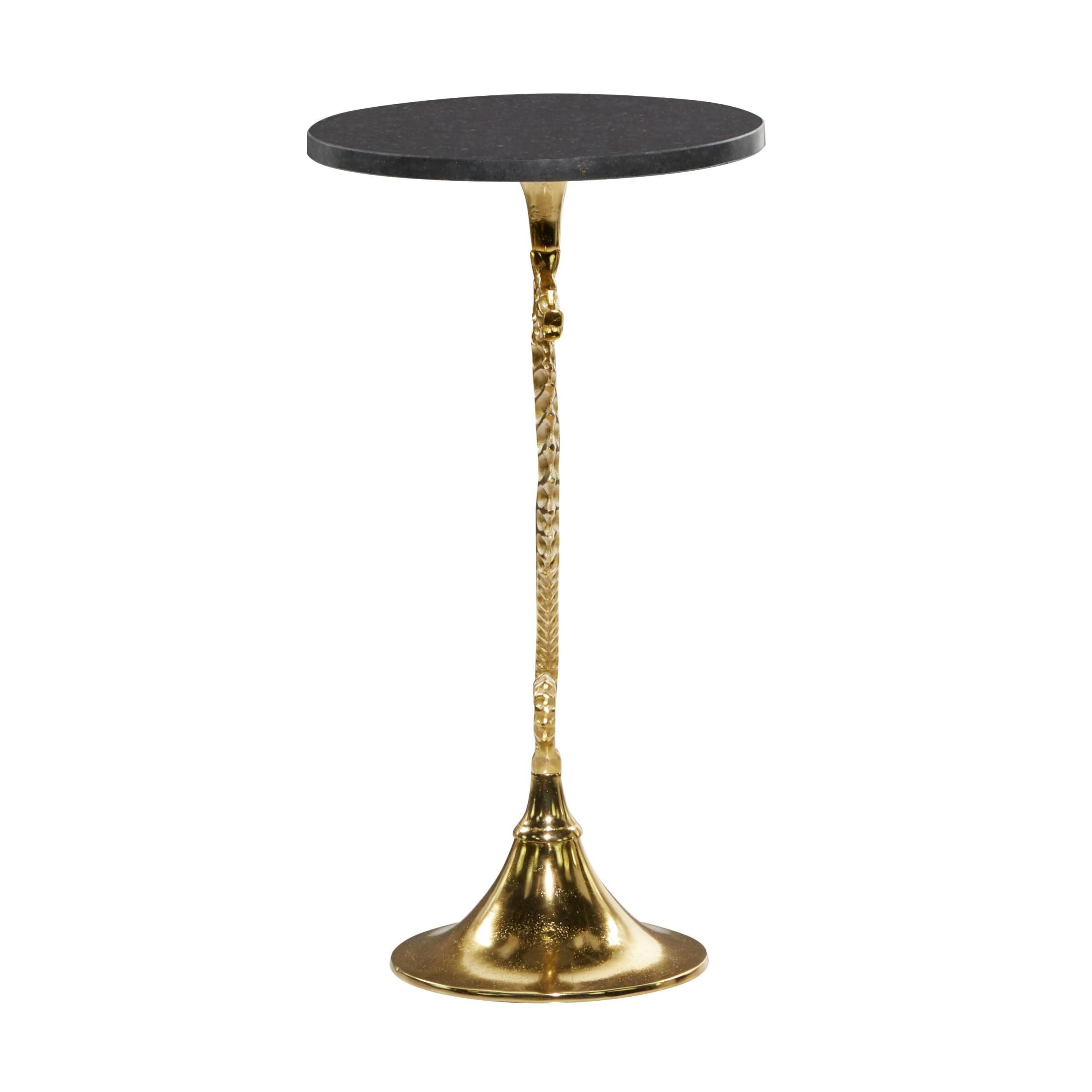 DecMode 13″ x 25″ Gold Aluminum Metal Pedestal Sea Horse Accent Table with Black Marble Tabletop, 1-Piece