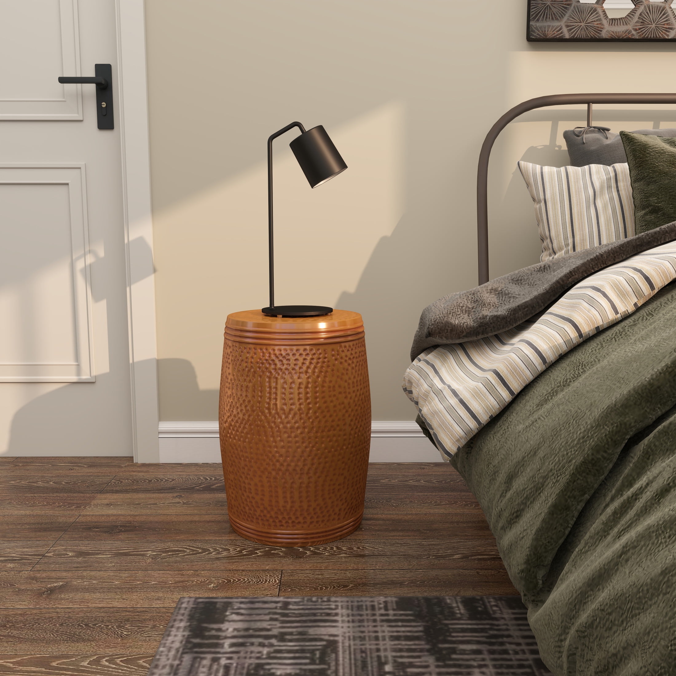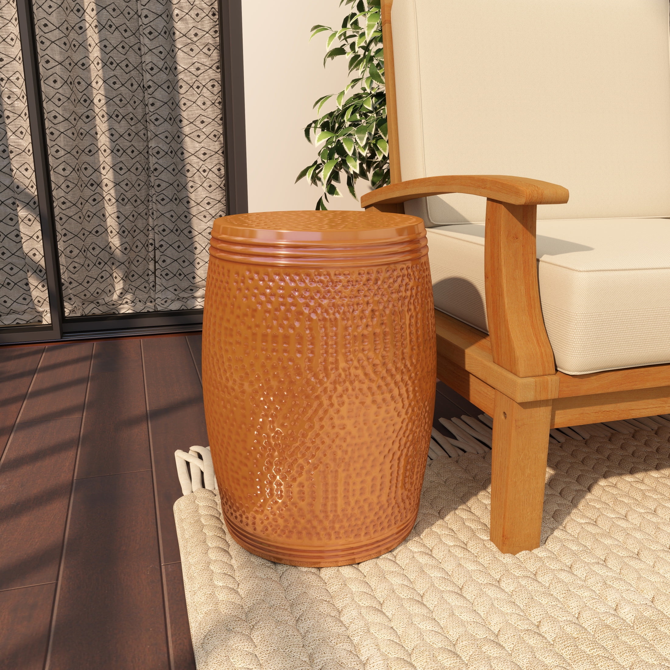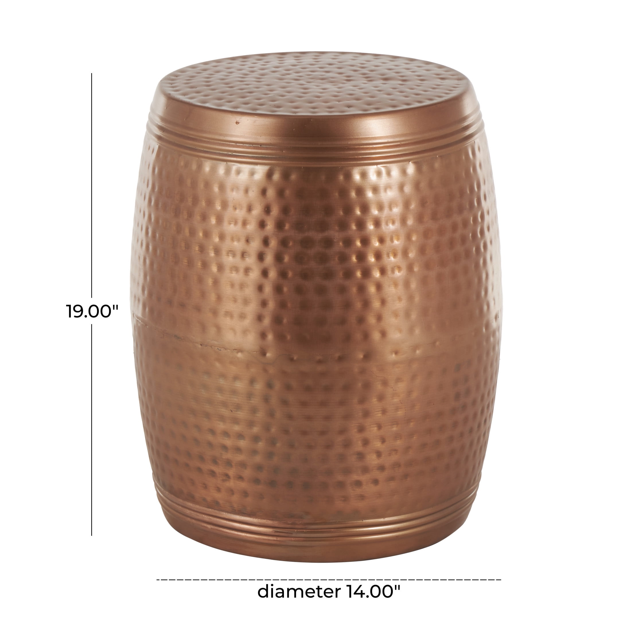 DecMode Copper Metal Drum Handmade Side End Accent Table with Hammered Design, 14″ x 14″ x 19″