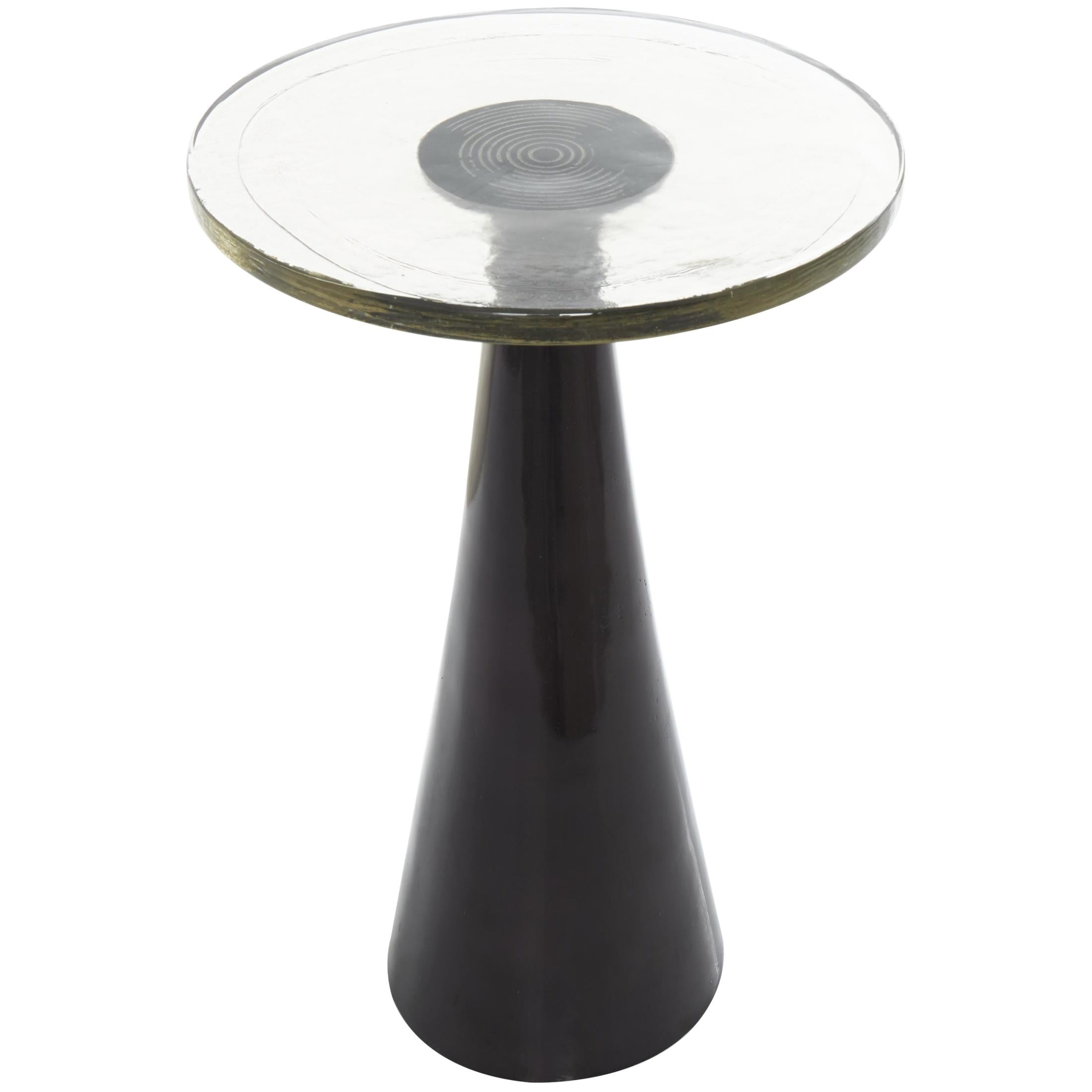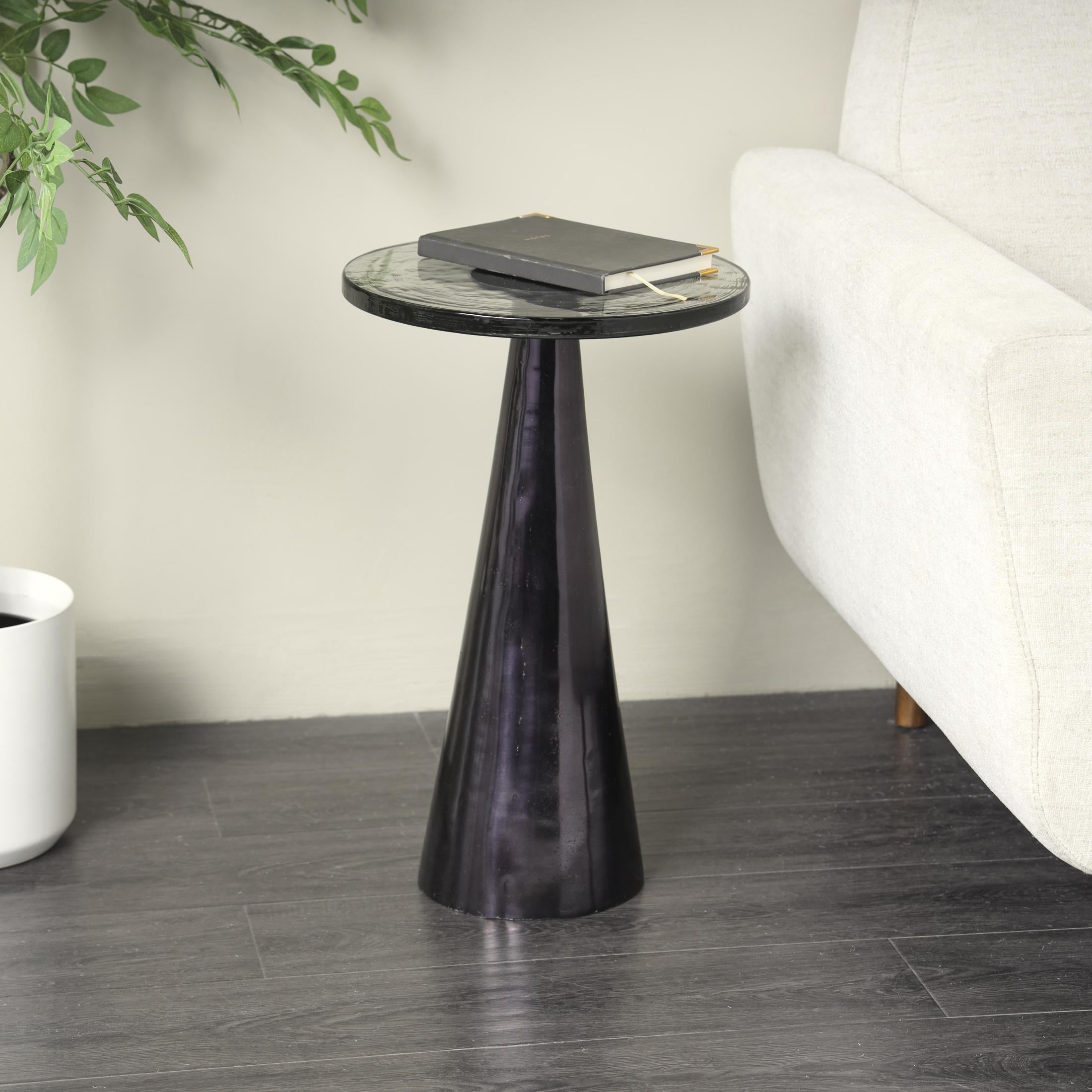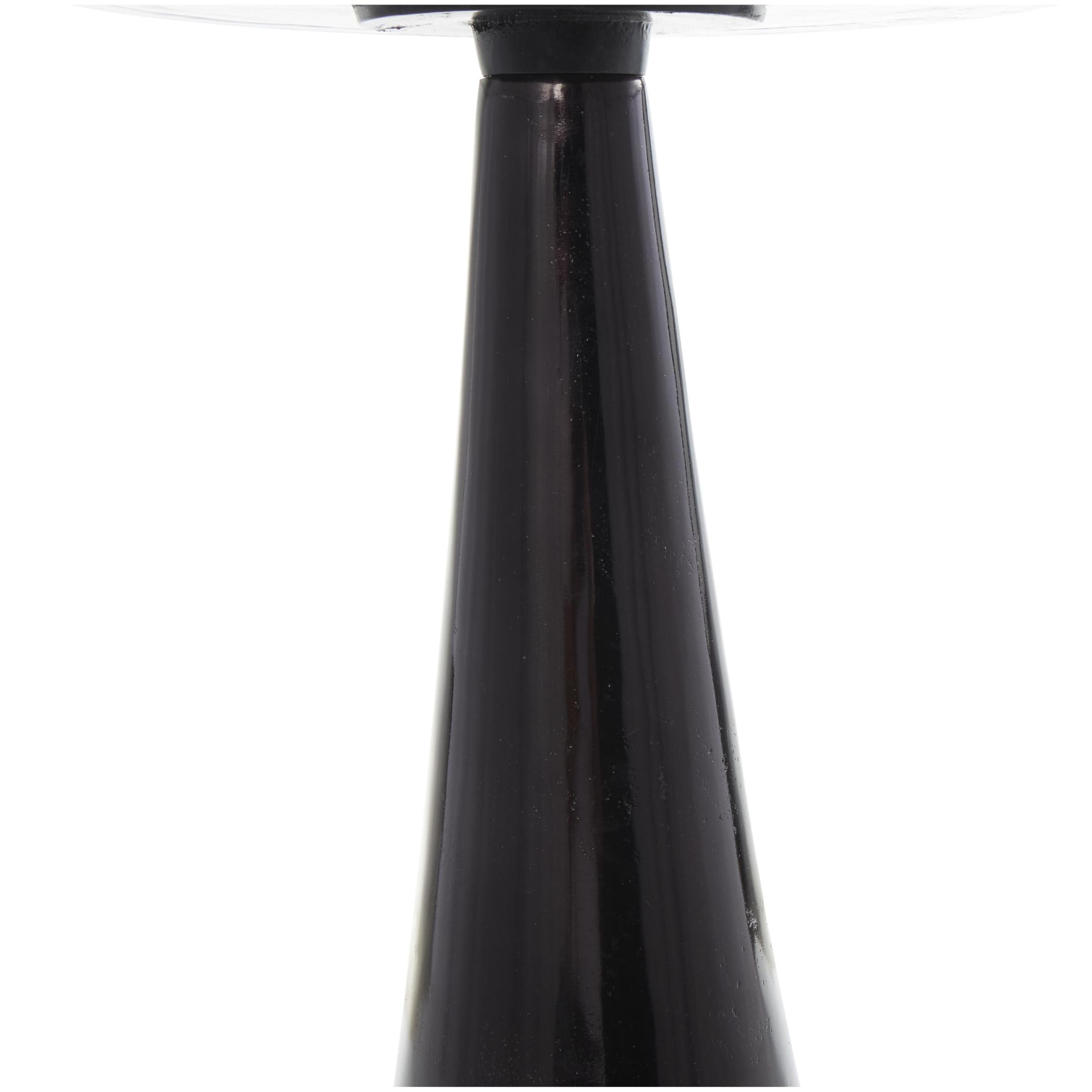 DecMode 14″ x 22″ Black Aluminum Metal Cone Geometric Accent Table with Textured Glass Tabletop, 1-Piece