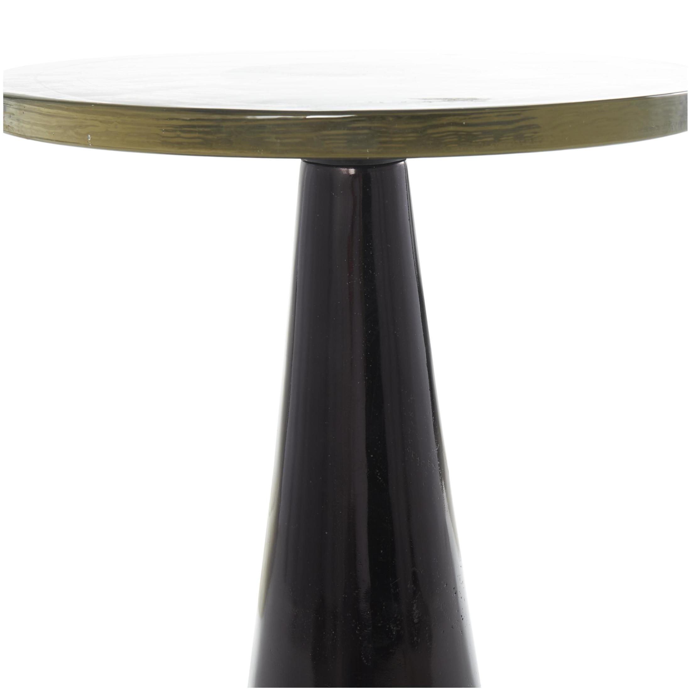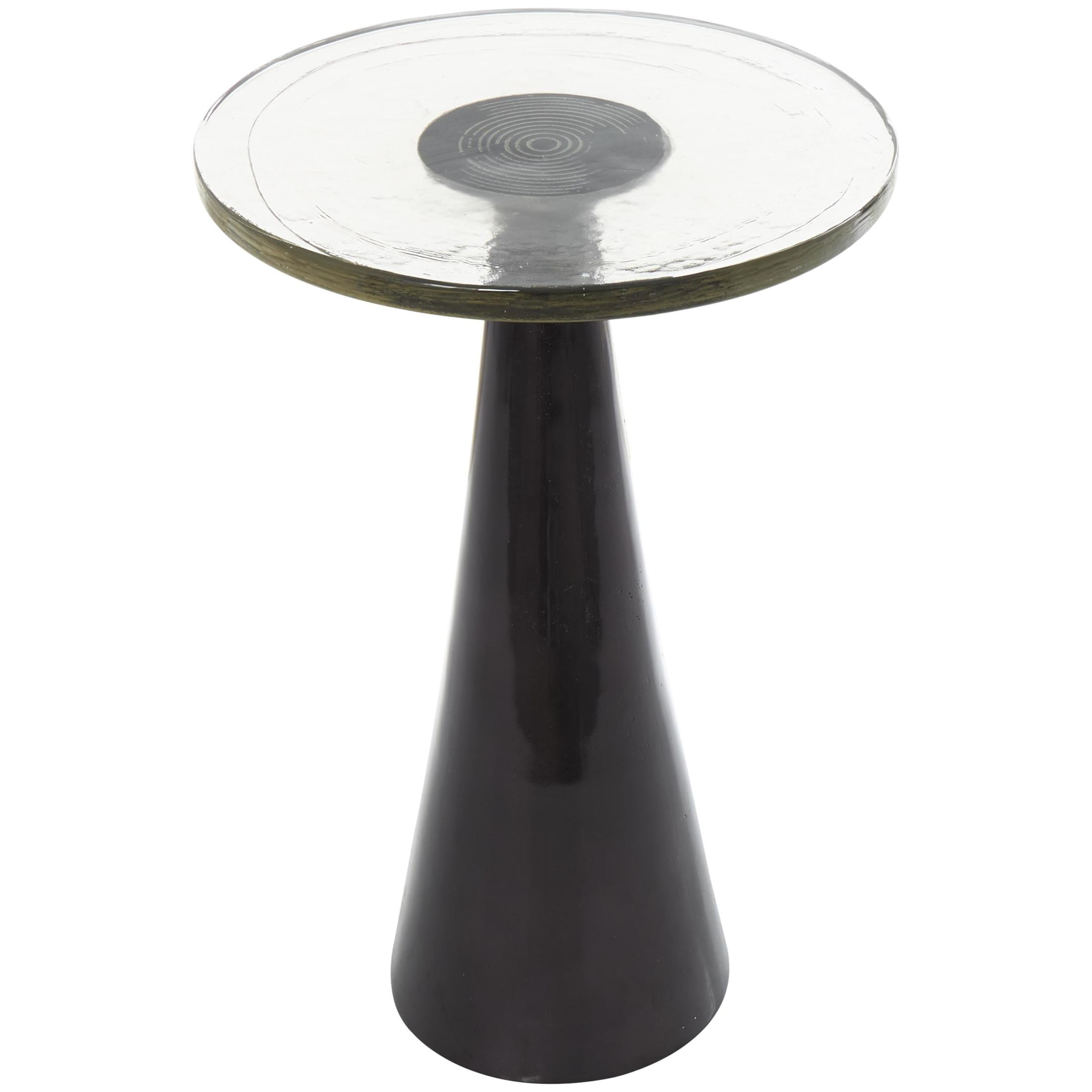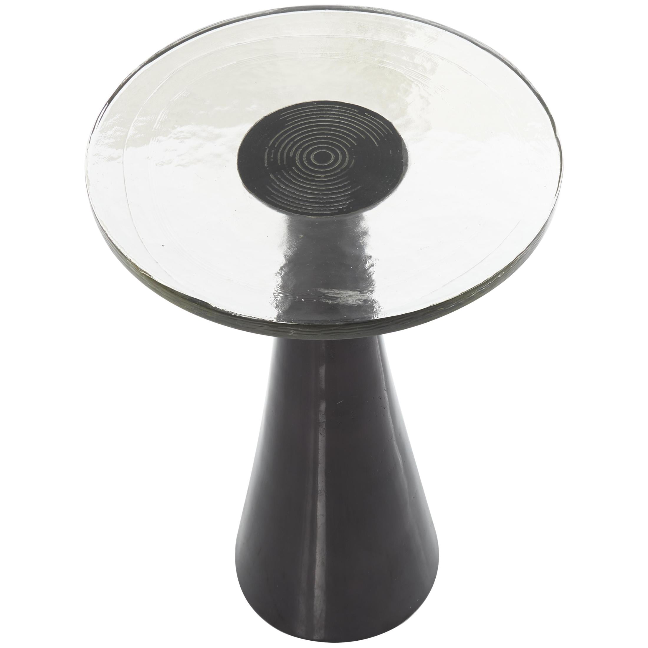 DecMode 14″ x 22″ Black Aluminum Metal Cone Geometric Accent Table with Textured Glass Tabletop, 1-Piece