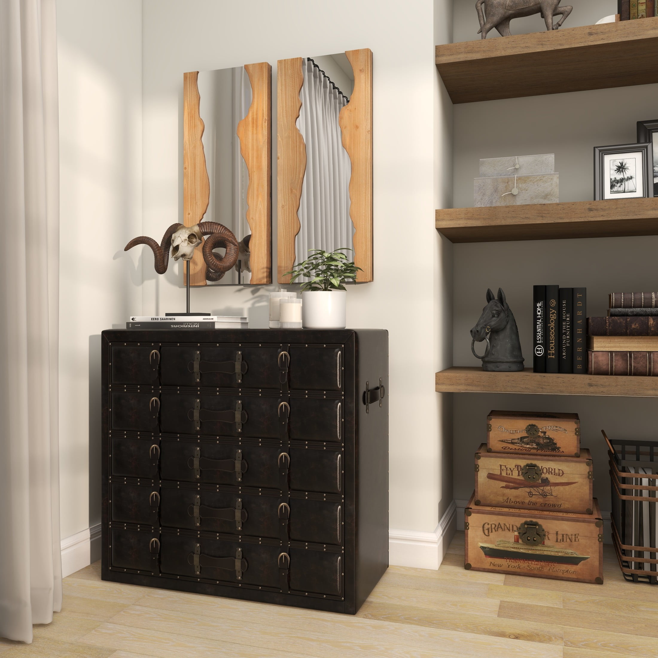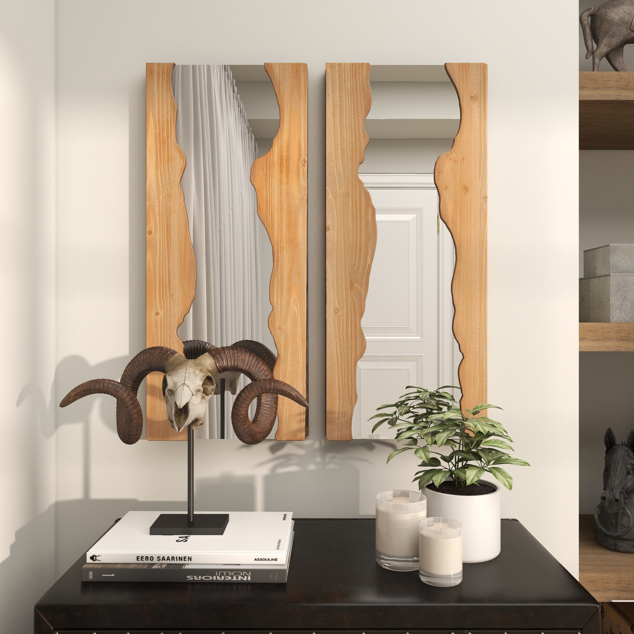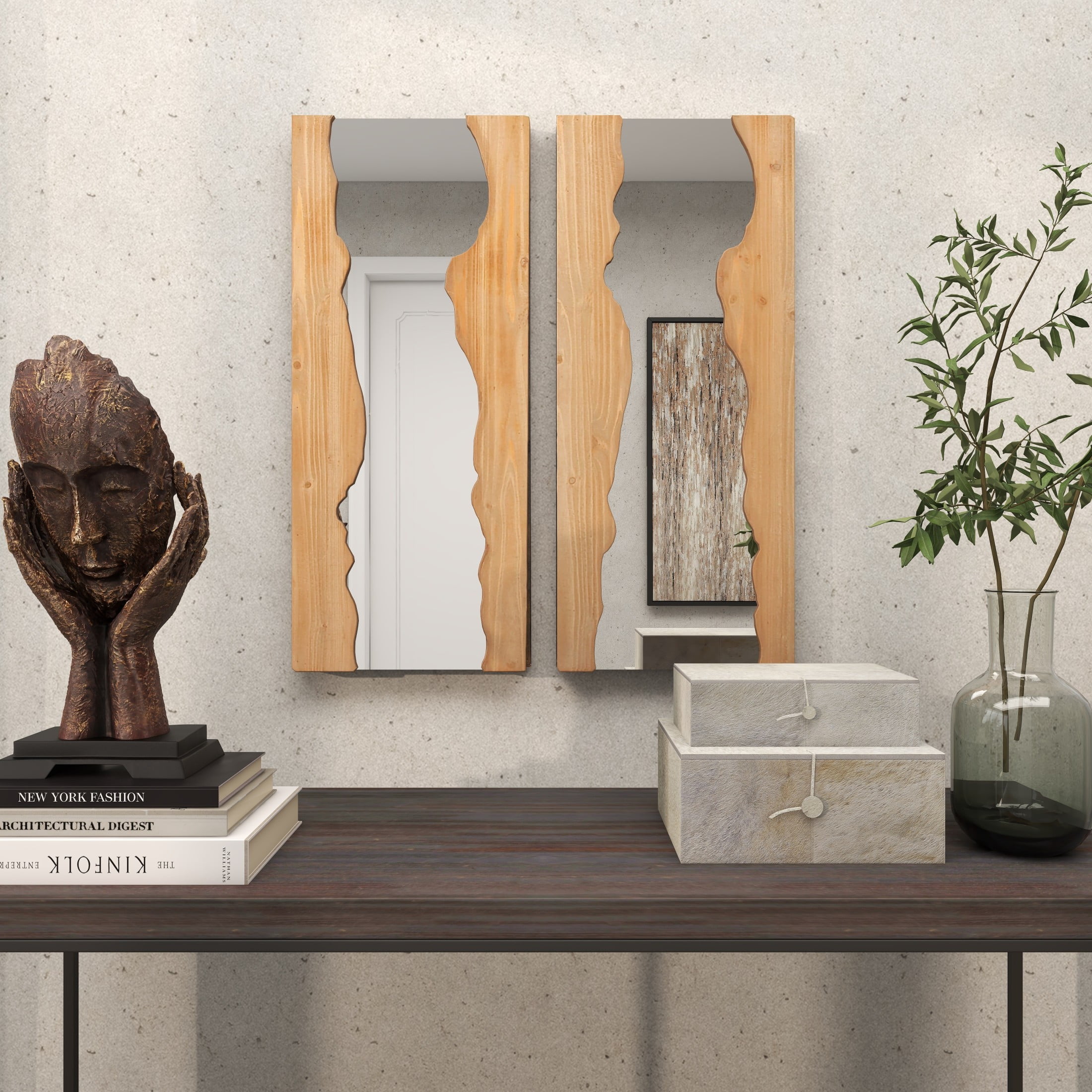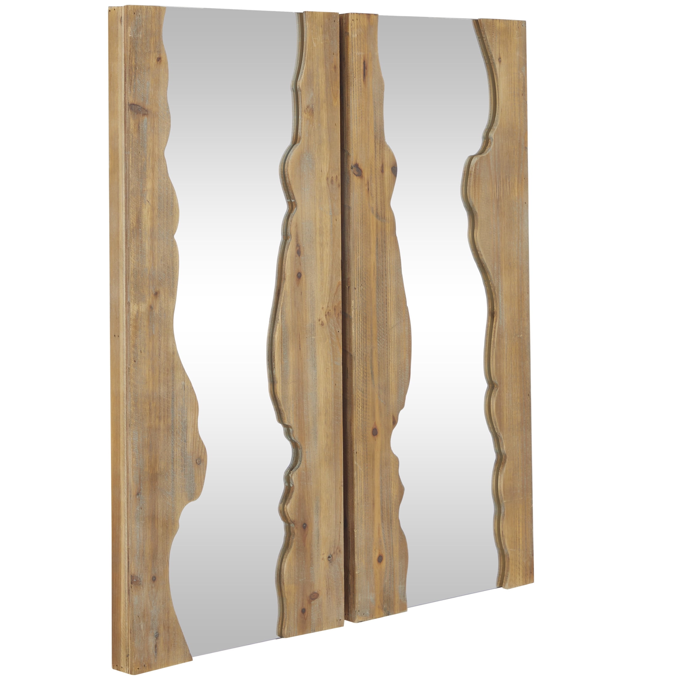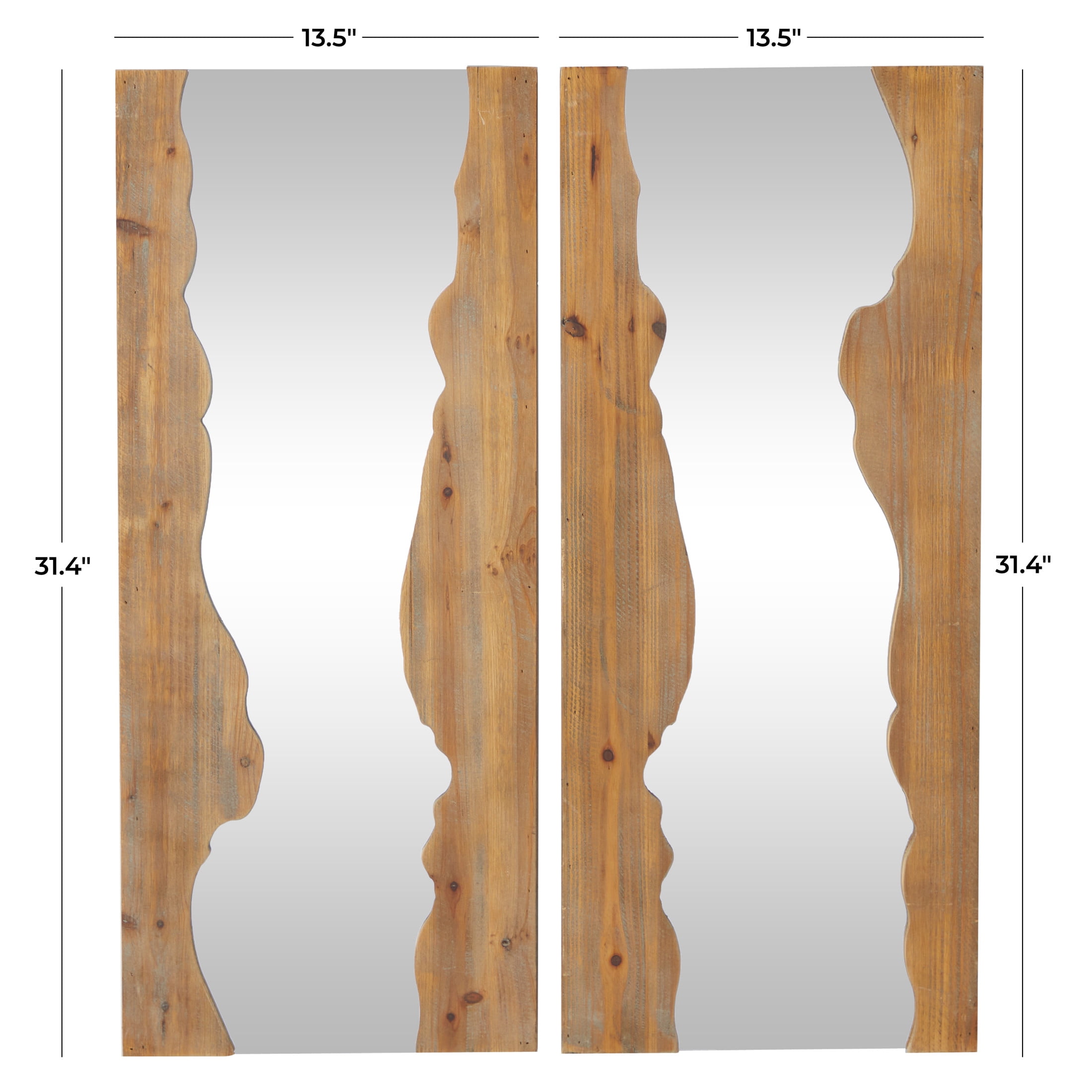 DecMode 14″W, 31″H Brown Handmade Live Edge Abstract Wall Mirror, Set of 2