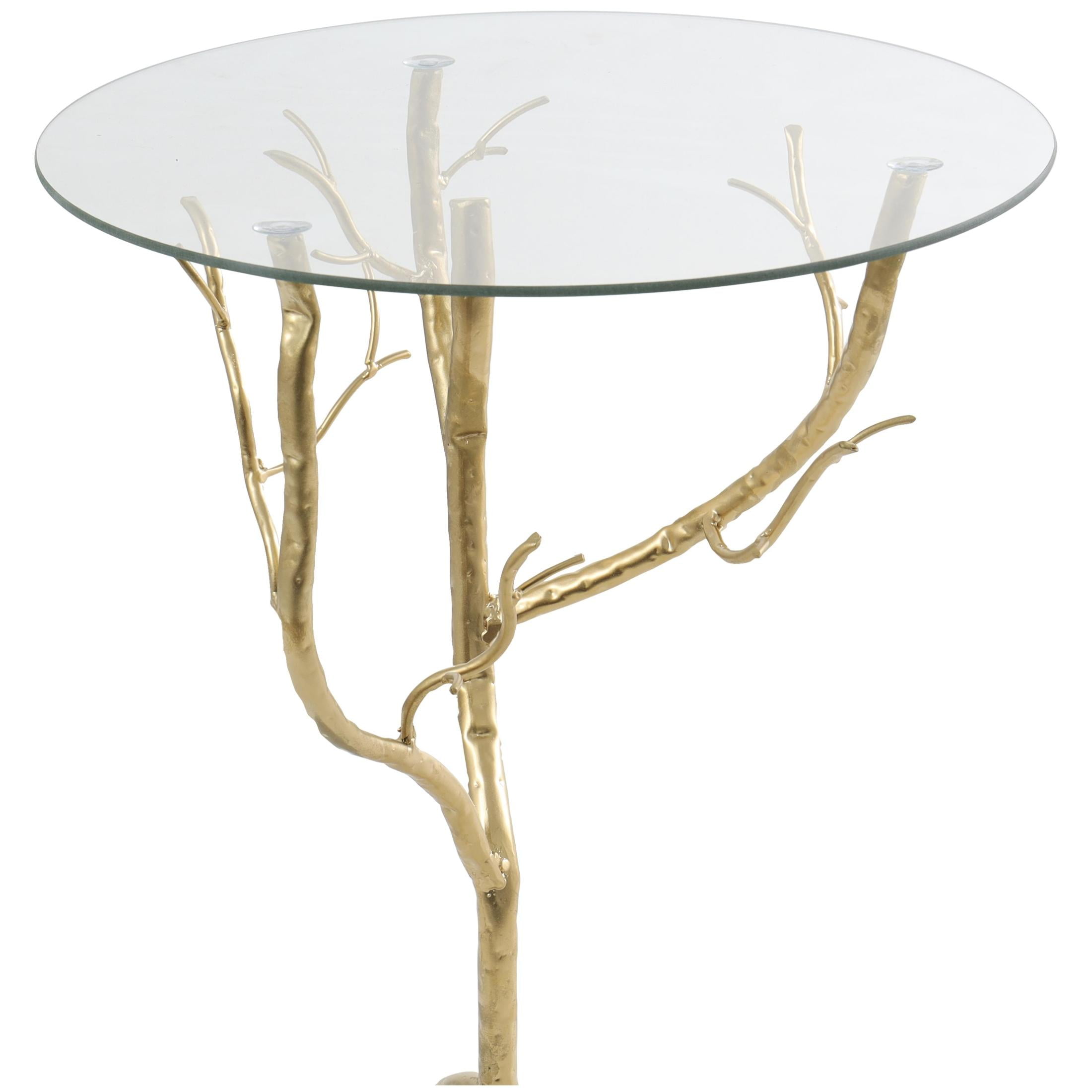 DecMode 16″ x 22″ Gold Metal Branch Tree Accent Table with Tempered Glass Top, 1-Piece