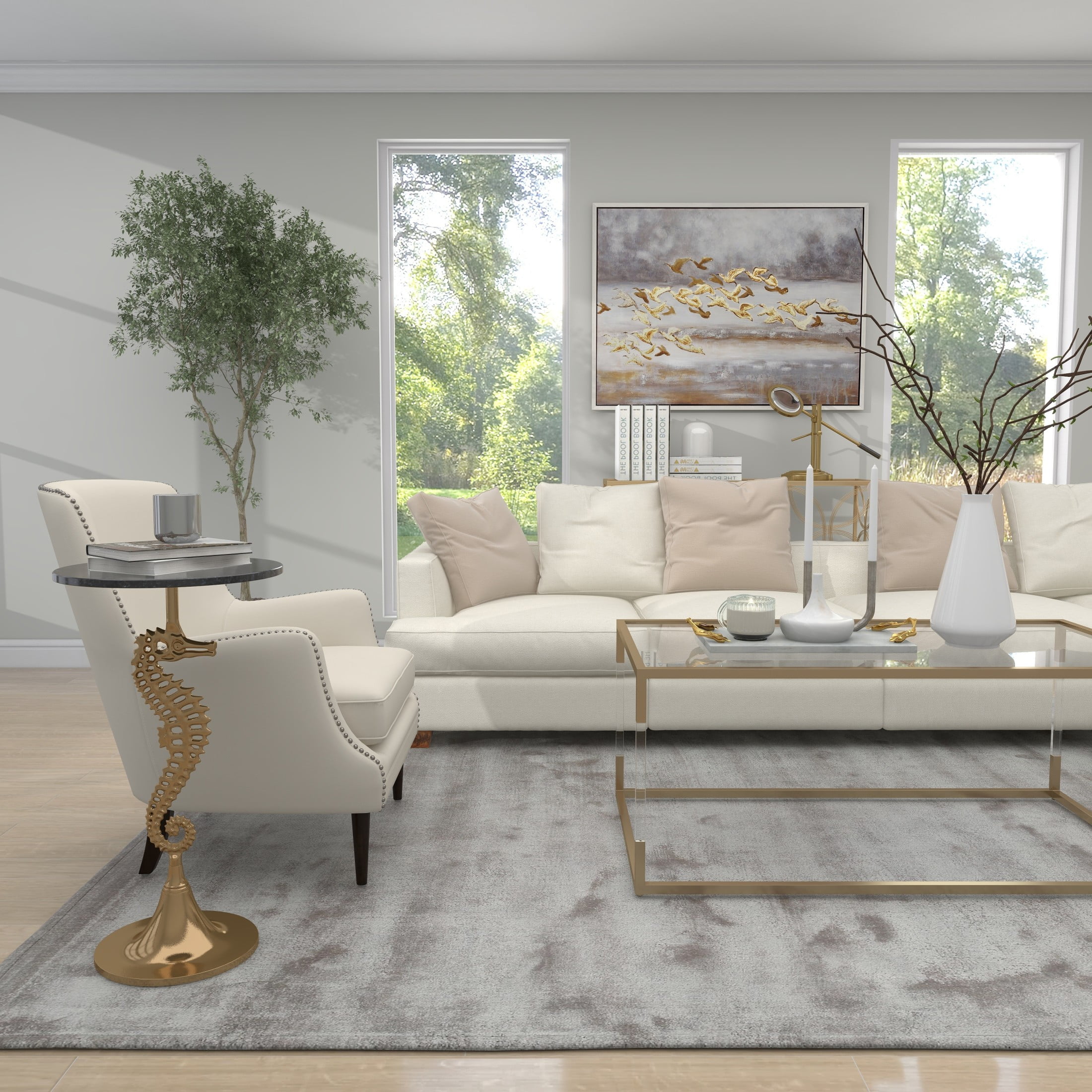 Gold Solid Sea Horse Round 16" x 16" x 28"