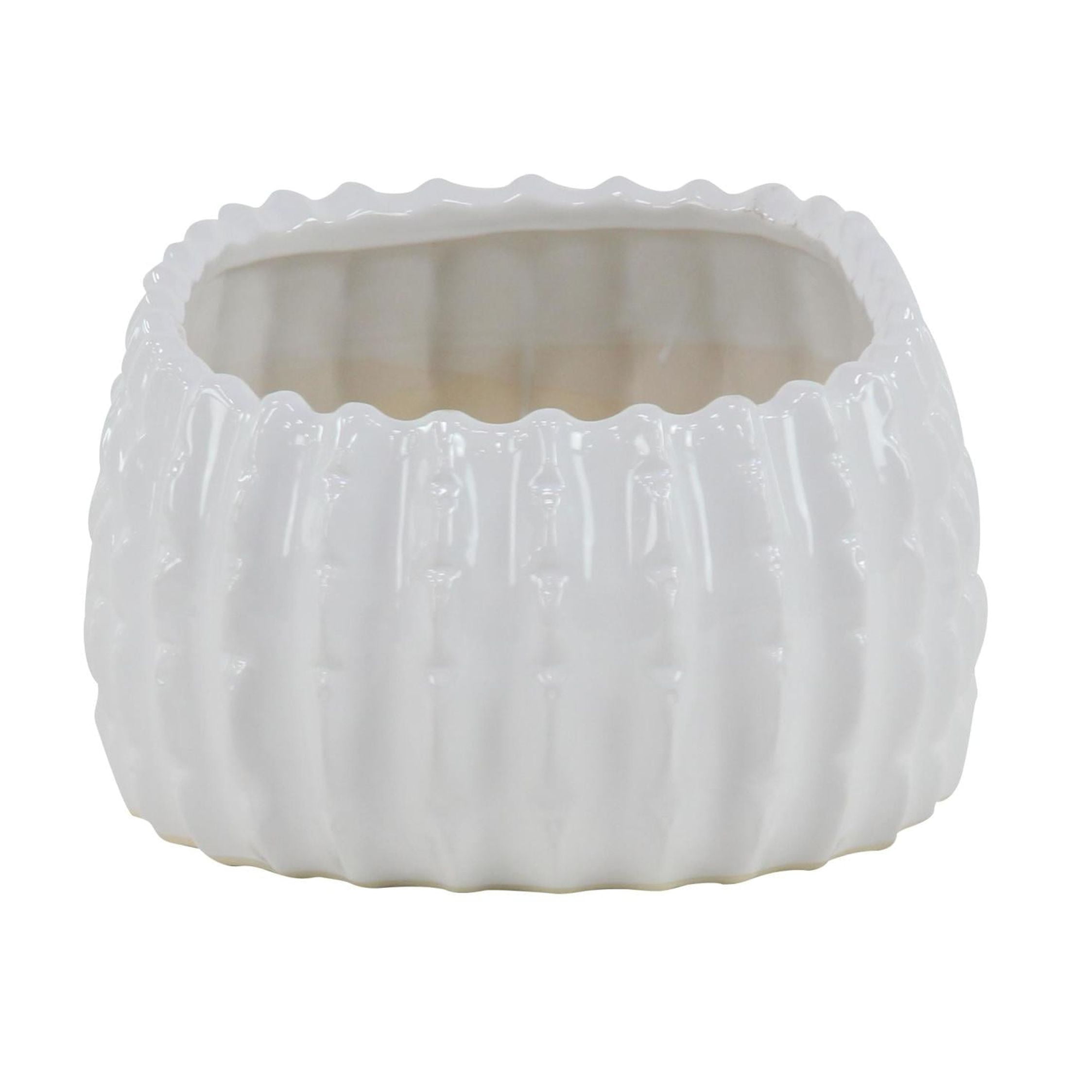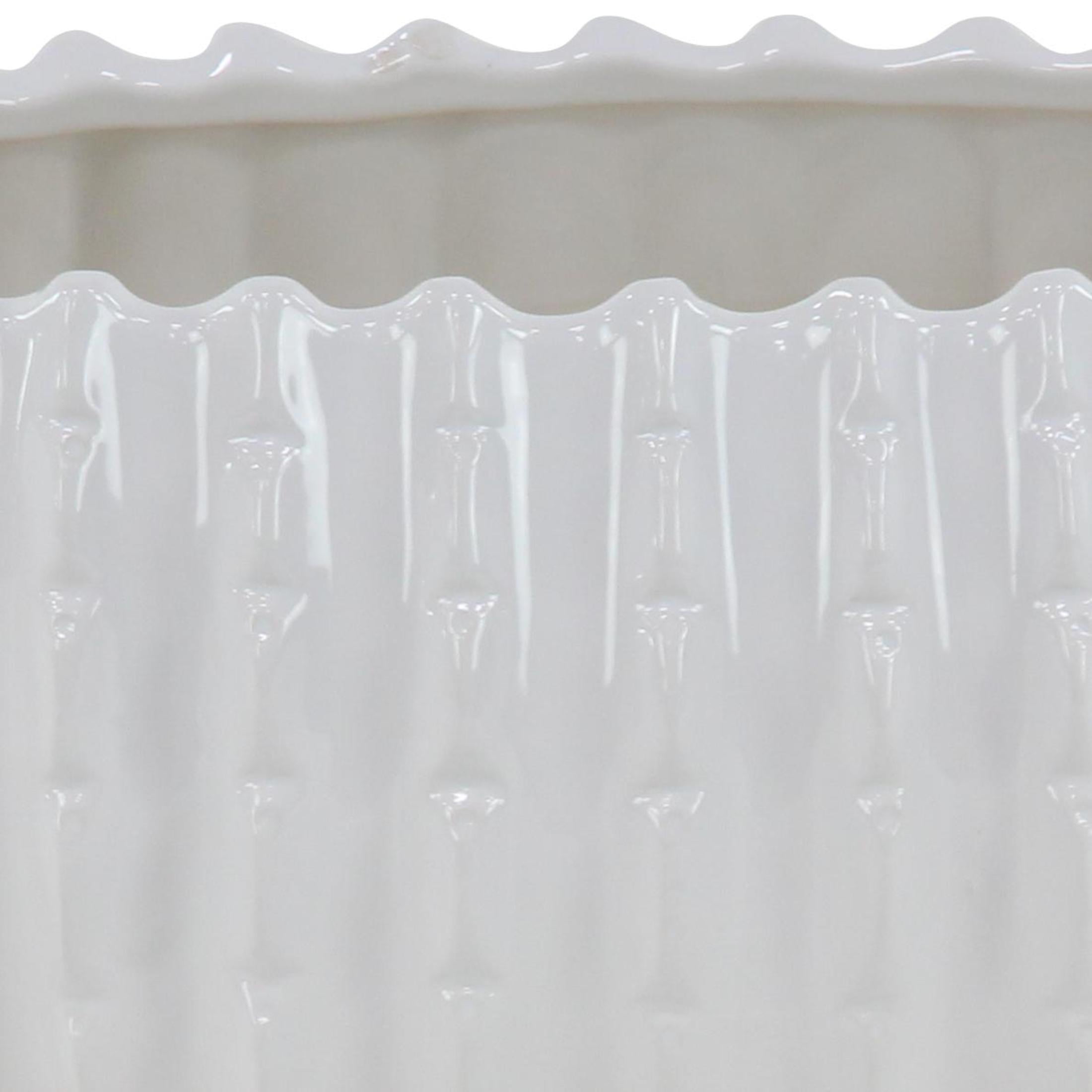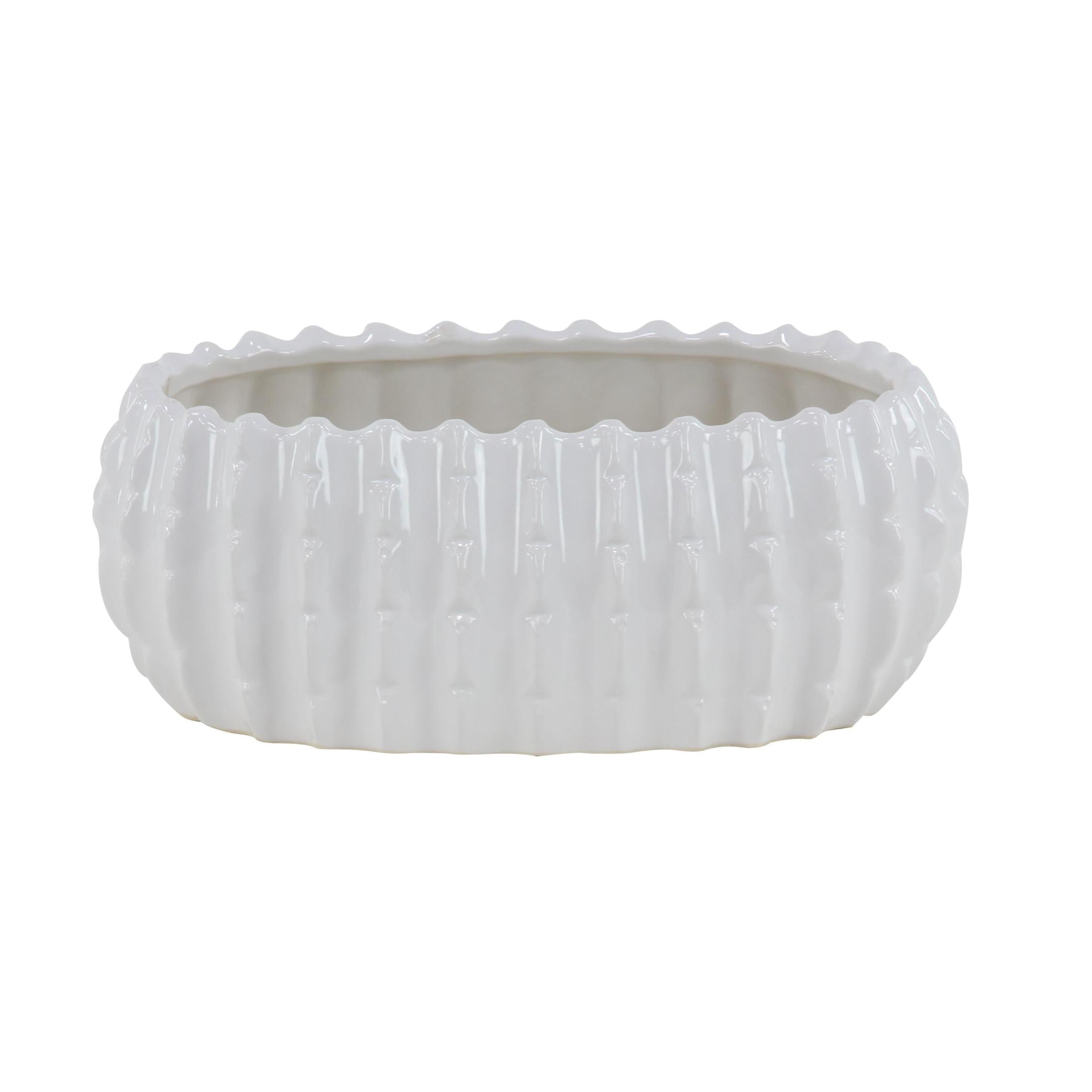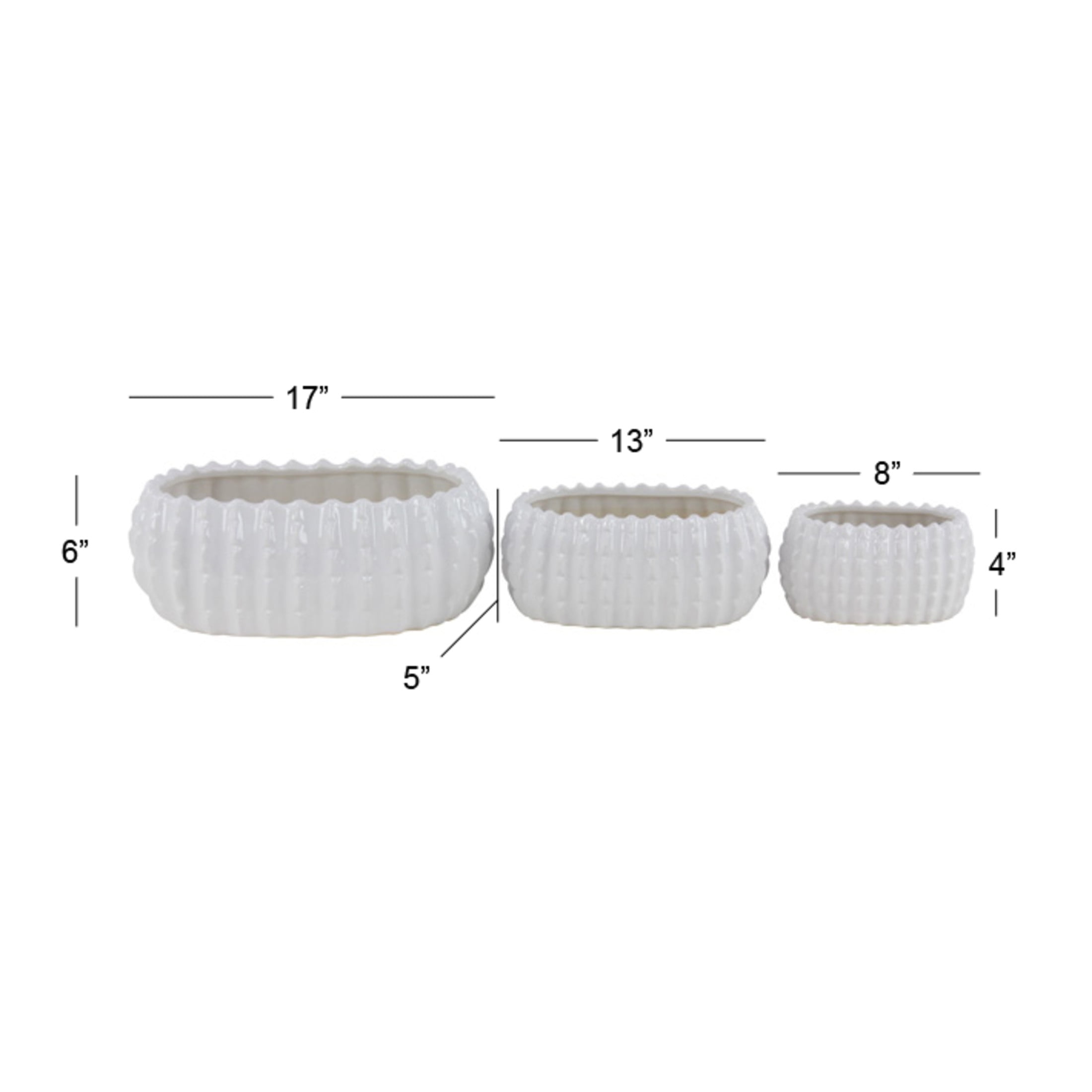 DecMode 17″, 13″, 8″W White Ceramic Planter (3 Count) is a unique addition to your stylish home. White set of 3 small planter pots can be used in various settings such as the living room, patio, or even the office space for an added touch of nature. This item ships in 1 carton. Please note that this item is for decorative purposes only and is not food safe. These modern planters are designed with unique vertical ribbing. Suitable for indoor and outdoor use. This item ships fully assembled in one piece. Maximum weight limit is 5 lbs. No drainage holes. This white colored stoneware plant pot comes as a set of 3. Traditional style.