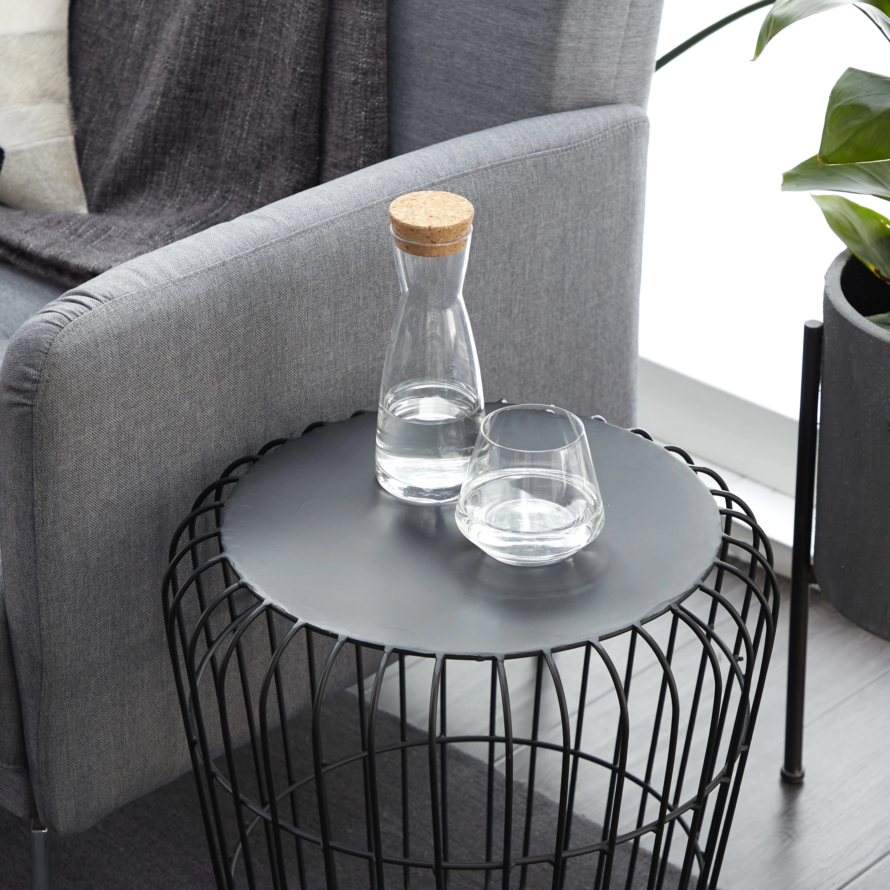 DecMode 18 in x 17 in Grey Metal Industrial Outdoor Accent Table