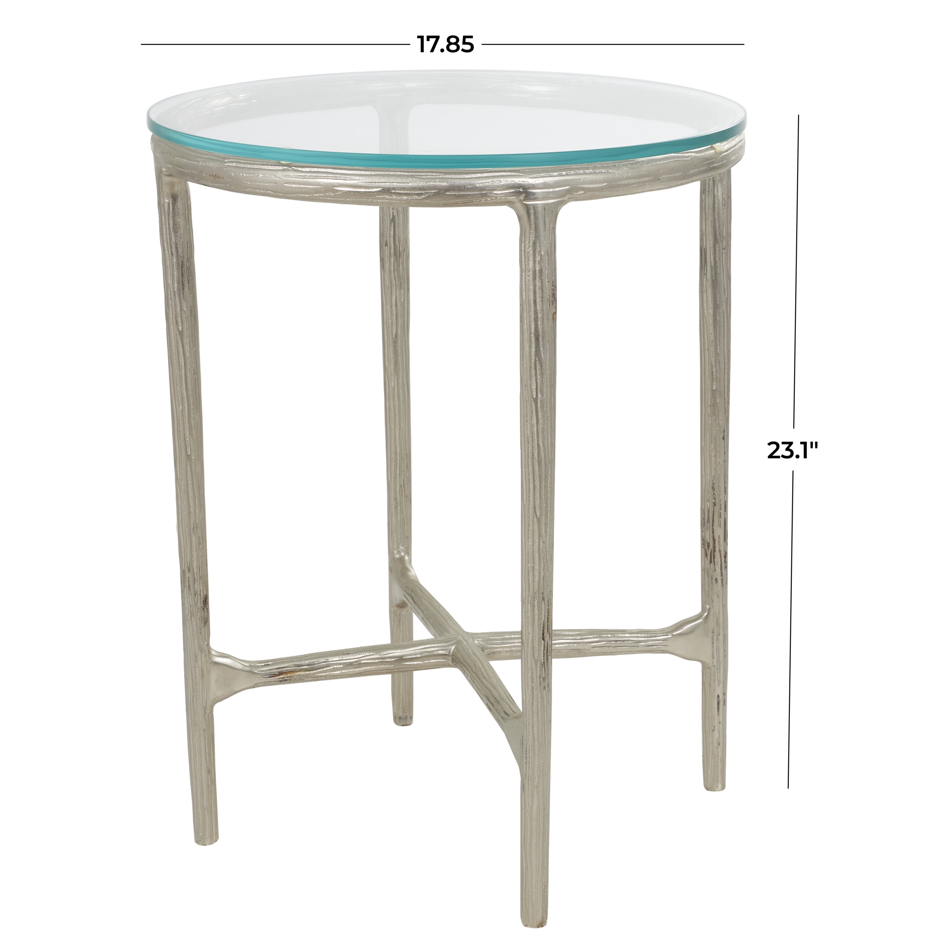 DecMode 18″ x 23″ Silver Aluminum Textured Accent Table with Glass Tabletop, 1-Piece
