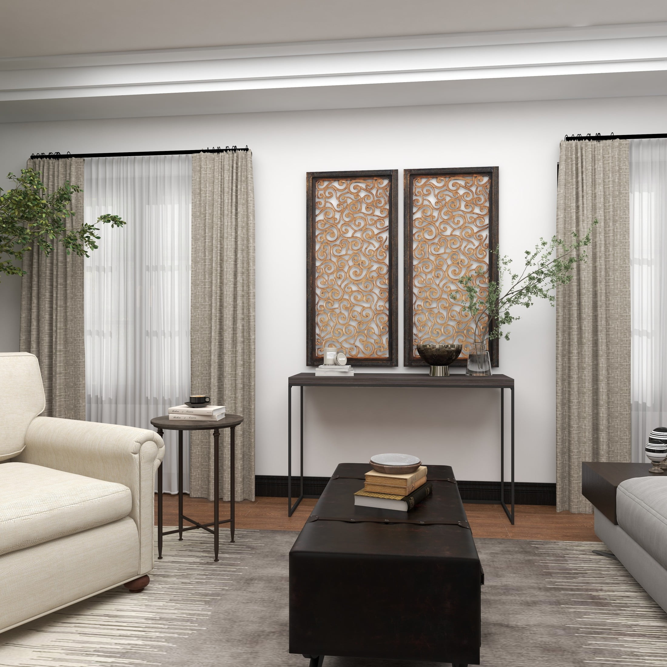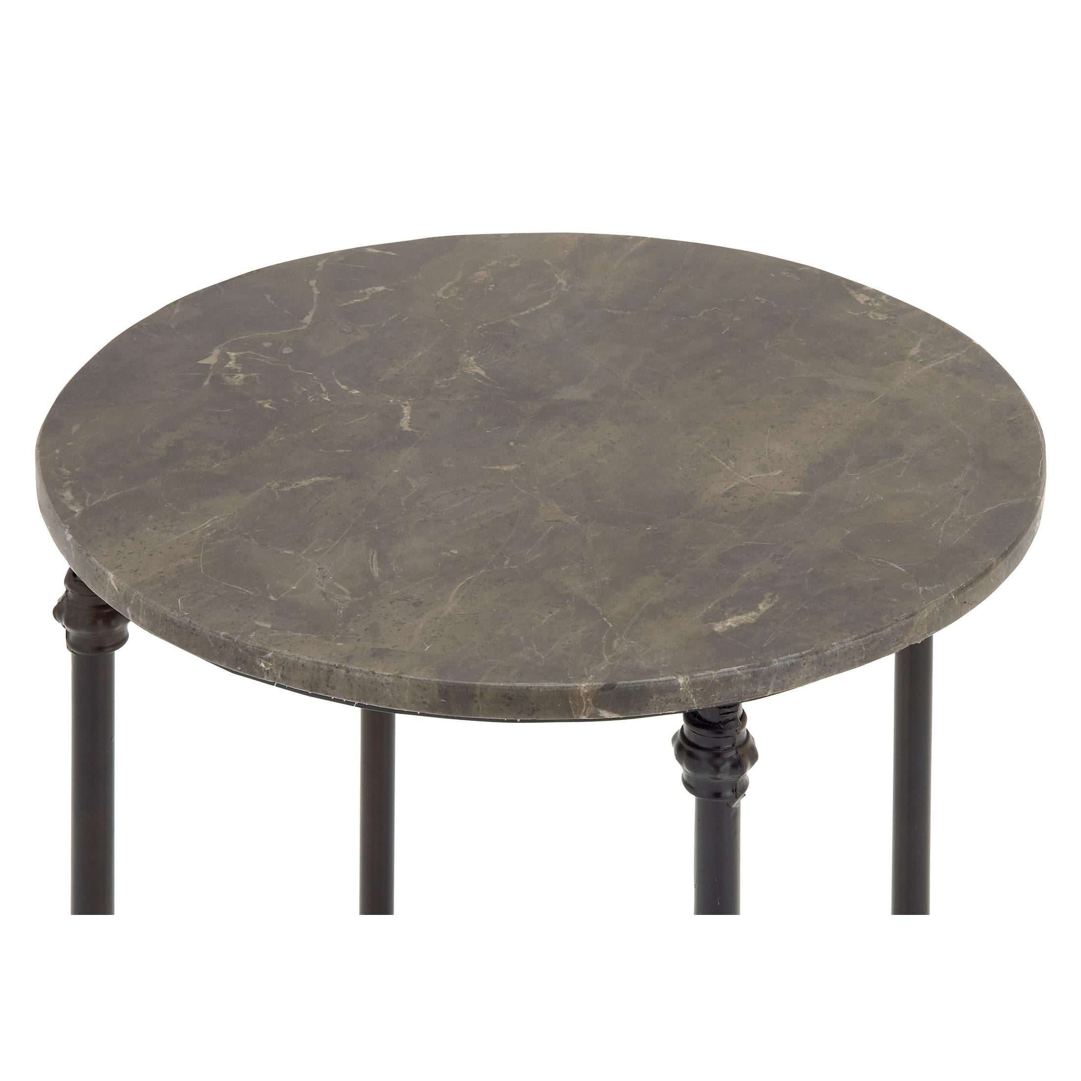 Designed with timeless sophistication, rich old-world textures and warm hues come together for a refined classic taste of luxury This brown side end accent table is crafted from highly durable metal, topped with an exquisite marble surface Round table boasts a brown marble top, contrasted beautifully by bronze legs in a polished finish Iron accent table features a round marble top on four slender legs structure with an X shaped base support for added stability The brown marble accent table measures 18L x 18W x 26H inches, and weighs 18.70 lbs Polished brown living room table stands out with its distinctive round surface design Wipe clean with a dry cloth Each traditional large table is meticulously crafted, featuring an attached and welded iron frame and precisely cut marble top Traditional style DecMode 18″ x 26″ Brown Marble Accent Table with Bronze Metal Legs, 1-Piece makes a perfect addition to any home