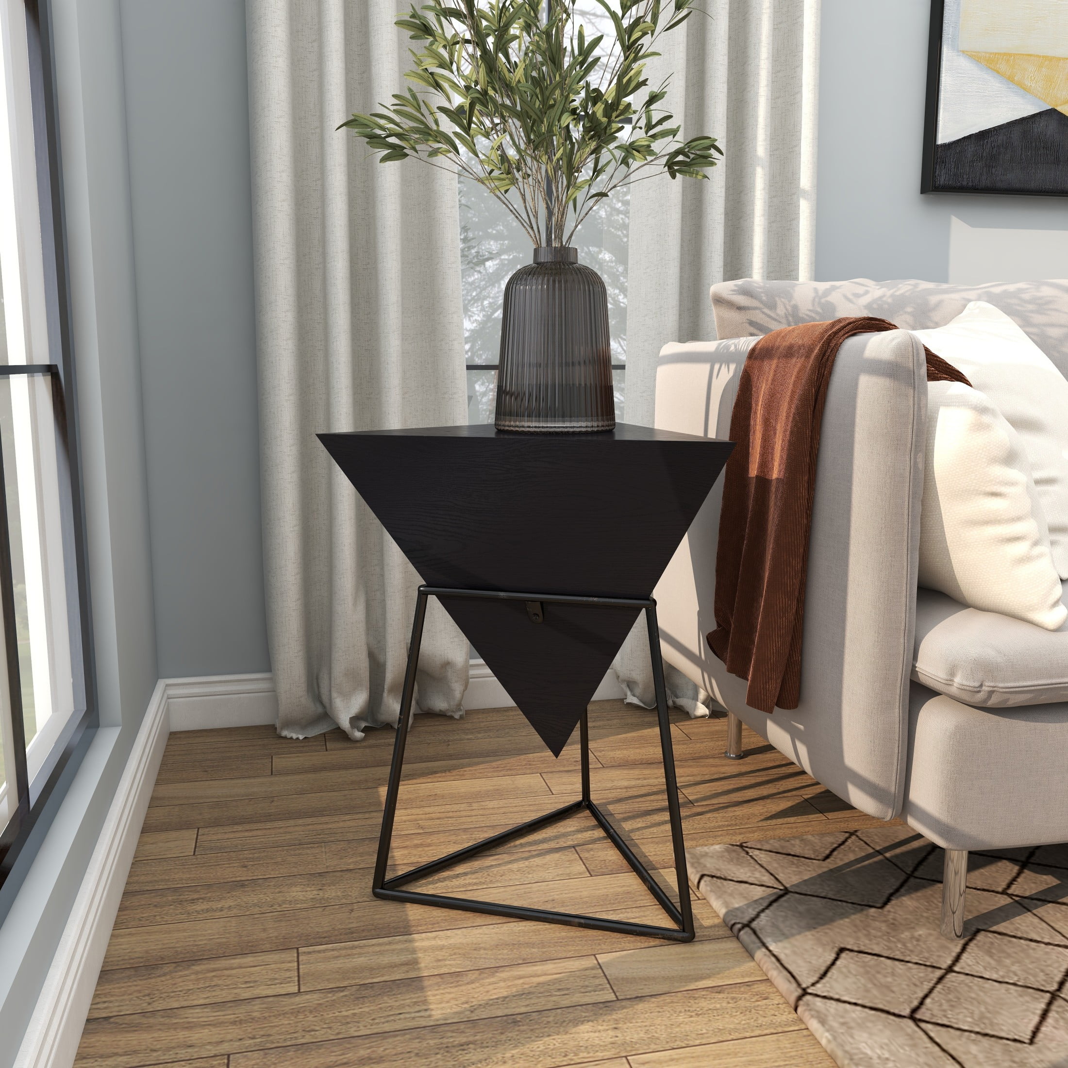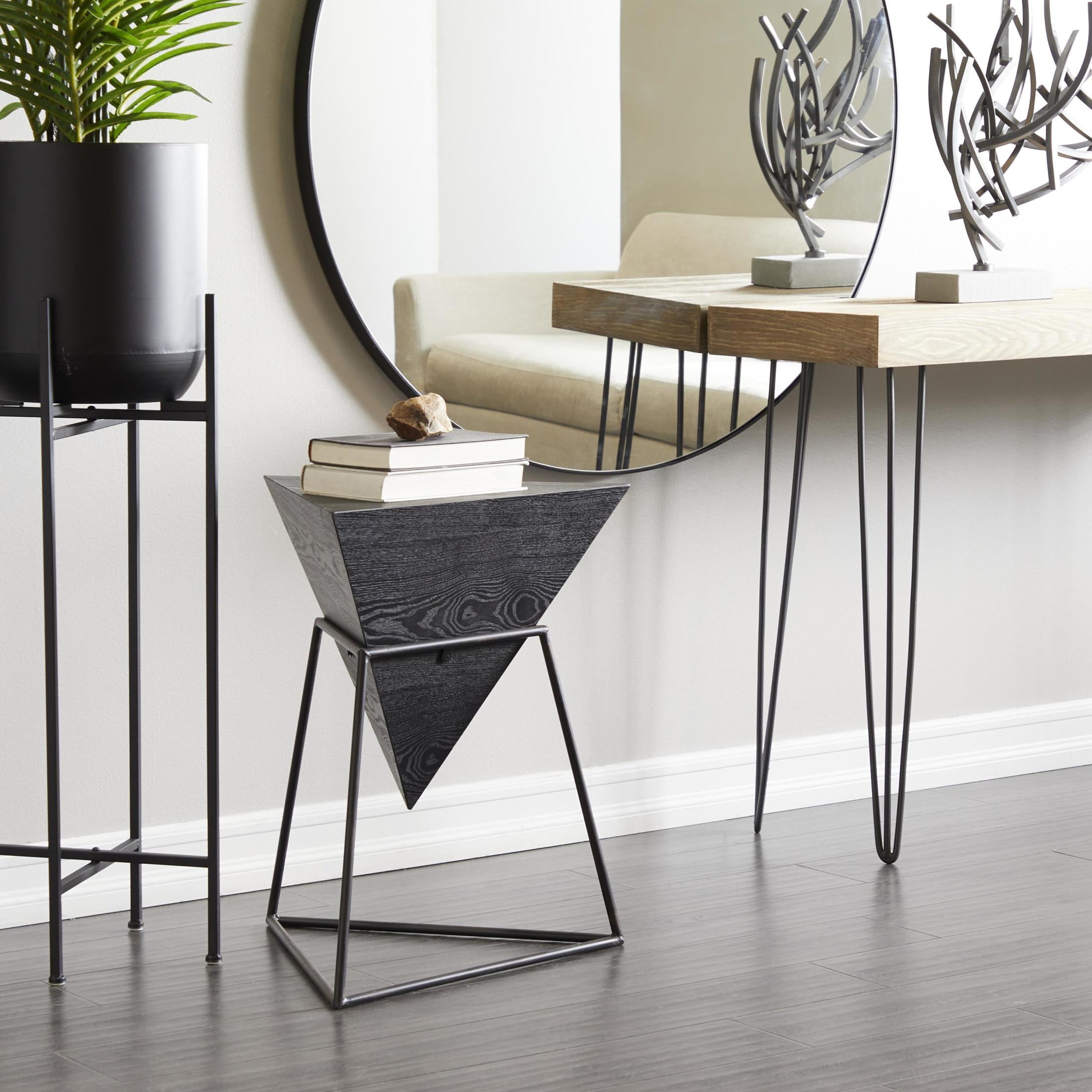 DecMode 19″ x 24″ Black Wood Inverted Pyramid Geometric Accent Table with Black Metal Stand, 1-Piece