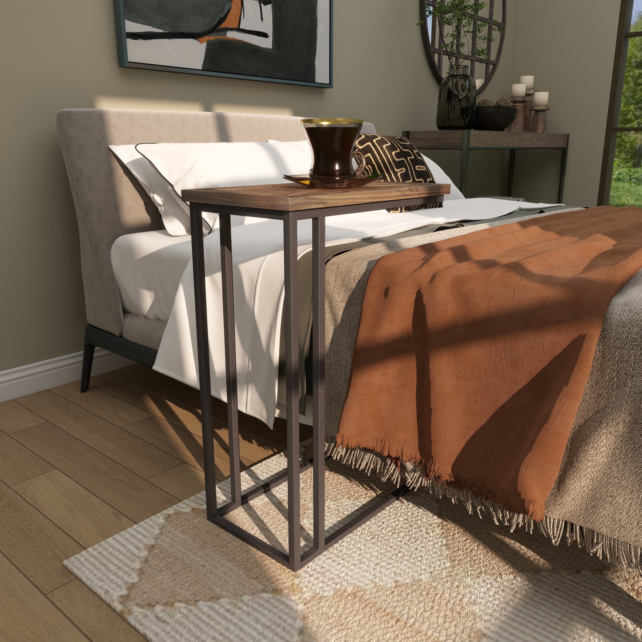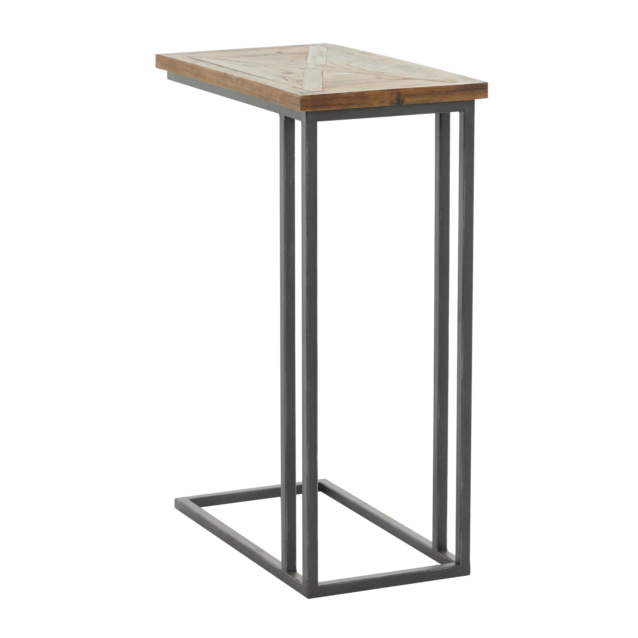 DecMode 19″ x 26″ Black Metal C-Shaped Accent Table with Brown Wood Top, 1-Piece