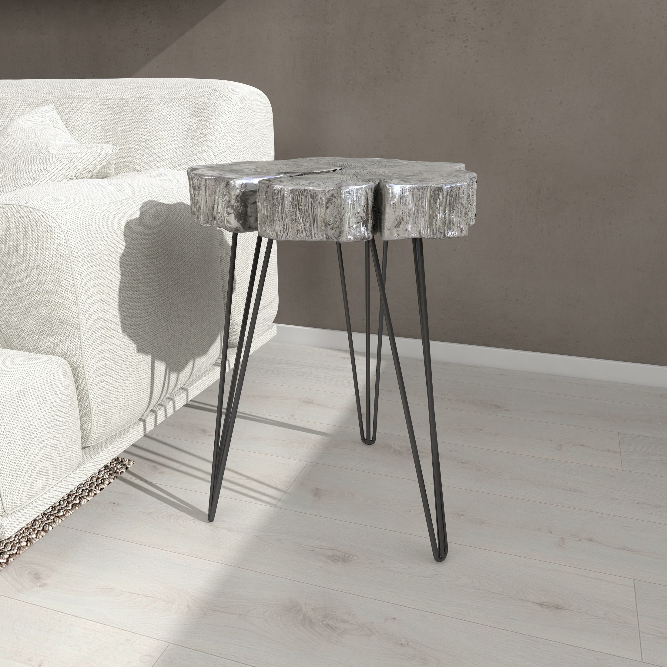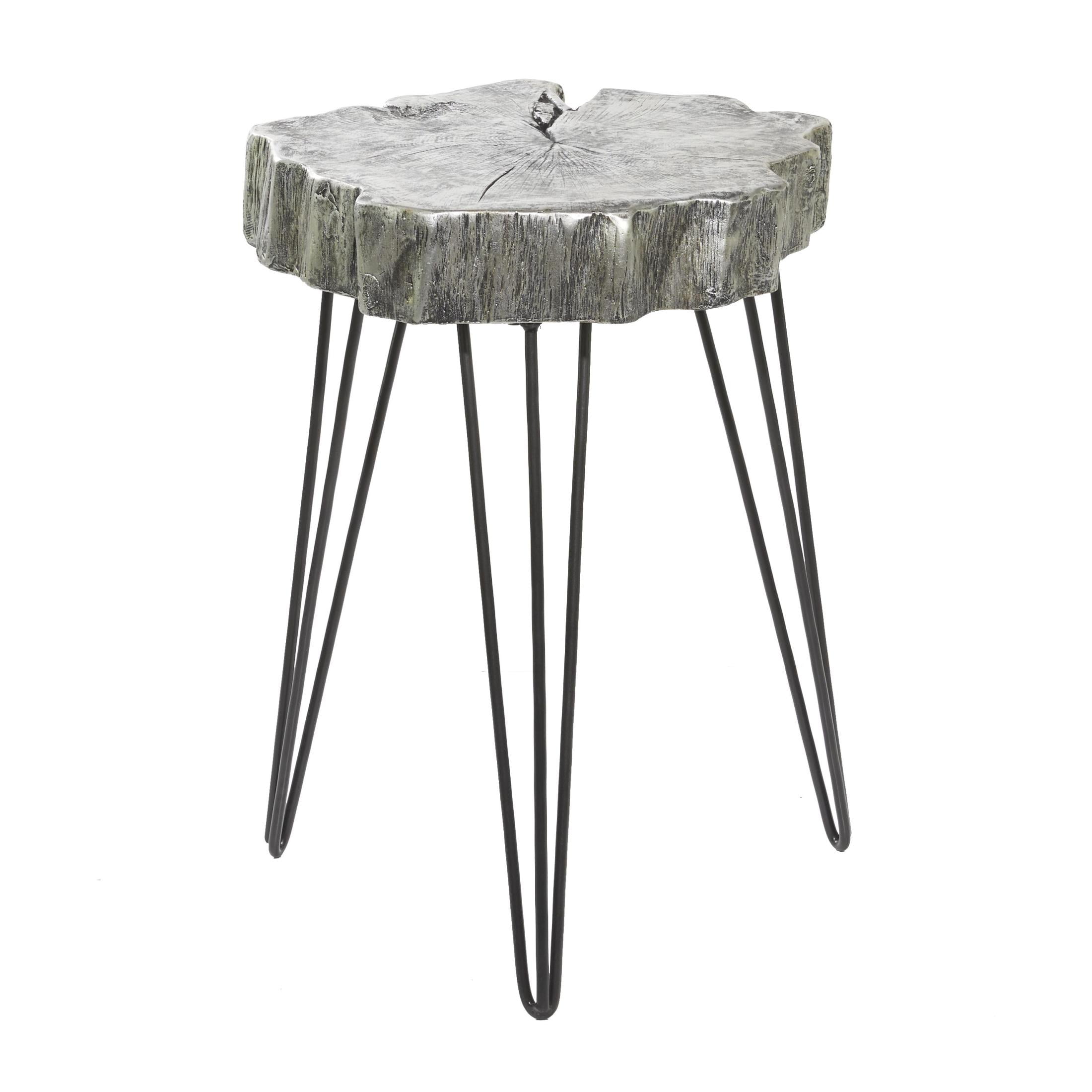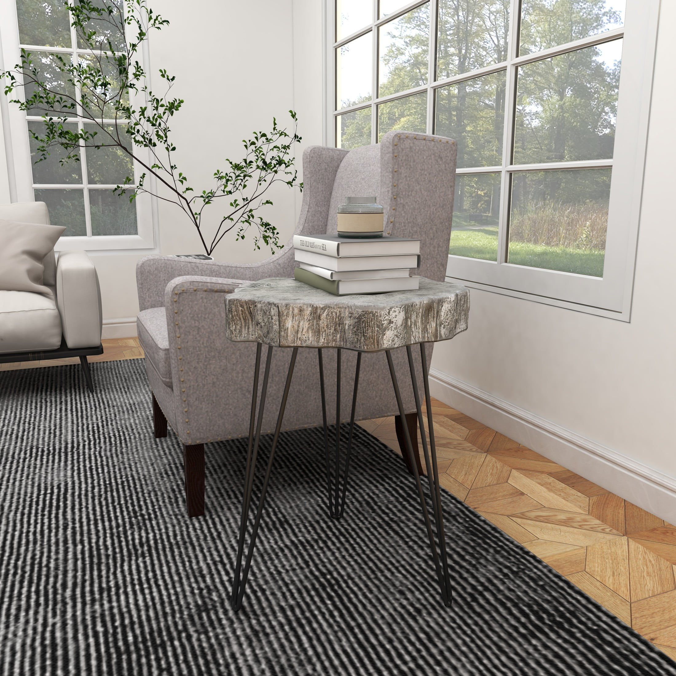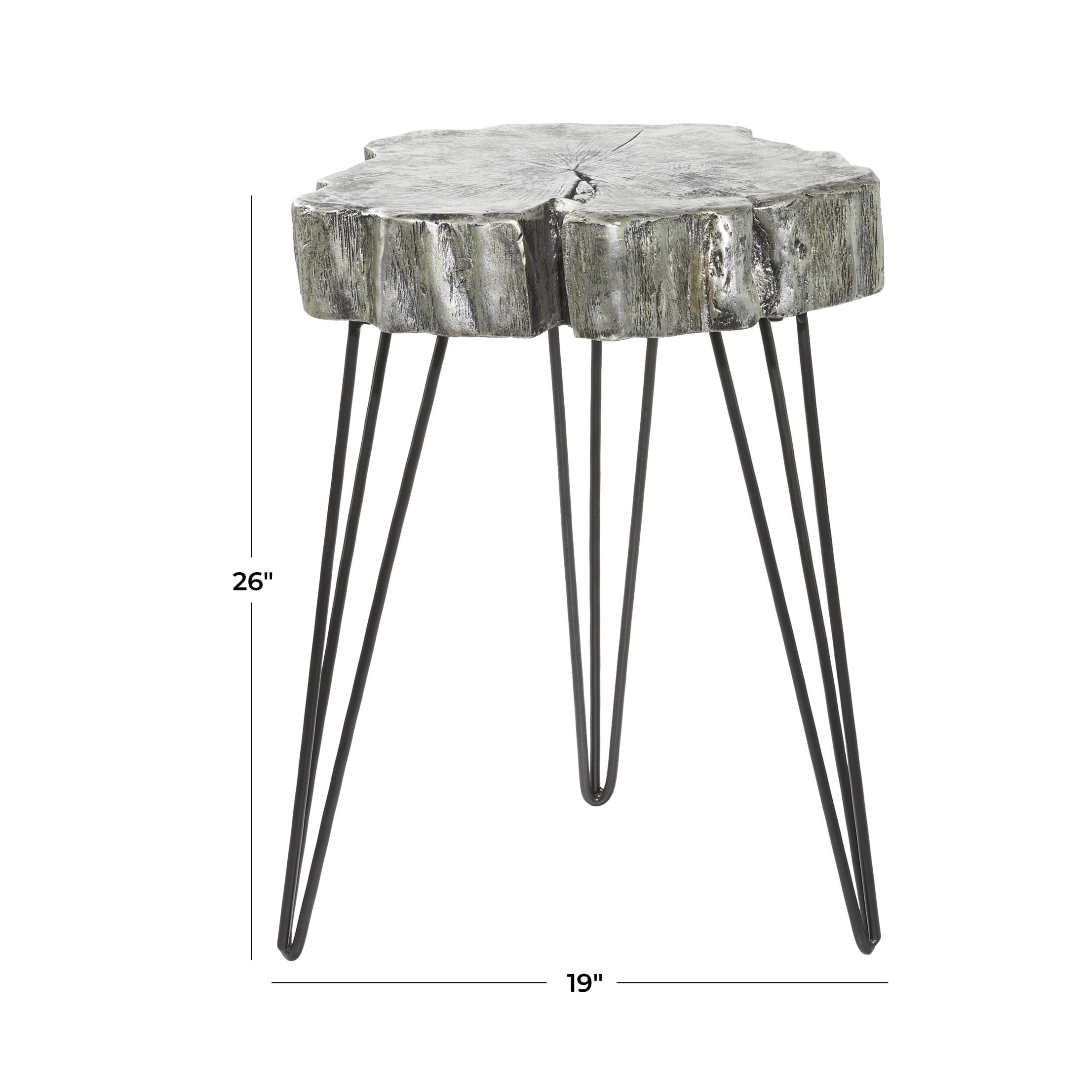 DecMode 19″ x 26″ Gray Magnesium Oxide Tree Trunk Accent Table with Black Metal Hairpin Legs, 1-Piece