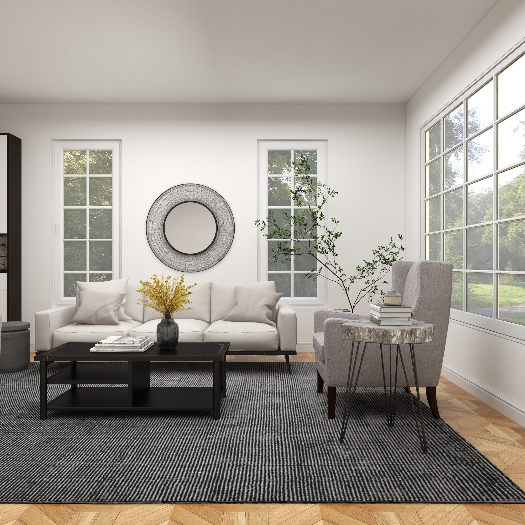Inspired by sleek elegance and clean lines, a minimalistic design offers effortless luxury with monochromatic tones and bold, angular structures This silver side end accent table is crafted from high-quality magnesium oxide and iron, ensuring both durability and stability The round table boasts a modern aesthetic with its satin silver finish, complemented by a wood-inspired top with a subtle shade of gray and a contrasting black tripod base The unique design of the magnesium oxide accent table features a sliced tree trunk-inspired tabletop resting on hairpin-style metal tripod legs The gray magnesium oxide accent table measures 19L x 19W x 26H inches, and weighs 24.64 lbs The satin silver living room table stands out due to its organic-shaped wood-inspired tabletop and distinctively shaped metal legs that mirror the form of hairpins Wipe clean with a dry cloth The modern small table showcases meticulous craftsmanship, where the magnesium oxide top is skillfully mounted on tripod hairpin legs for an elegant yet edgy appeal Modern style DecMode 19″ x 26″ Gray Magnesium Oxide Tree Trunk Accent Table with Black Metal Hairpin Legs, 1-Piece makes a perfect addition to any home