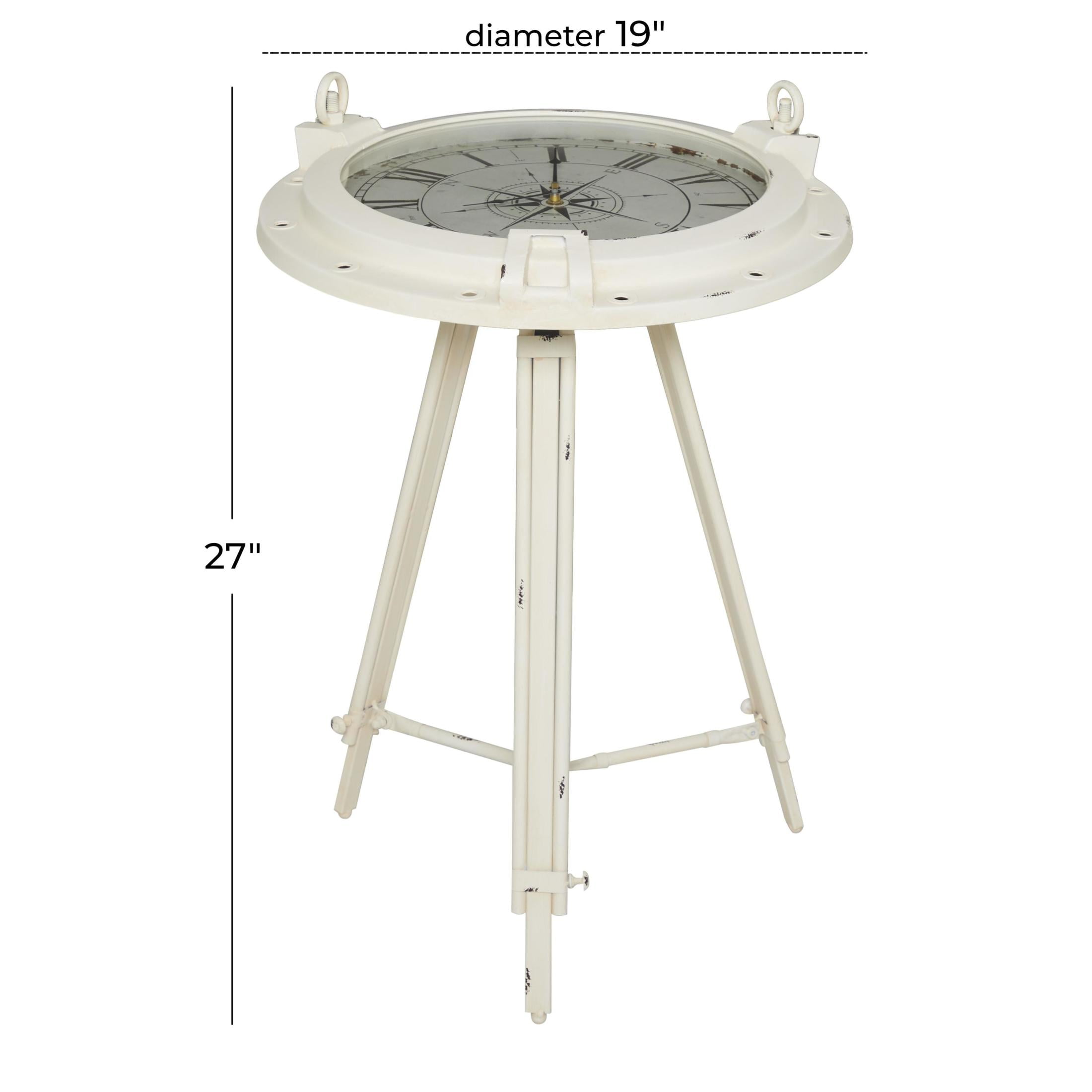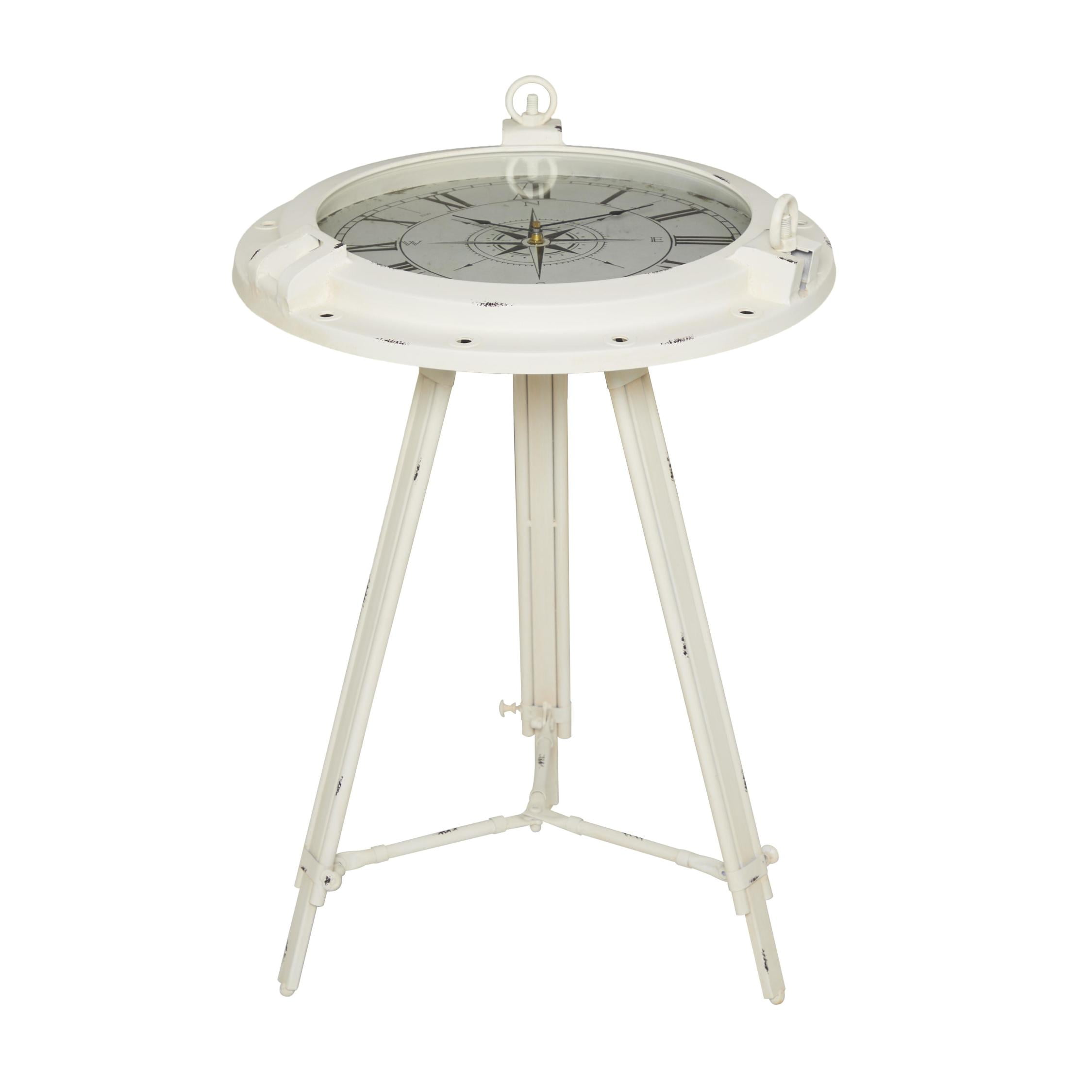 DecMode 19″ x 27″ White Metal Compass Accent Table with Clock and Clear Glass Top, 1-Piece