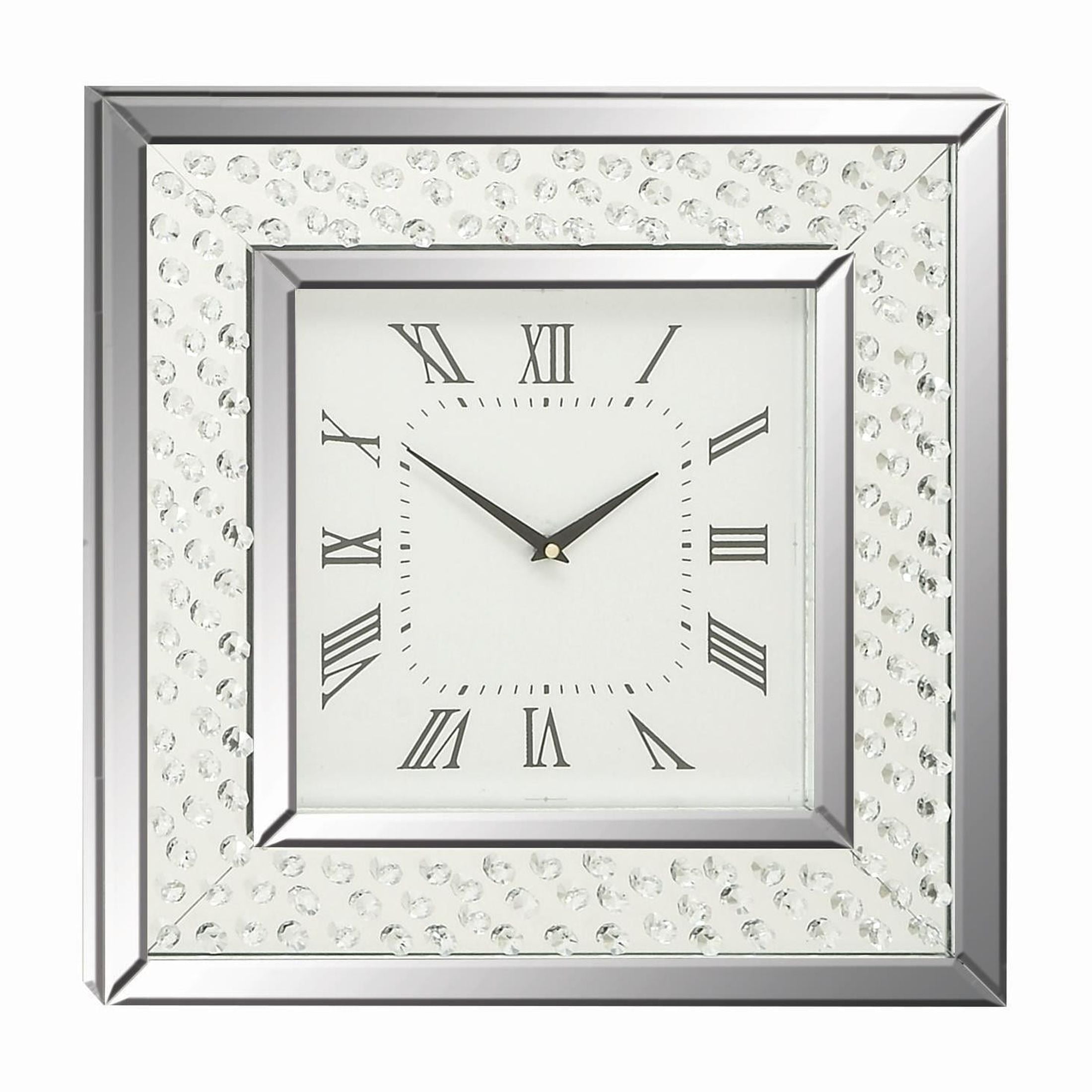 Indulge in the glamorous luxury of plush textures, dazzling details, and sleek finishes to elevate your home and add a sophisticated flair Crafted from MDF and glass materials, this silver decorative wall clock is both durable and stylish Rectangle wall clock for decoration comes in a mirrored silver finish on the frame and numbers, white clock face, accented by black hands Glass wall clock features a rectangular structure with a glass frame, Roman numerals, and minimalist straight clock hands The silver glass wall clock measures 1.60L x 24.25W x 31.95H inches, and weighs 10.67 lbs Mirrored silver oversized wall clock accentuates a rectangular structure with sleek straight clock hands and detailed Roman numerals Wipe clean with a dry cloth Glam wall clock for kitchen has an intricately inlaid glass frame and is kept together with an MDF backing Glam style DecMode 2″ x 32″ Silver Glass Wall Clock makes a perfect addition to any home