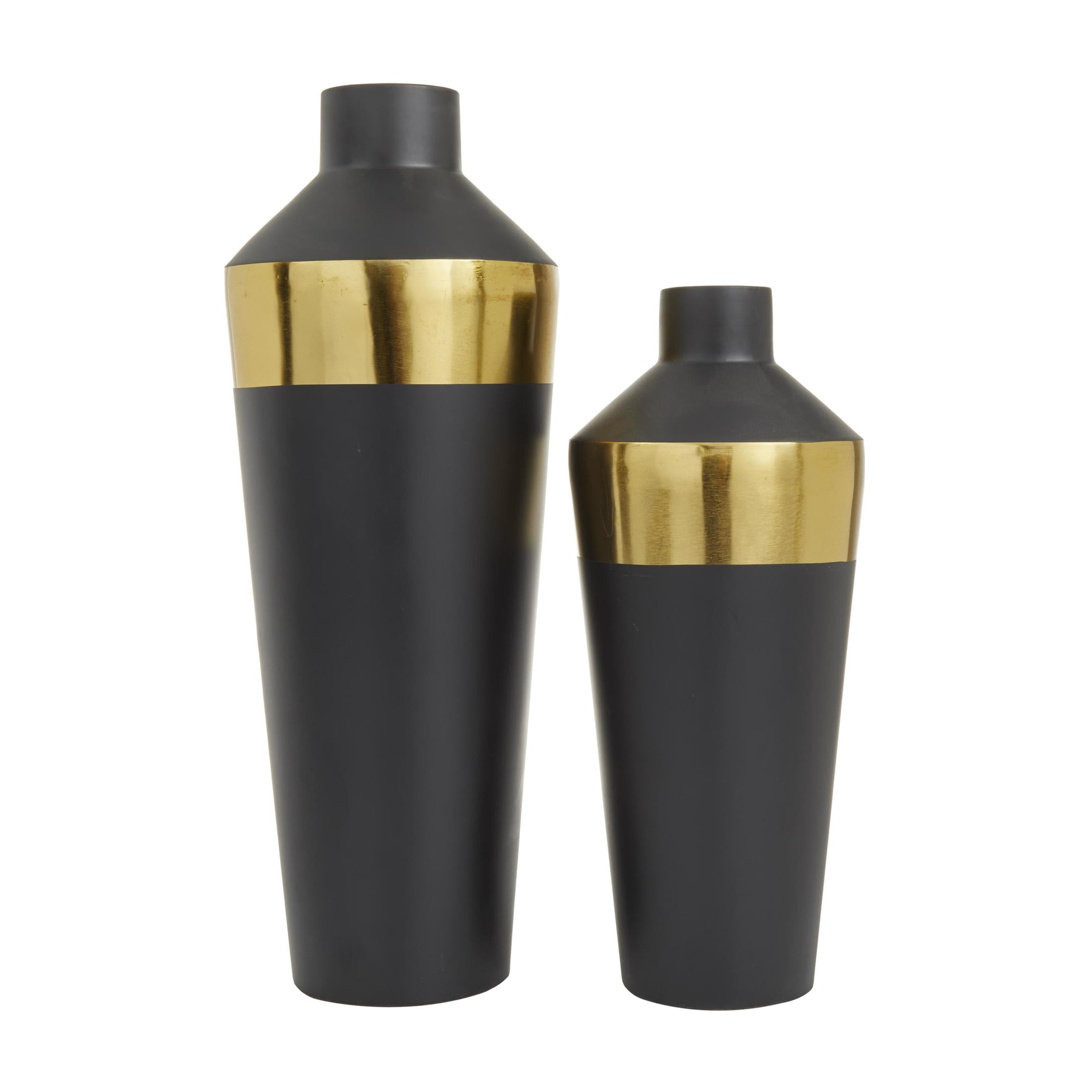DecMode 20″, 16″H Black Metal Vase with Gold Band, Set of 2