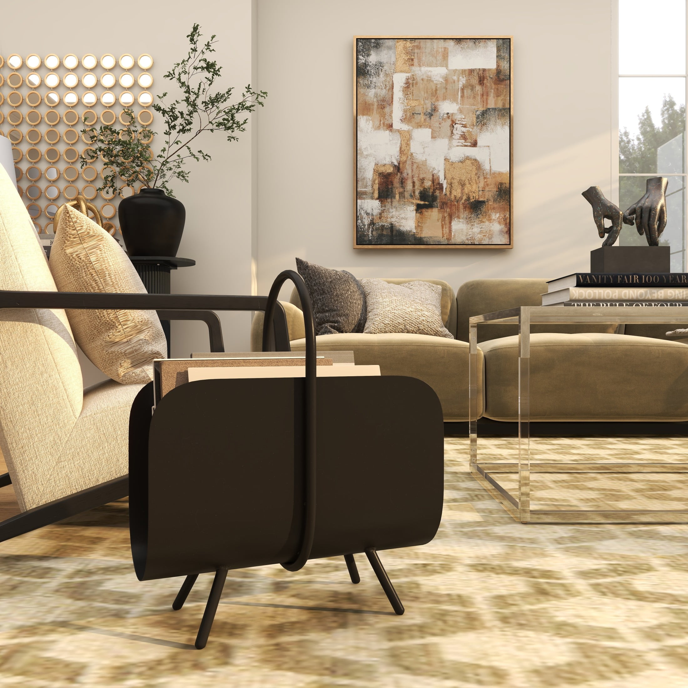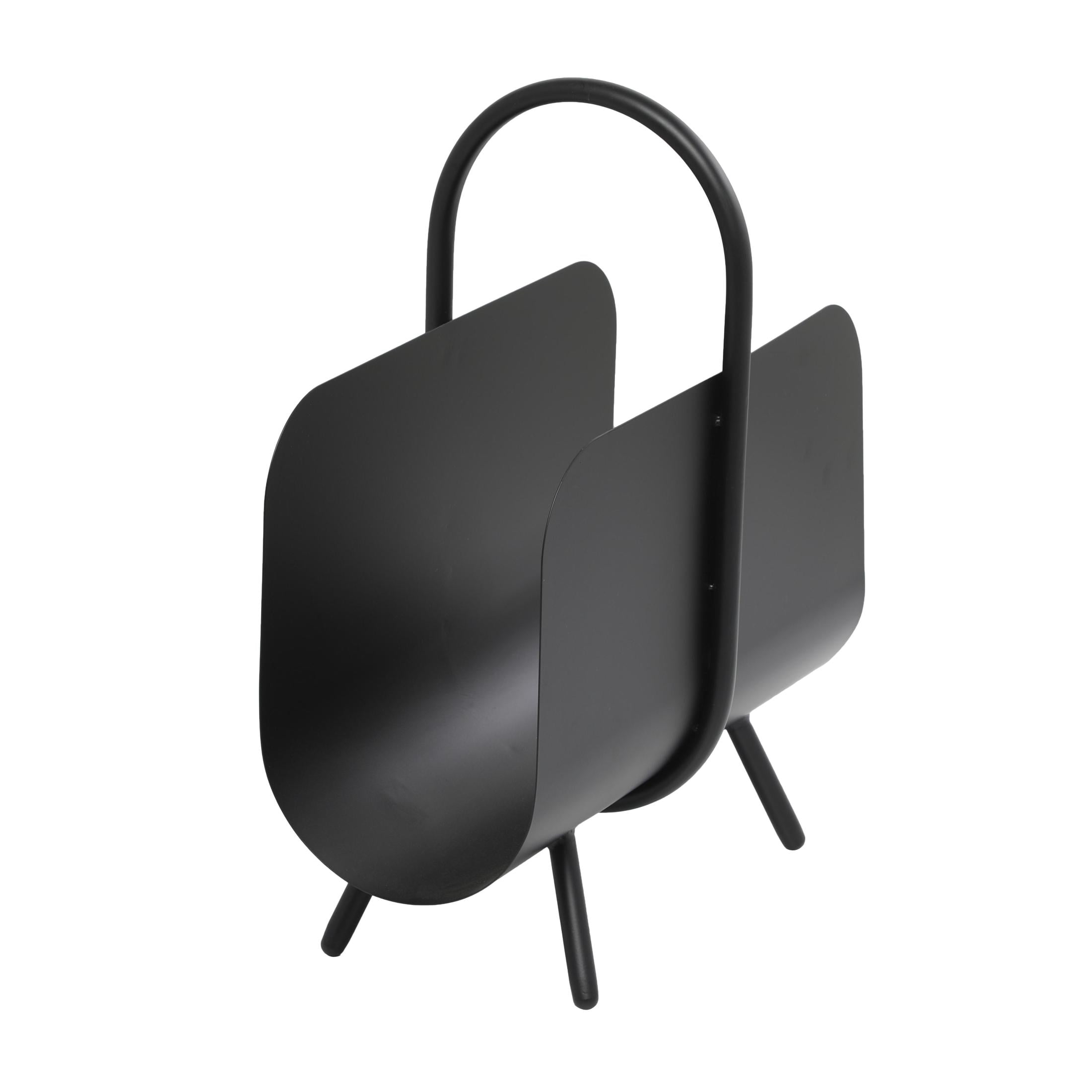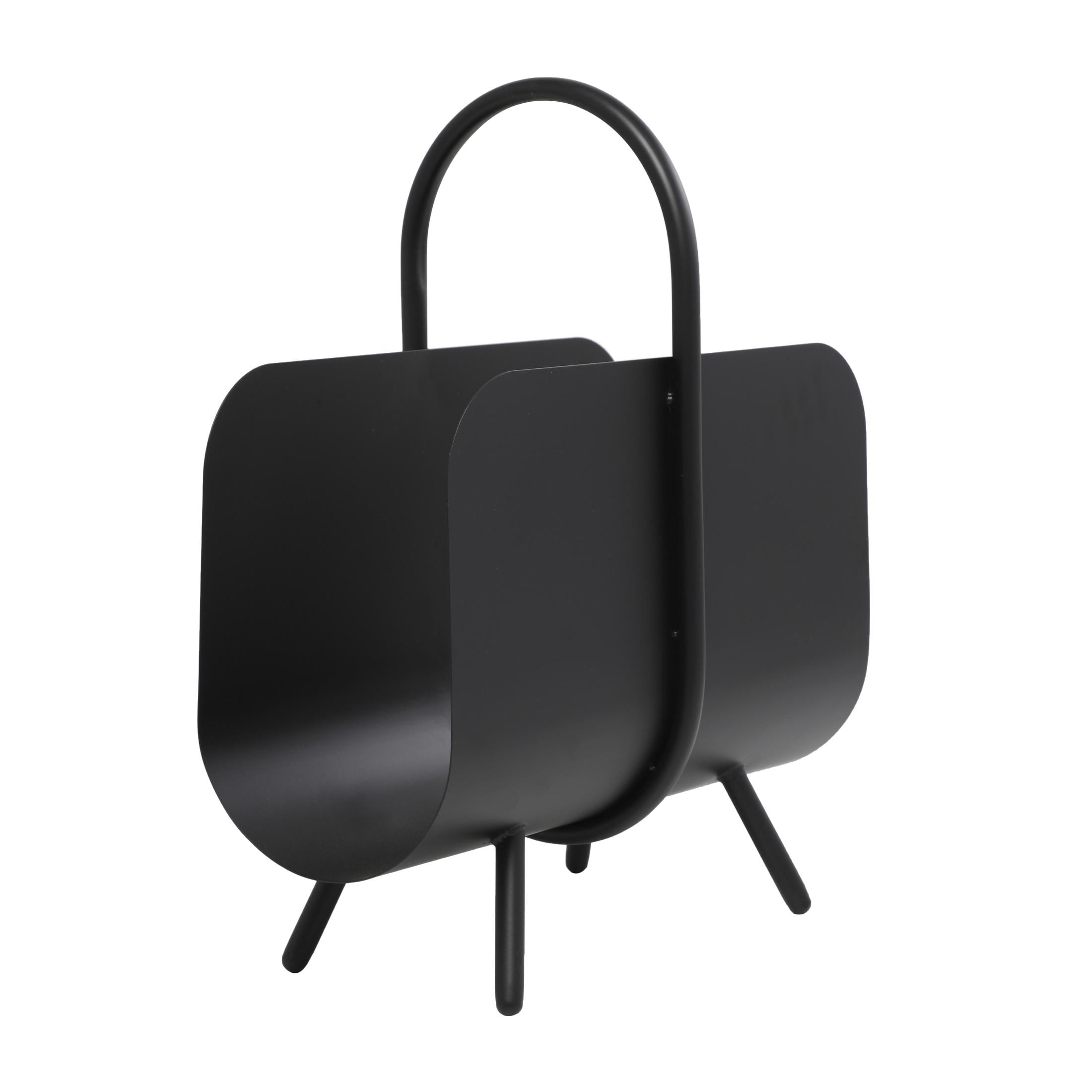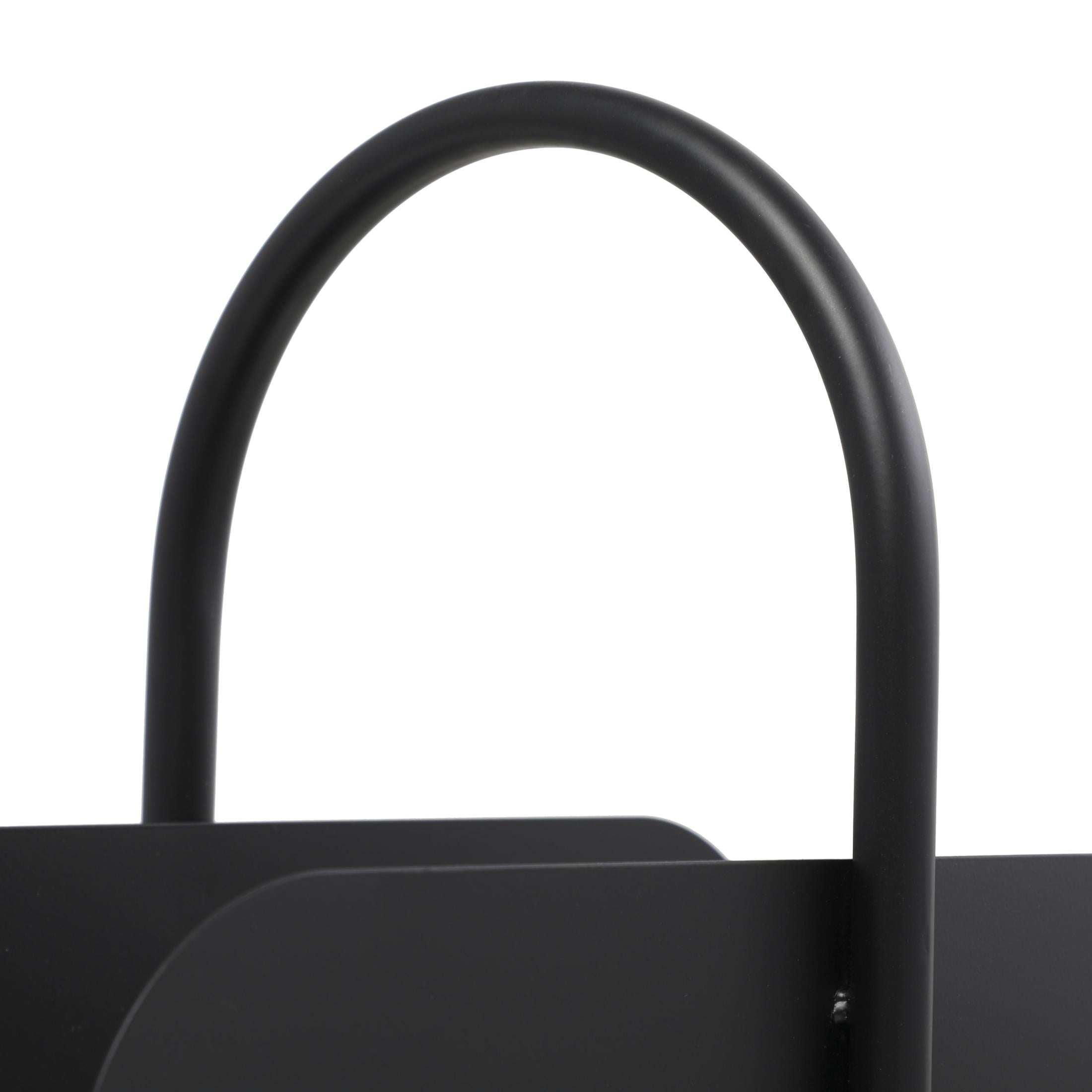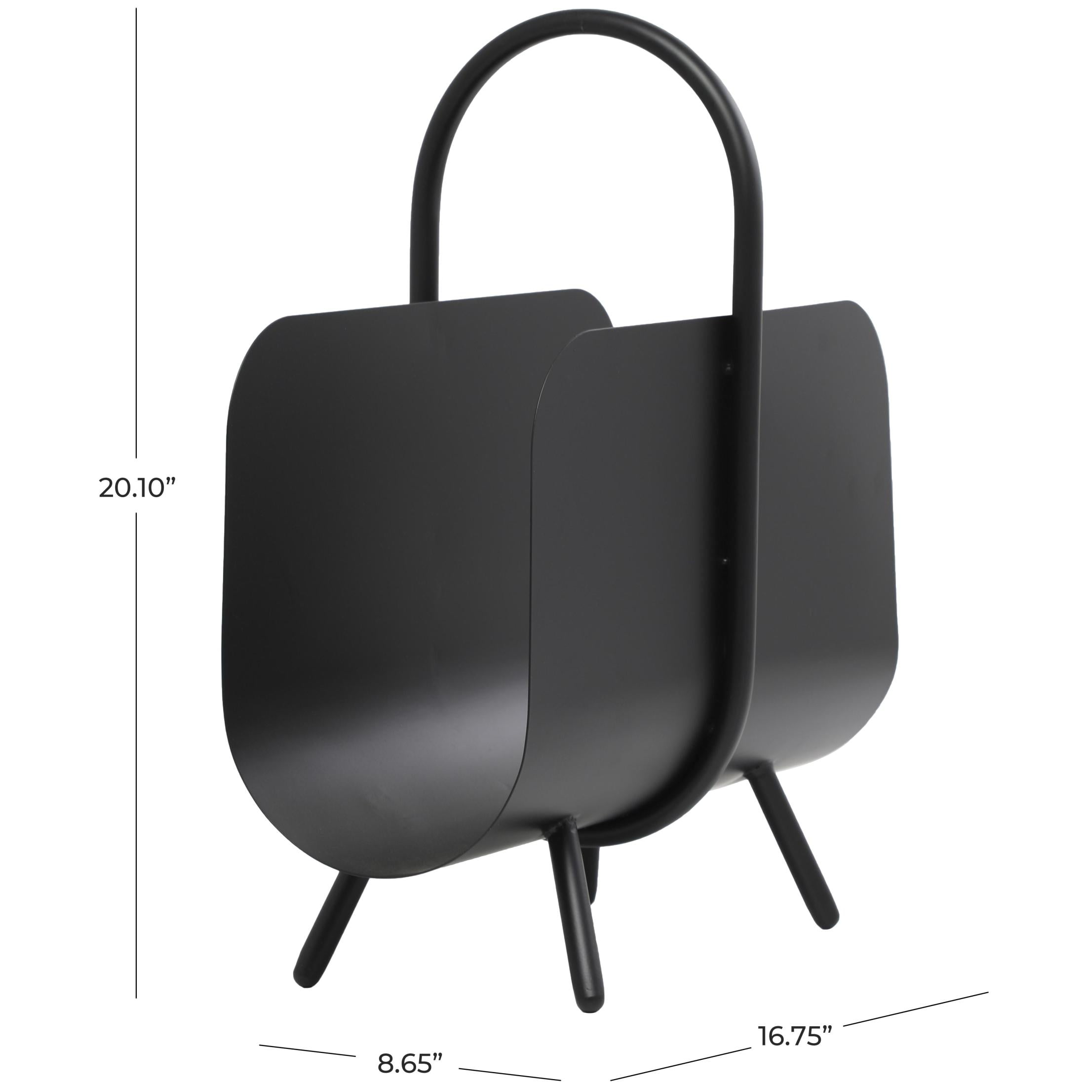 DecMode 20″ Black Metal Matte Curved Magazine Holder with Arched Handle and Flared Legs
