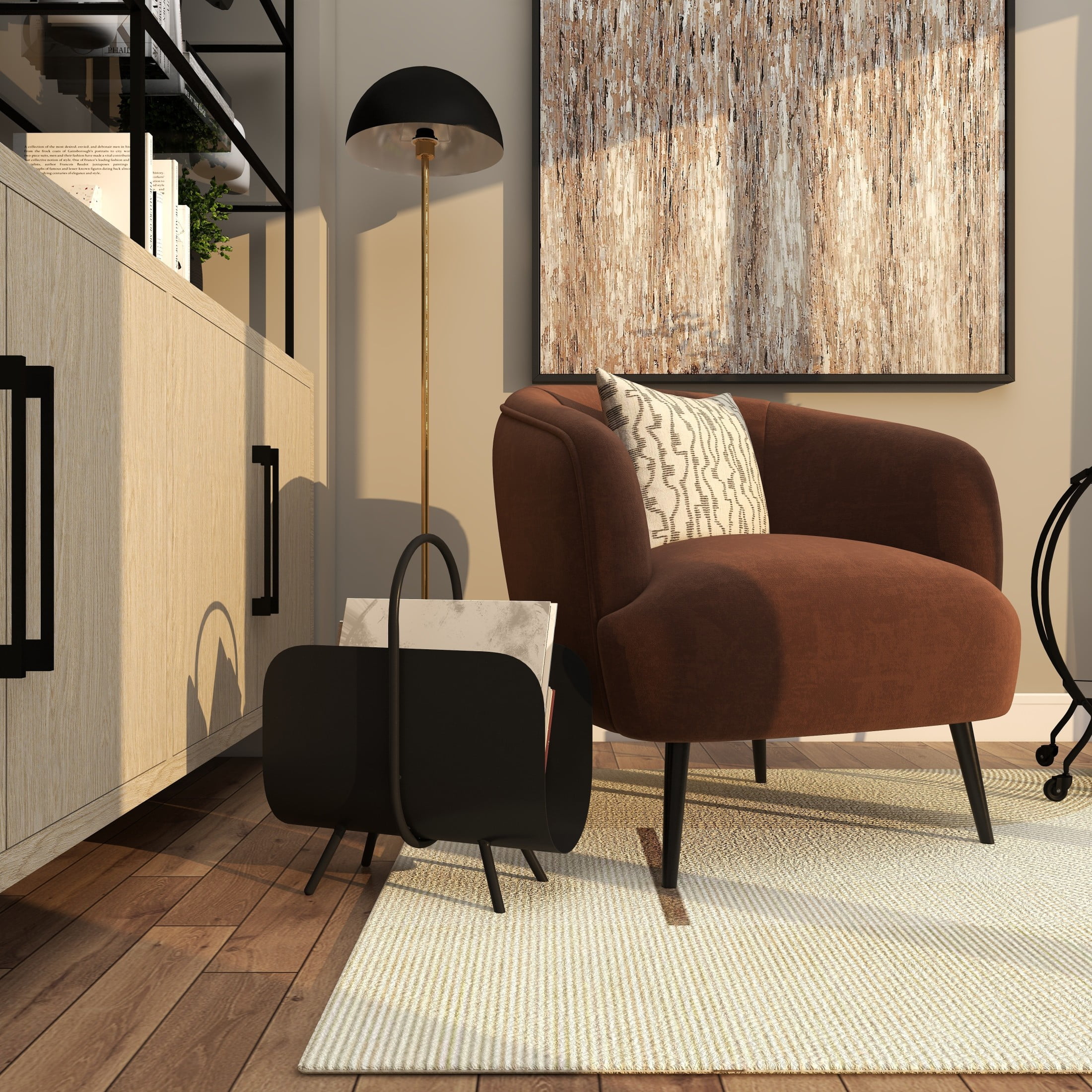Inspired by sleek elegance and clean lines, a minimalistic design offers effortless luxury with monochromatic tones and bold, angular structures The black decorative magazine holder is crafted from solid iron materials, ensuring durability and strength Round magazine file organizer comes in a premium matte black finish, adding a sleek touch to any room Reinvent your magazine storage with this creative metal magazine holder enclosed in two large circular frames for a unique design statement The black metal magazine holder measures 16.75L x 8.65W x 20.10H inches, and weighs 6.06 lbs Matte black magazine storage features a distinctive U-shaped design with a rounded handle, resting on four slender splayed legs Wipe clean with a dry cloth Modern magazine file holder is expertly welded from iron to form its distinctive oval shape Modern style DecMode 20″ Black Metal Matte Curved Magazine Holder with Arched Handle and Flared Legs makes a perfect addition to any home