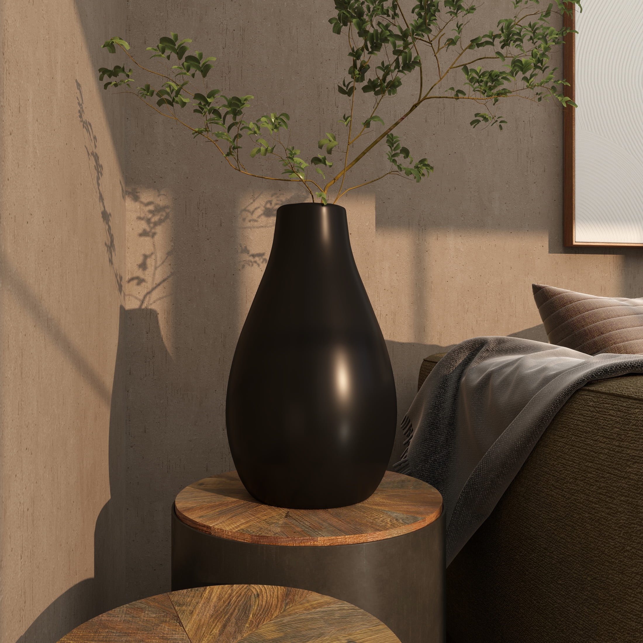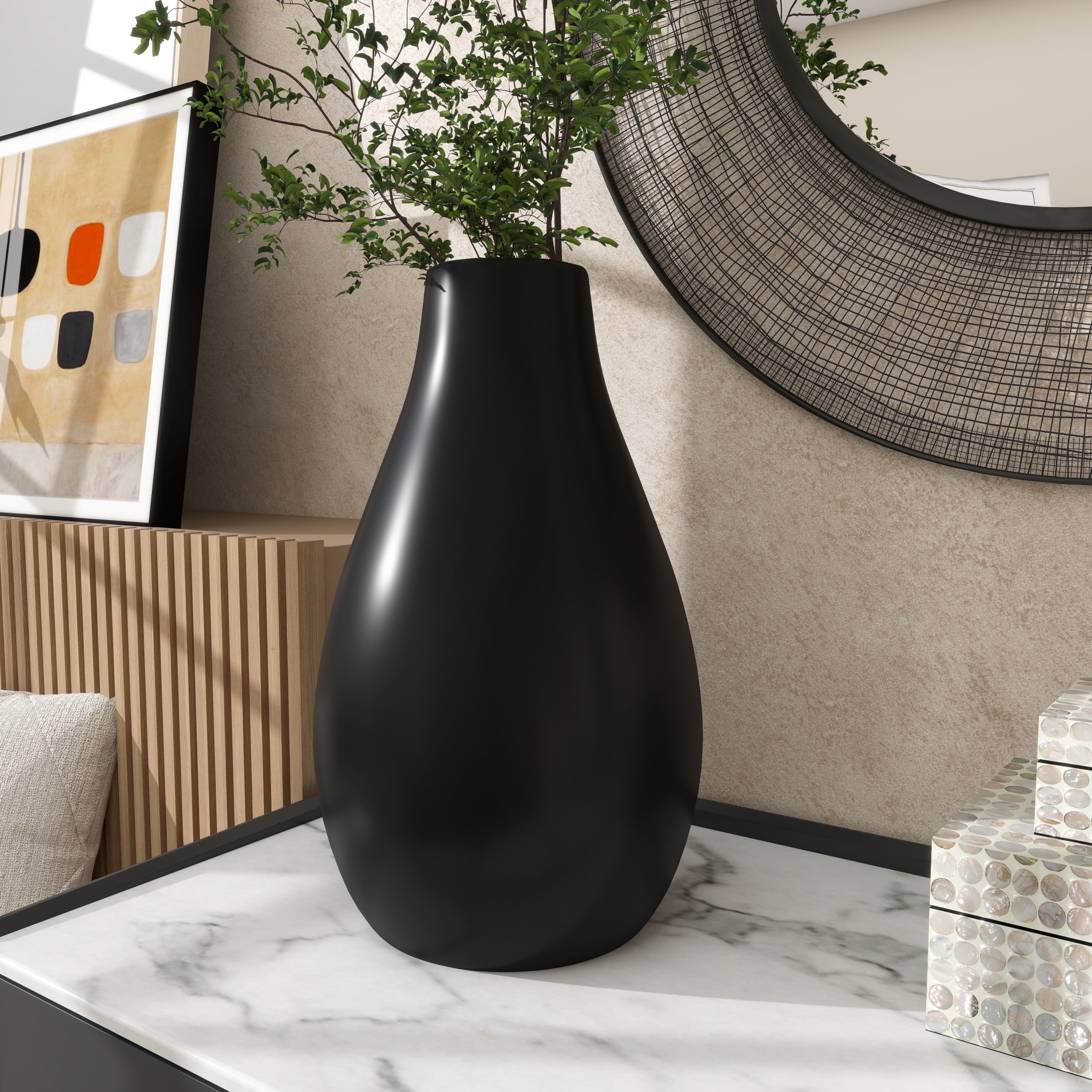 DecMode 20″ Matte Black Ceramic Vase