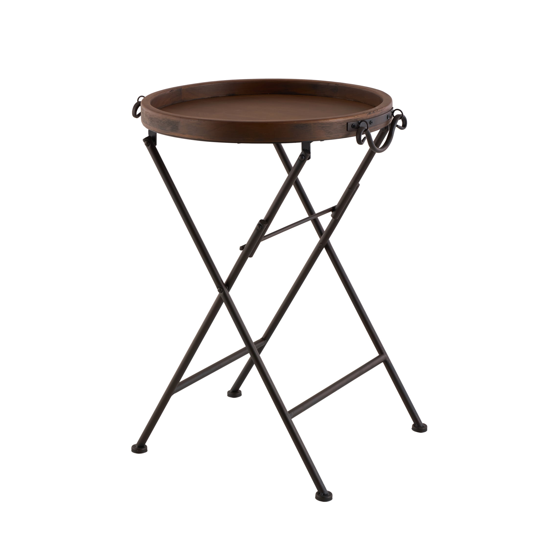DecMode 20″ x 28″ Black Metal Accent Table with Brown Wood Top, 1-Piece is a unique addition to your stylish home. Bring a finishing touch to your home with an inviting appeal with this beautifully crafted accent table. A compact friendly table providing you with additional surface storage space any where in your home. Decorate this folding end table to store wine necessities or as side table to store your books, sculpture and potted plants for a creative display. Designed with felt or rubber stoppers at the base that prevent scratching furniture and table tops, as well as sliding around. This item ships in 1 carton. Suitable for indoor use only. This item ships fully assembled in one piece. Maximum weight limit is 100 lbs. This is a single black colored end table. Traditional style.