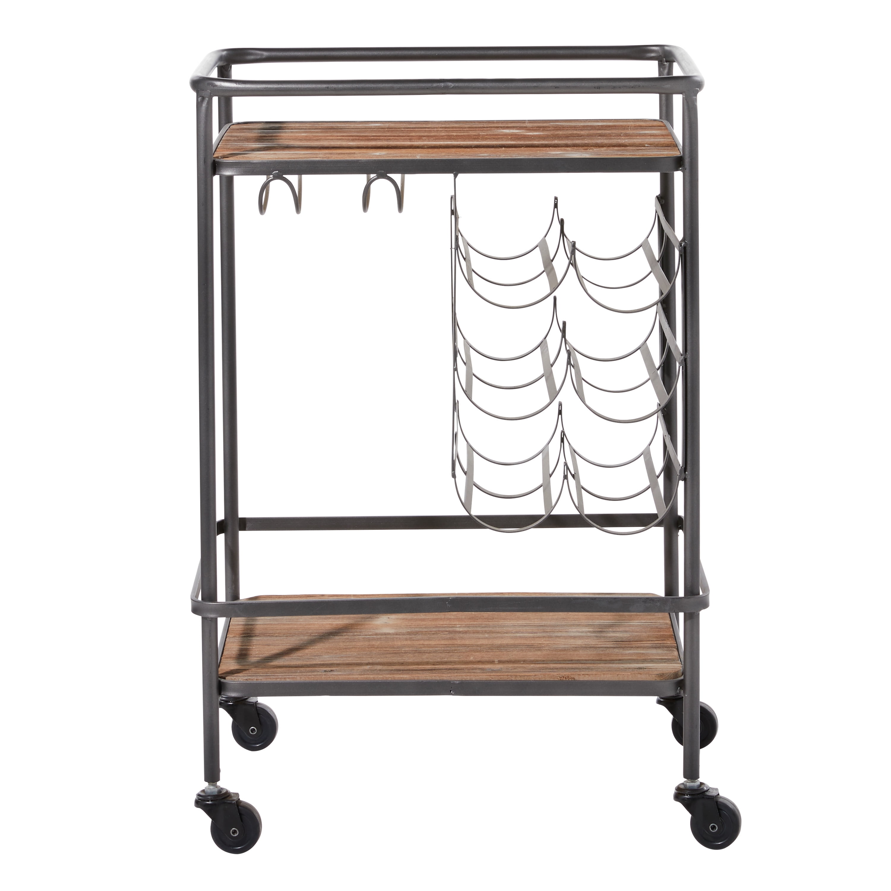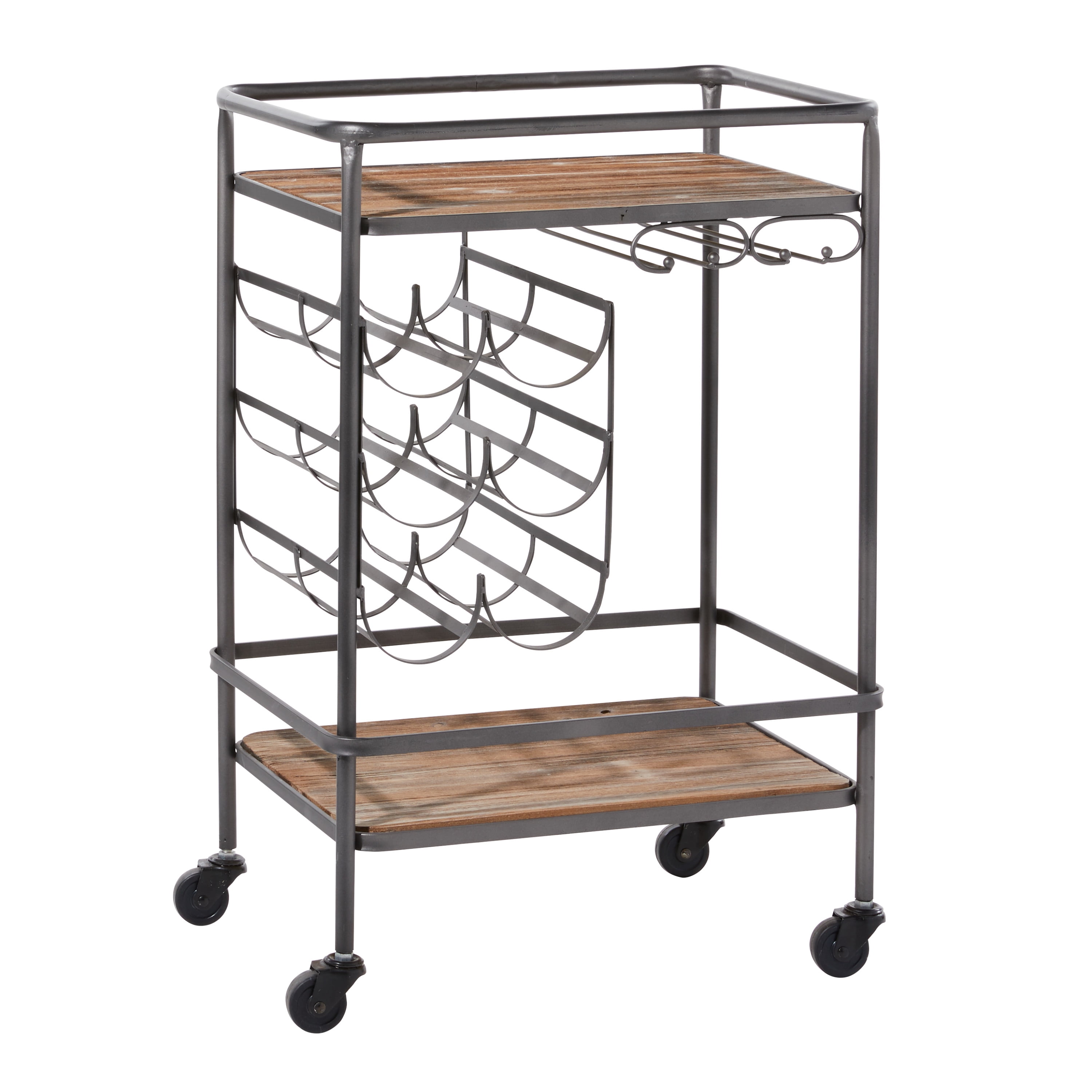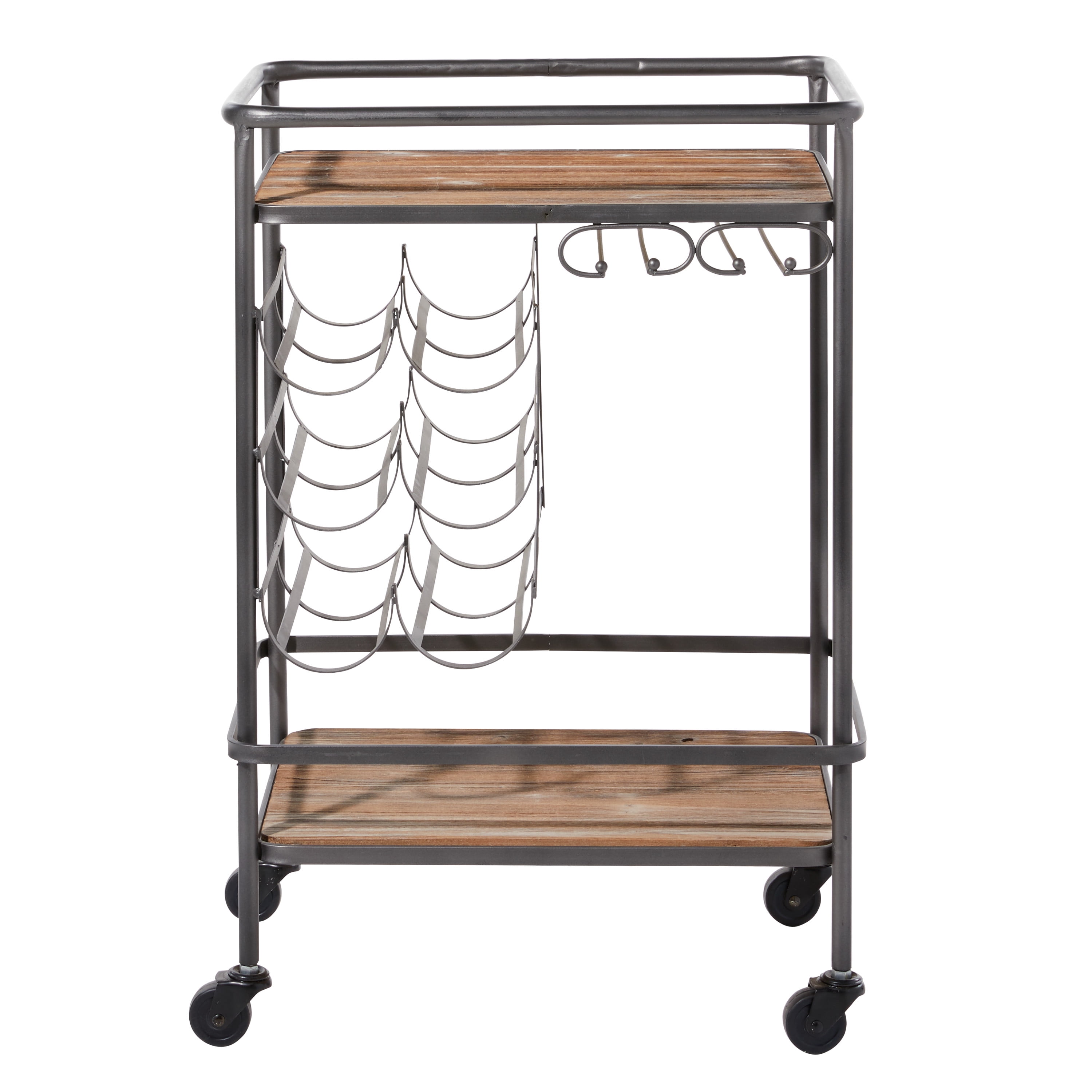 DecMode 20″ x 30″ Brown Wood Rolling 2 Shelves Bar Cart, 1-Piece