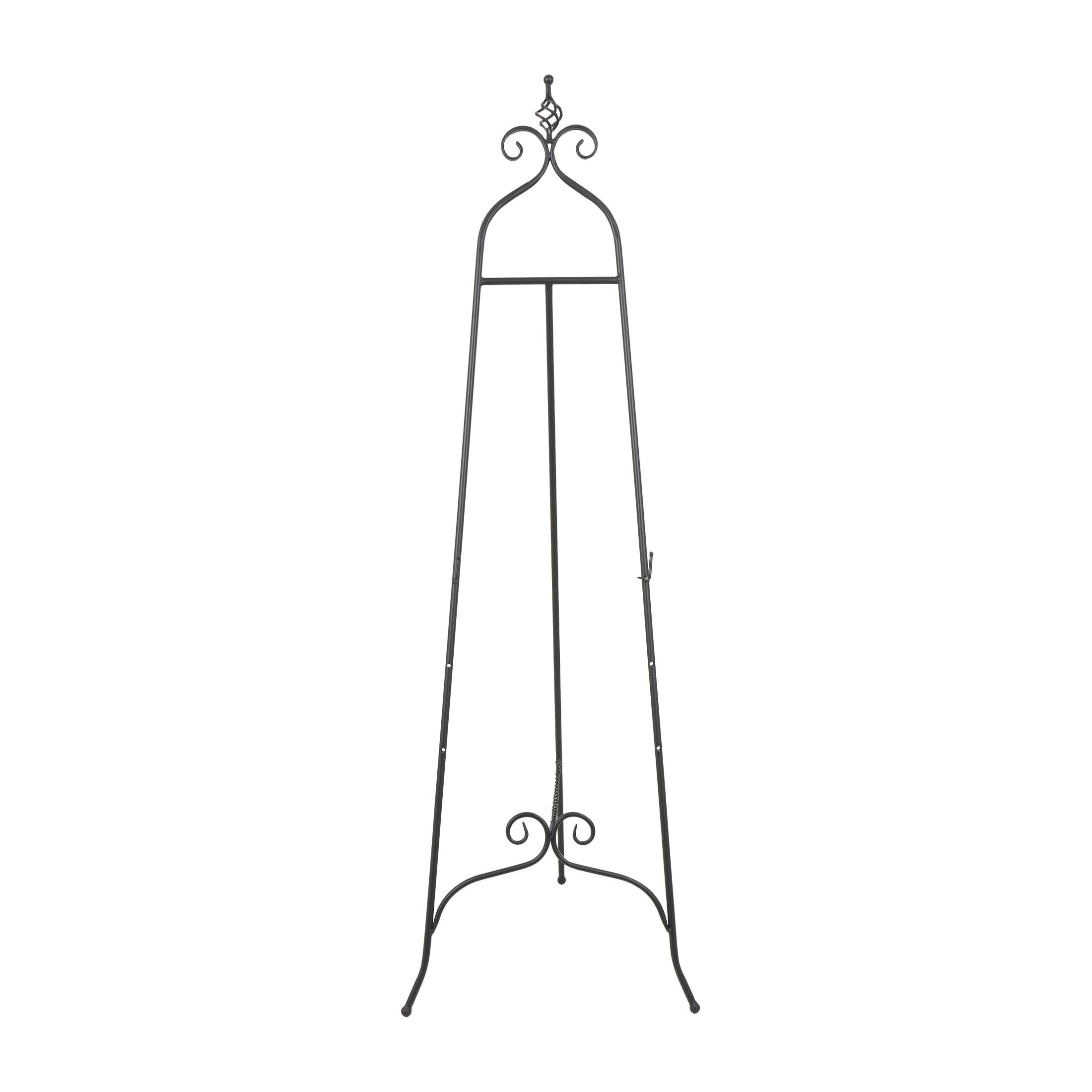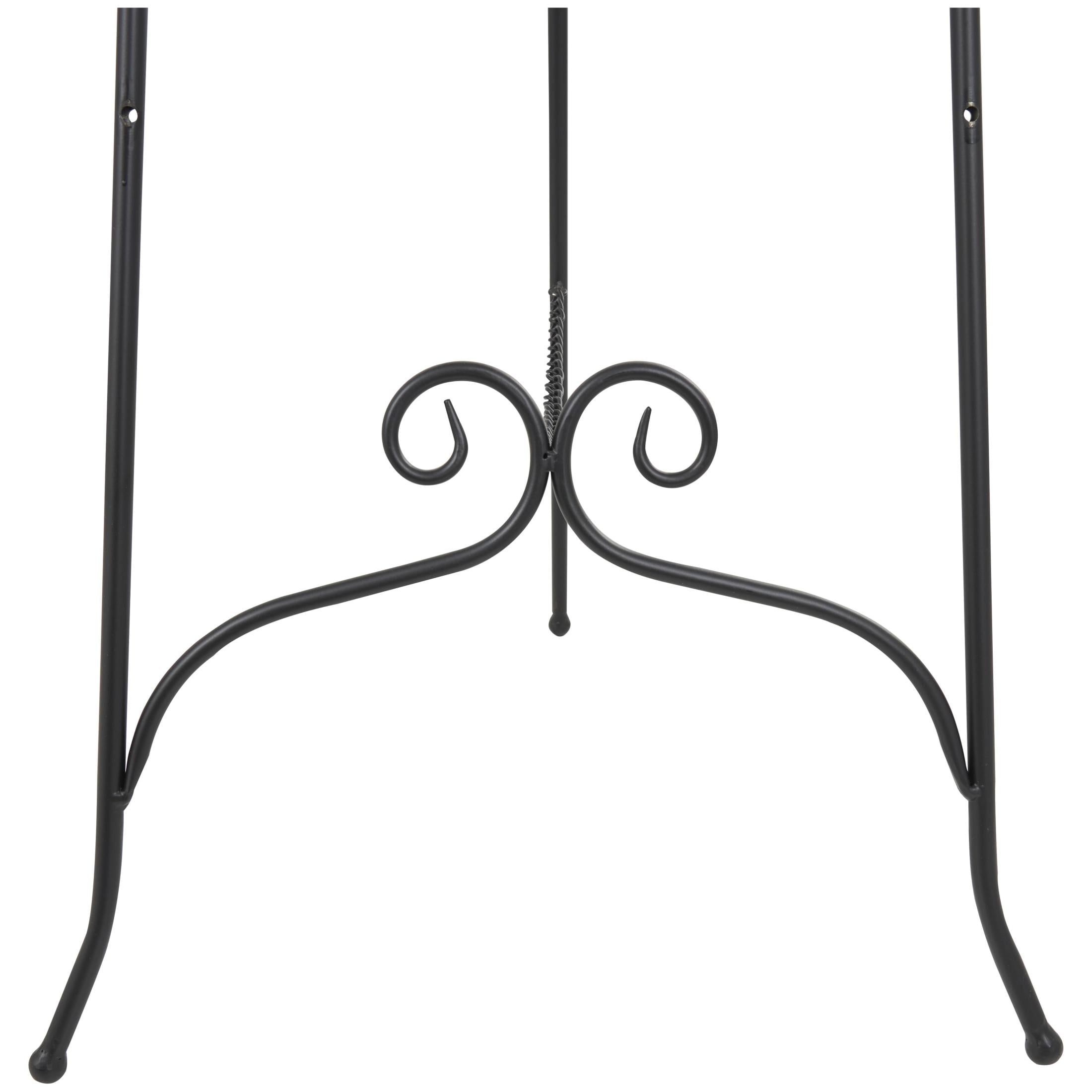 DecMode 21″ x 63″ Black Metal Adjustable 3 Level Scroll Easel with Chain Support, 1-Piece is a unique addition to your stylish home. Place the scroll floor standing easel in your living room or entryway to elegantly display framed art pieces that captivate guests. This item ships in 1 carton. Decorative floor easel features 3 adjustable levels to suit various sized items; however, items should not exceed the height of the easel when placed on it to prevent tipping and to ensure stability. This easel is designed to accommodate items with a maximum weight limit of 10 pounds, and a maximum height of 40 inches at the lowest level and between 25- 34 inches at the highest level. Suitable for indoor use only. This item ships fully assembled in one piece. Maximum weight limit is 10 lbs. This is a single black colored floor standing easel. Traditional style.