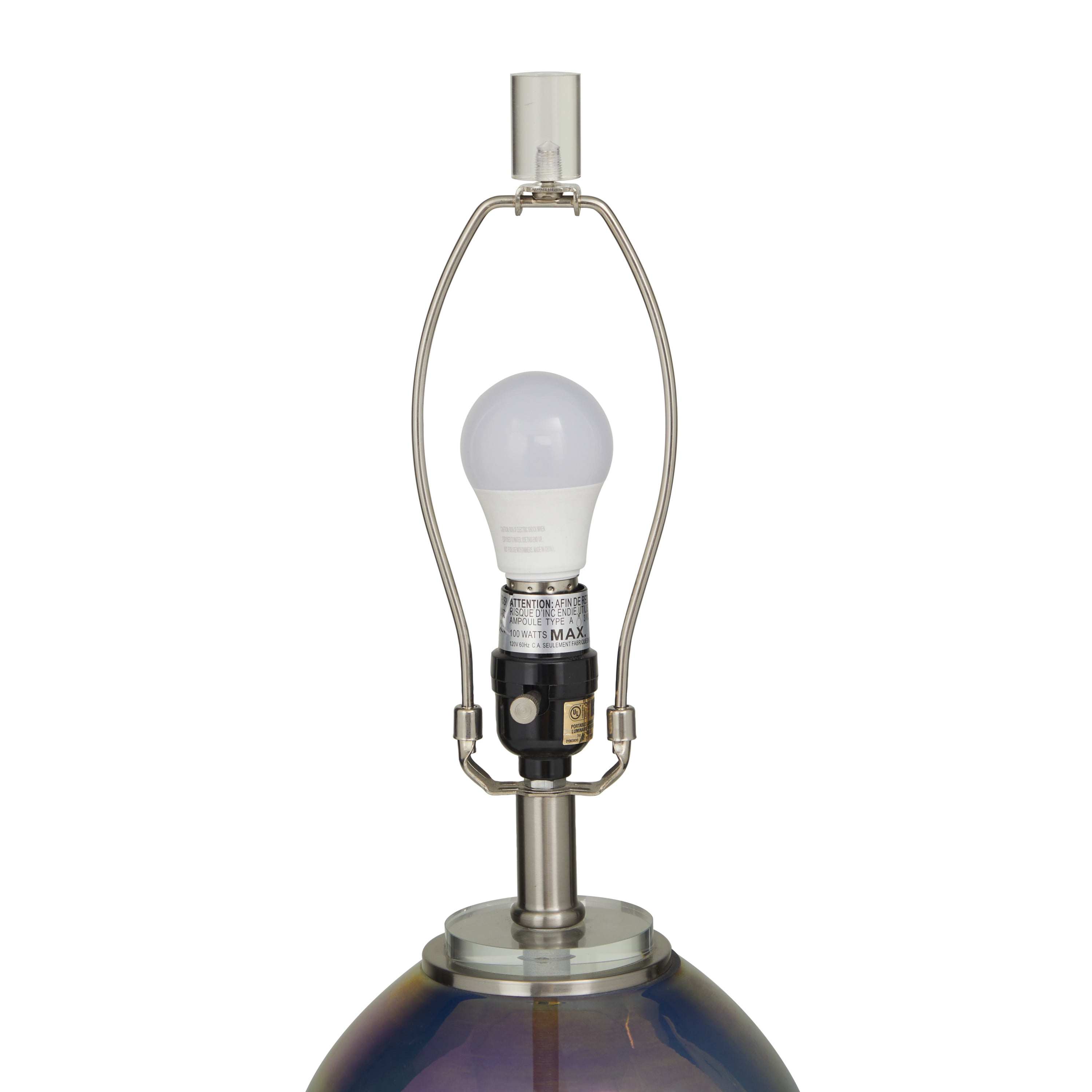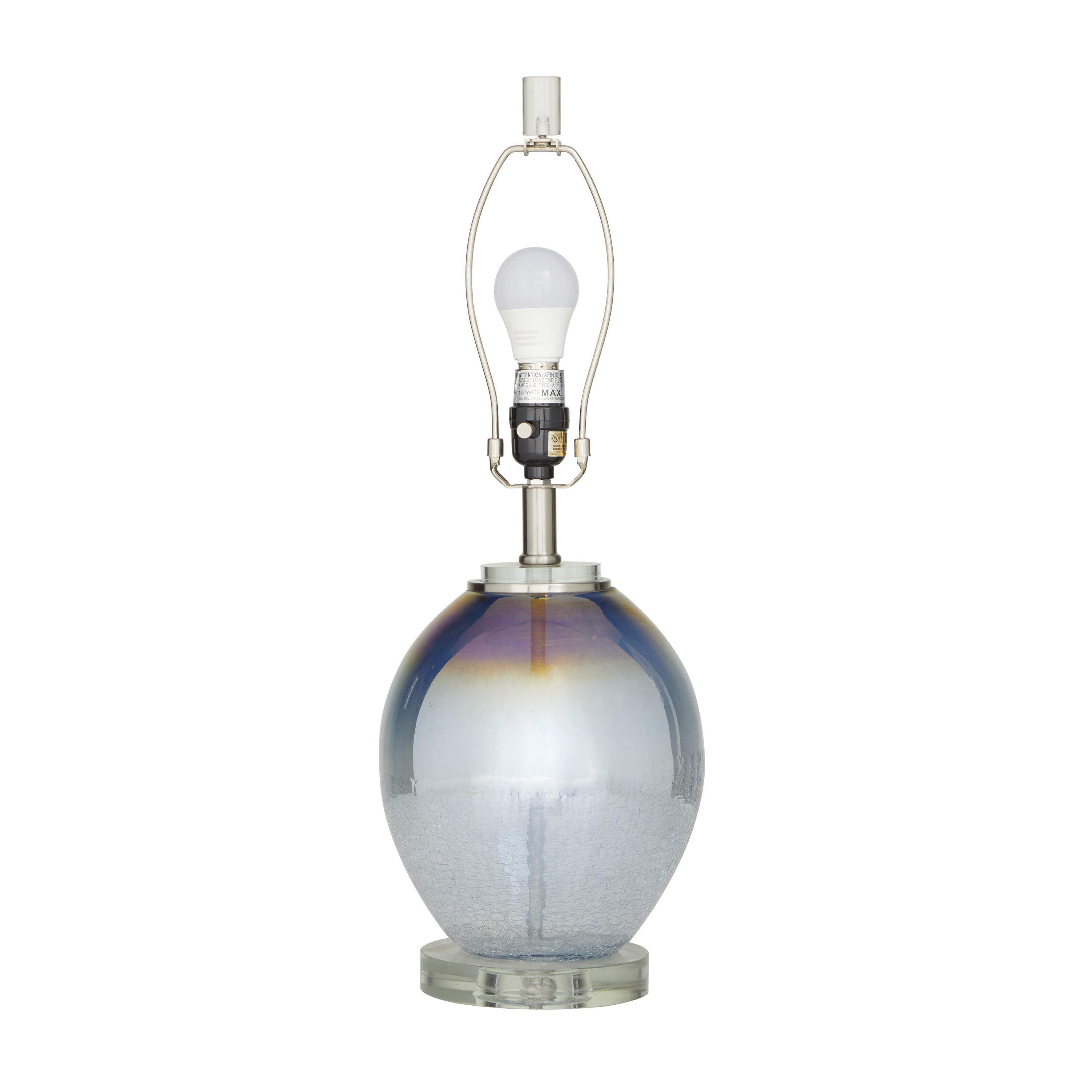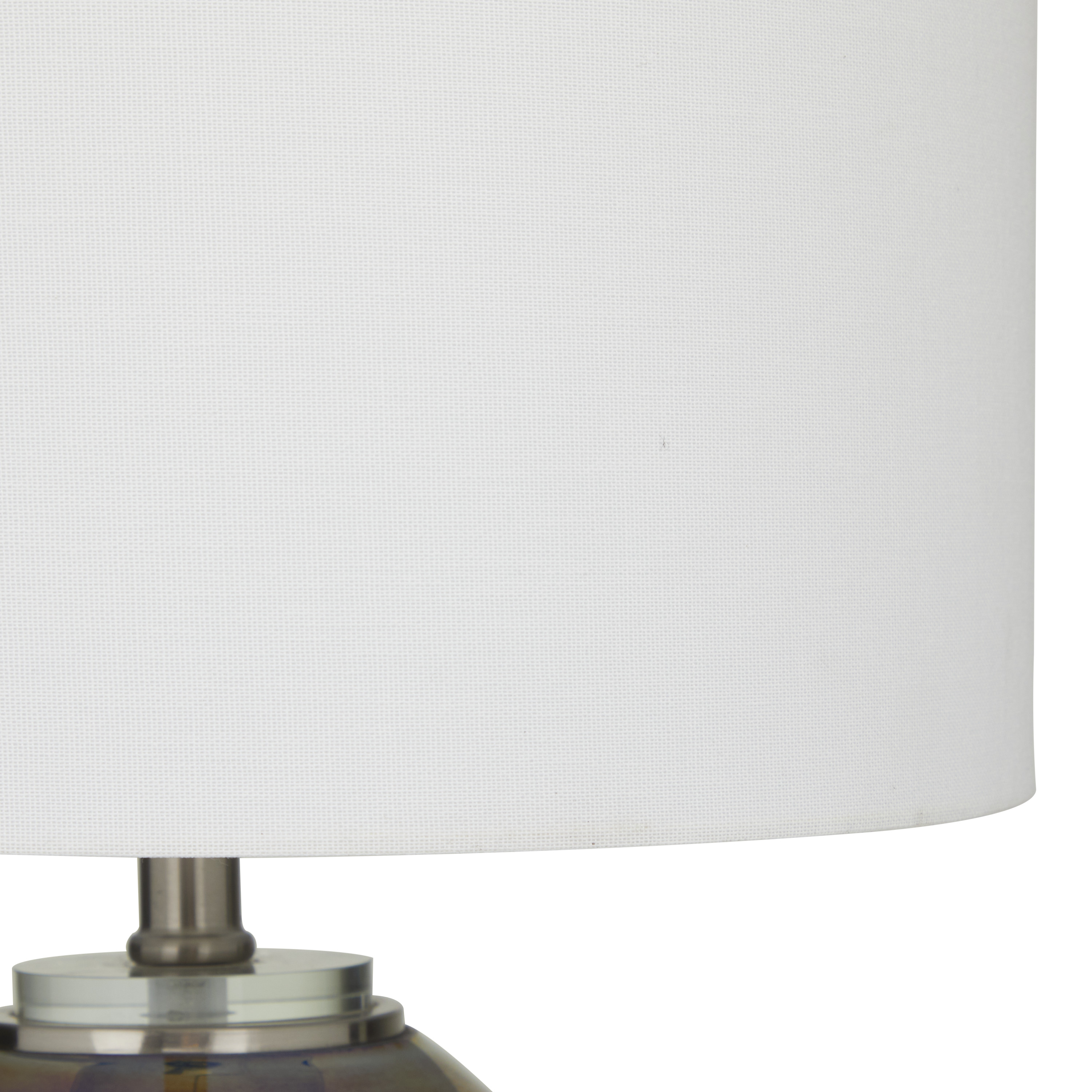Inspired by sleek elegance and clean lines, a minimalistic design offers effortless luxury with monochromatic tones and bold, angular structures Clear accent table lamp crafted of robust and long-lasting glass and fabric materials Decorative table lamp with a white shade and a clear iridescent body A modern table lamp featuring a white drum-shaped shade mounted on a clear round body with shades of rainbow and a clear round base Each table lamp measures 14.15L x 14.15W x 23.10H inches, and weighs 8.47 lbs A lamp for accent table accentuating a drum shade and a round body with a cracking effect Wipe clean with a dry cloth The round fabric shade of this accent lamp is securely mounted on the glass body Modern style DecMode 23″ Blue Table Lamp with White Linen Shade (2 Count) makes a perfect addition to any home