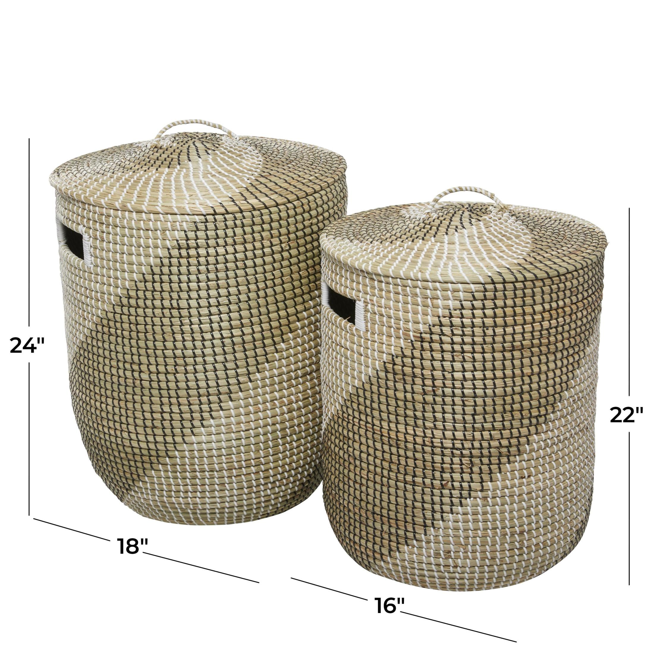 DecMode 24″, 22″H Brown Seagrass Handmade Two Toned Storage Basket with Matching Lids, 2-Pieces