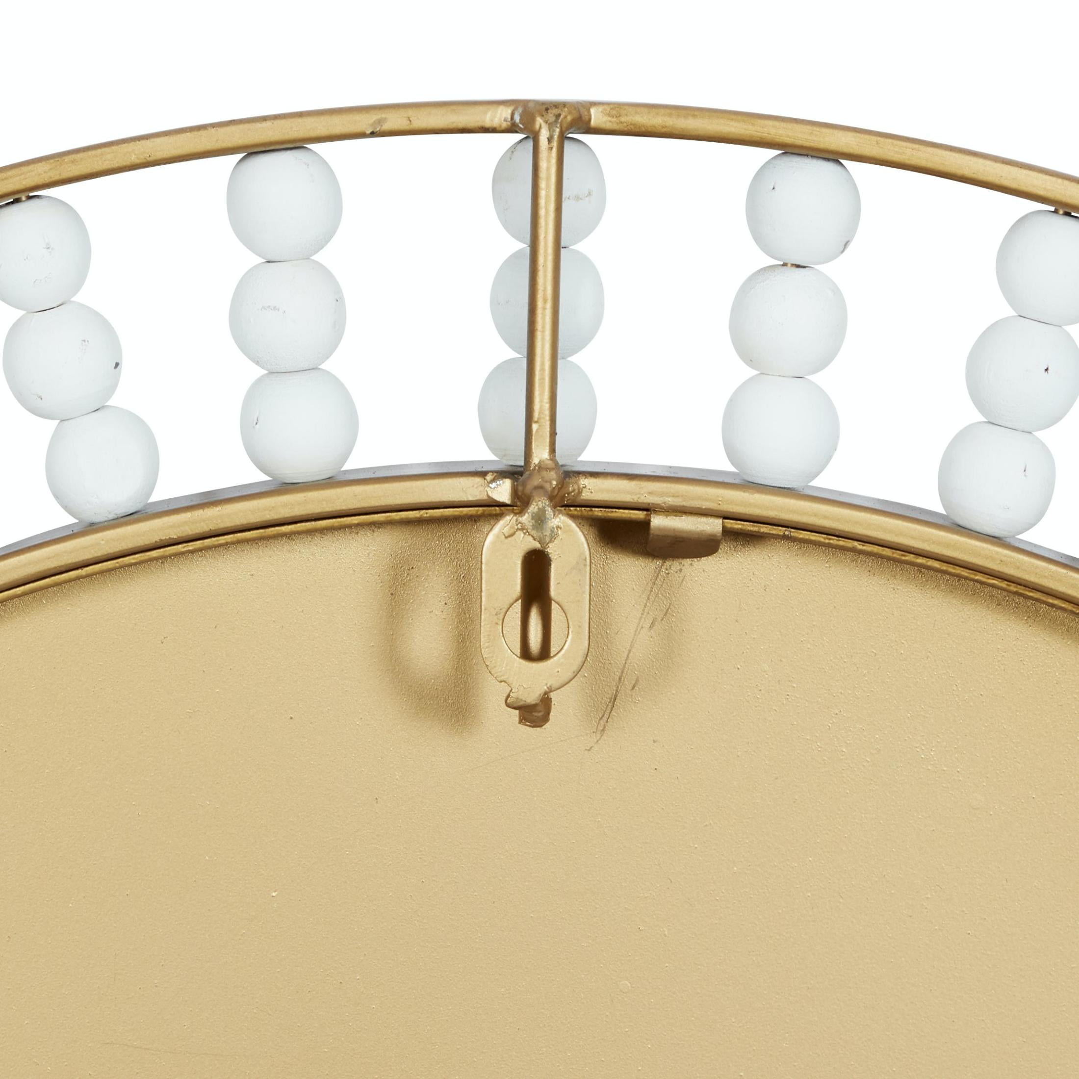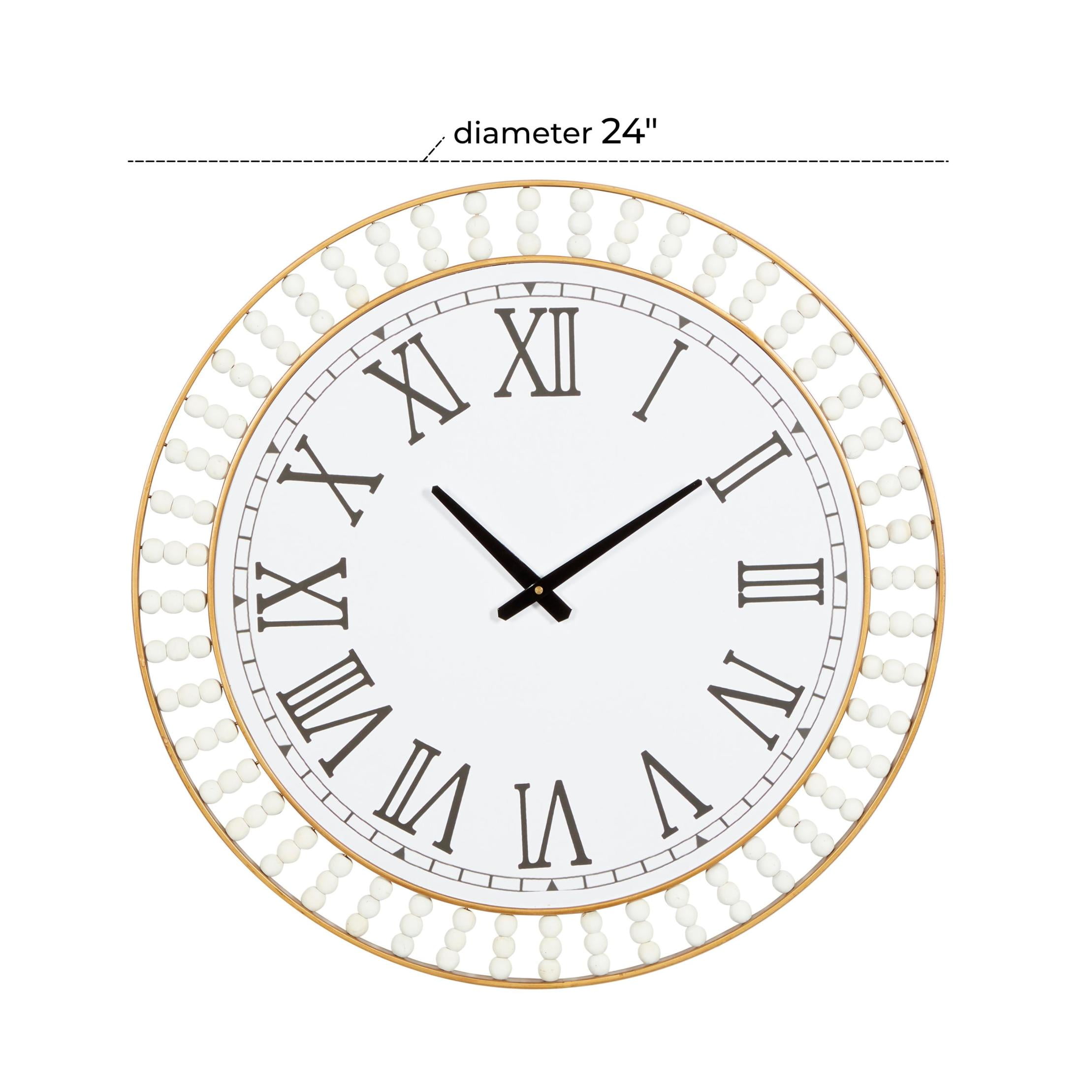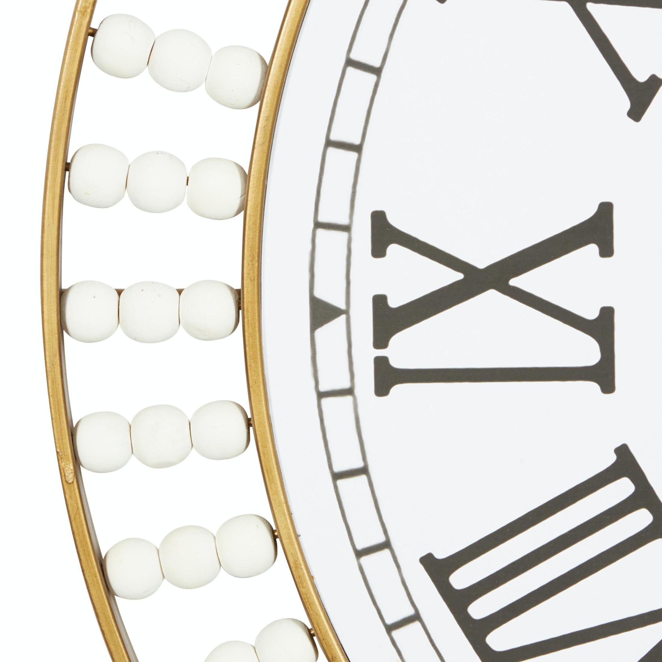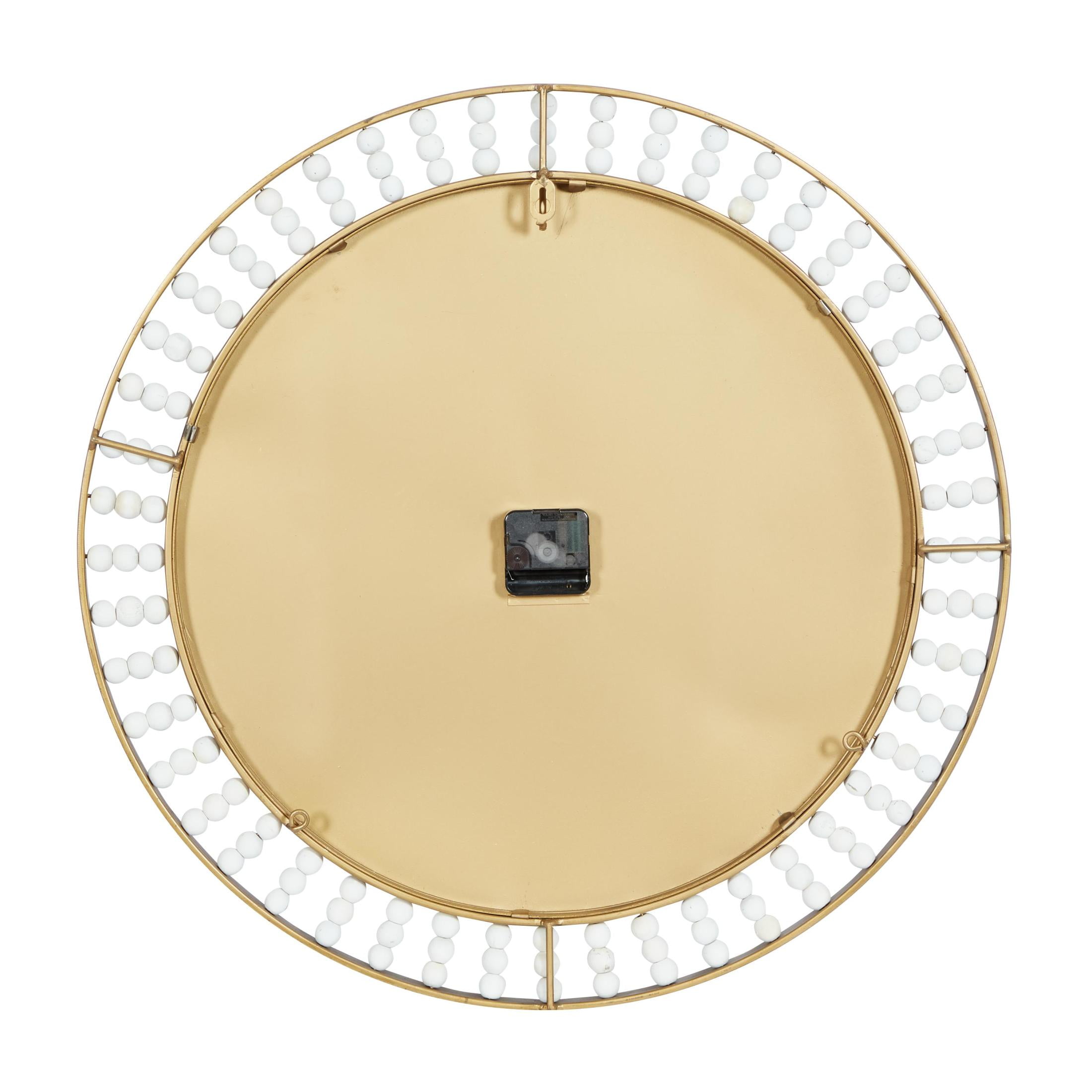 DecMode White Wood Beaded Decorative Wall Clock with Gold Metal Frame and Black Accents, 24″ x 2″ x 24″