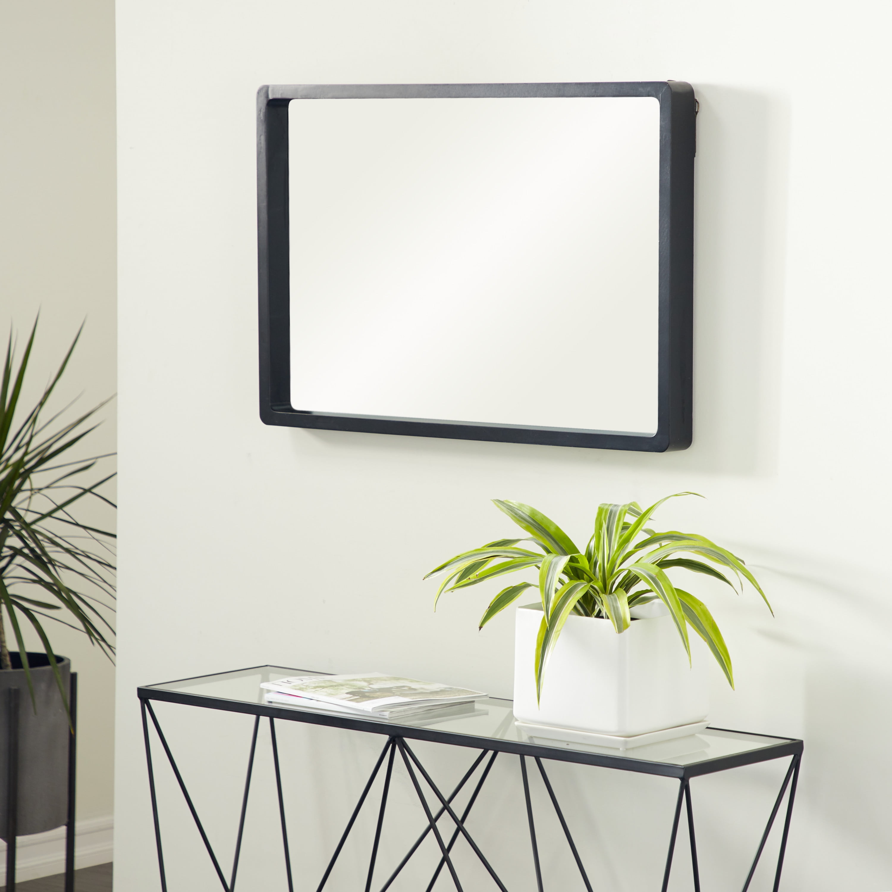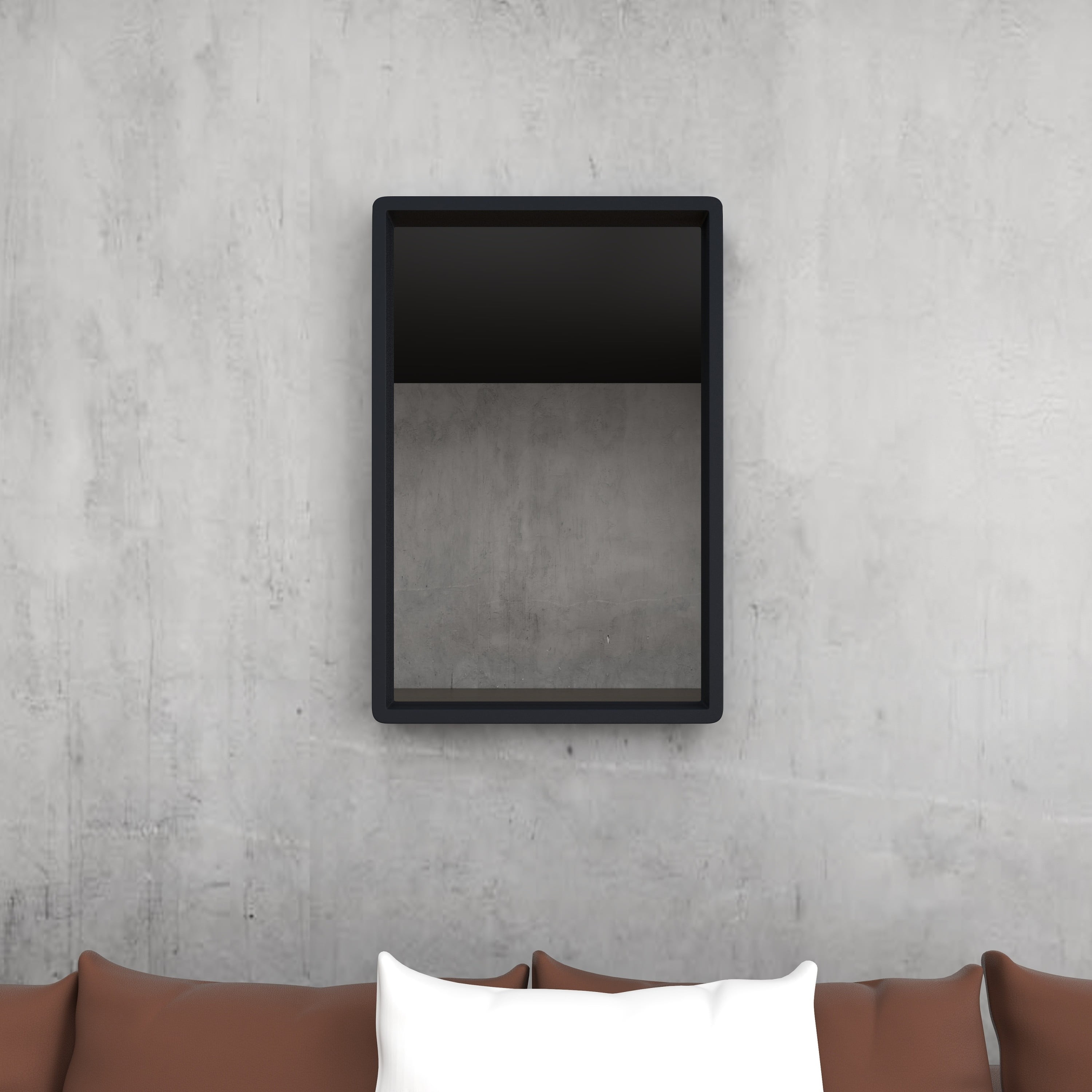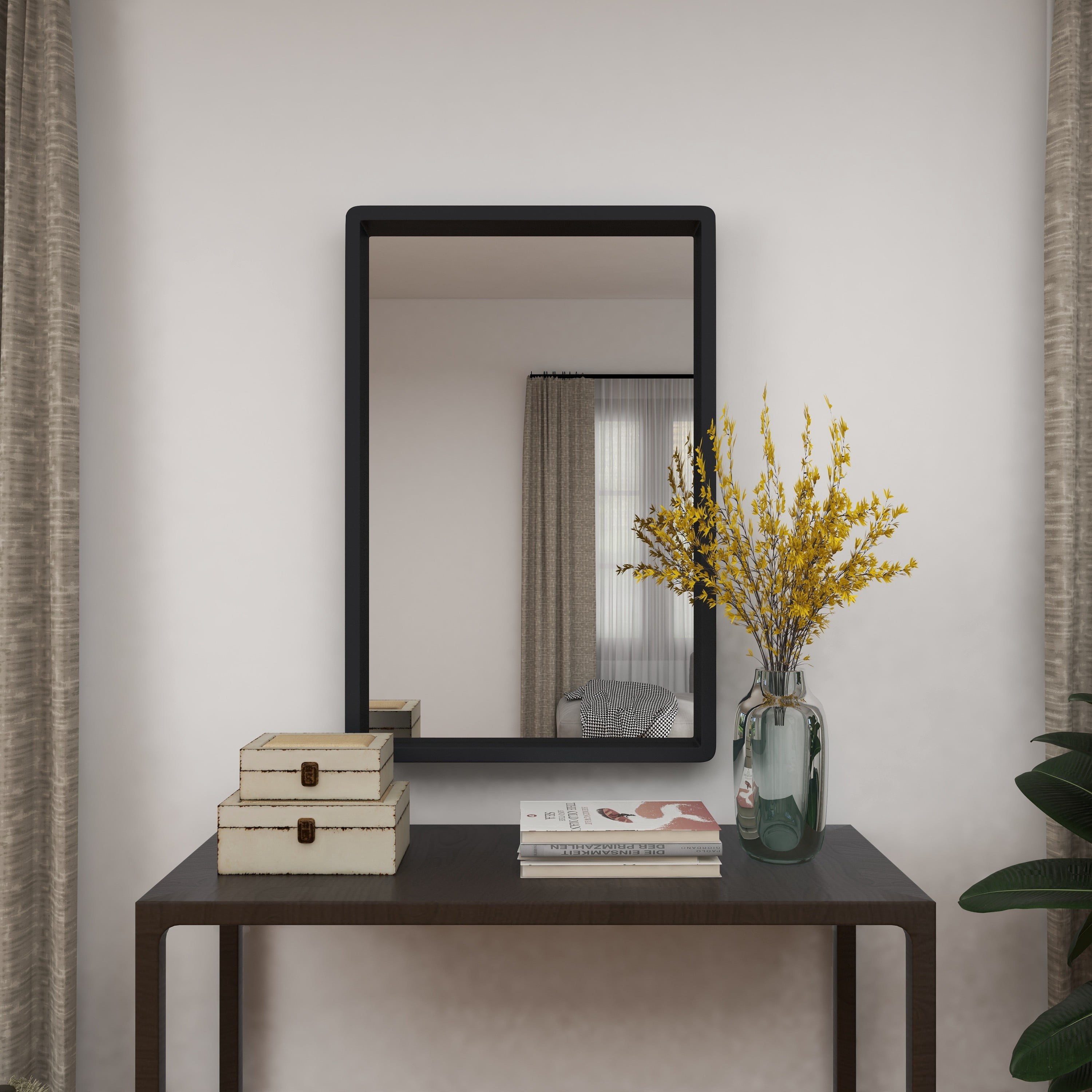 Embrace artistic expression with a style that highlights bold designs with sleek lines, neutral elements, and a minimalist aesthetic This rectangle wall mirror is made of durable MDF wood and glass mirror materials This extra large wooden wall mirror features a solid black wooden frame finish This decorative wall mirror features a thick black-framed wooden mirror design The wall mirror measures 24L x 3W x 36H inches, and weighs 21.50 lbs This contemporary wall mirror features a minimalistic black-framed rectangle mirror design Wipe clean with a dry cloth Wood is carved and glass is attached to form a timeless wall mirror design Contemporary style DecMode 24″ x 36″ Black Wall Mirror makes a perfect addition to any home