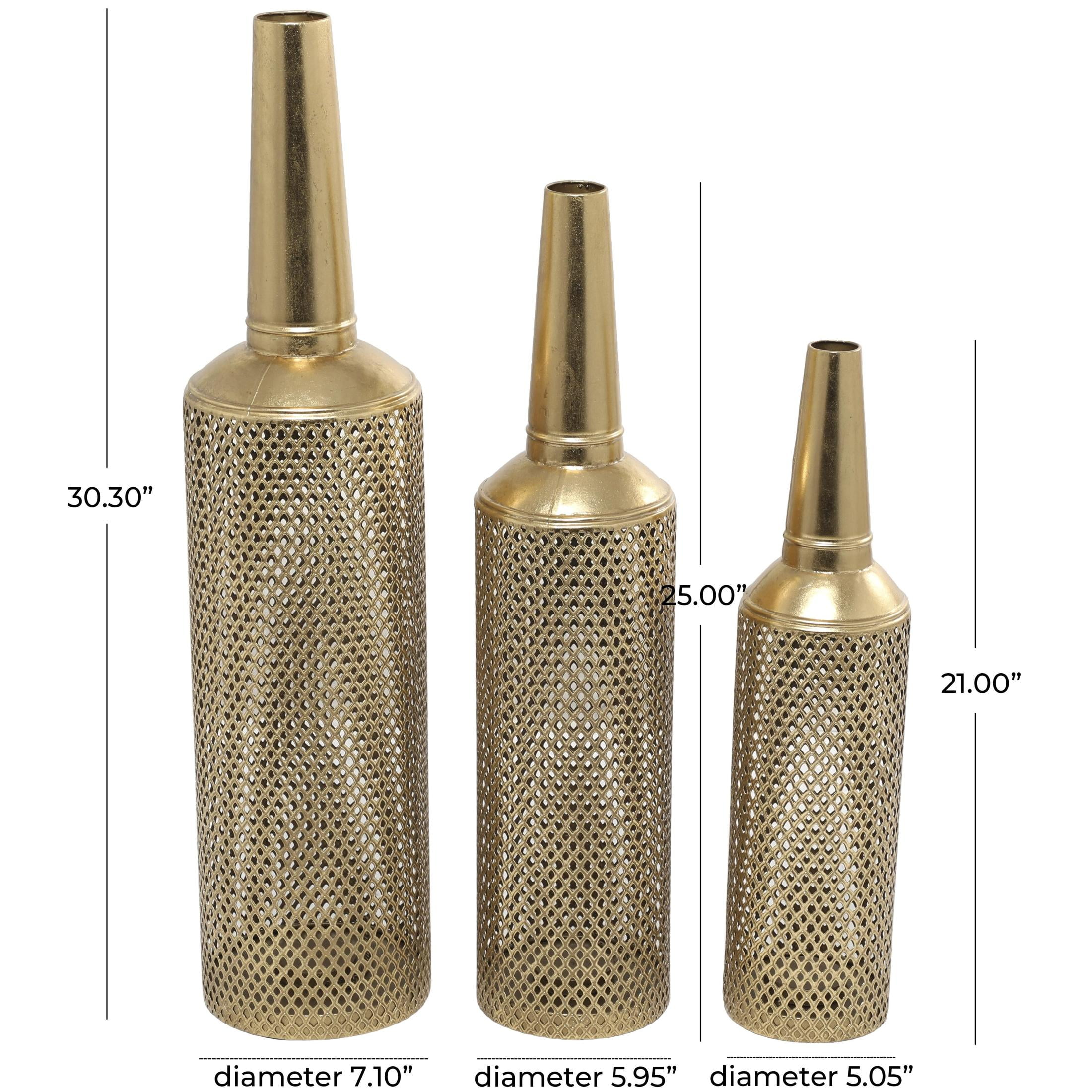 DecMode 30, 25, 21″H Tall Slim Floor Gold Metal Vase with Open Frame Design, Set of 3