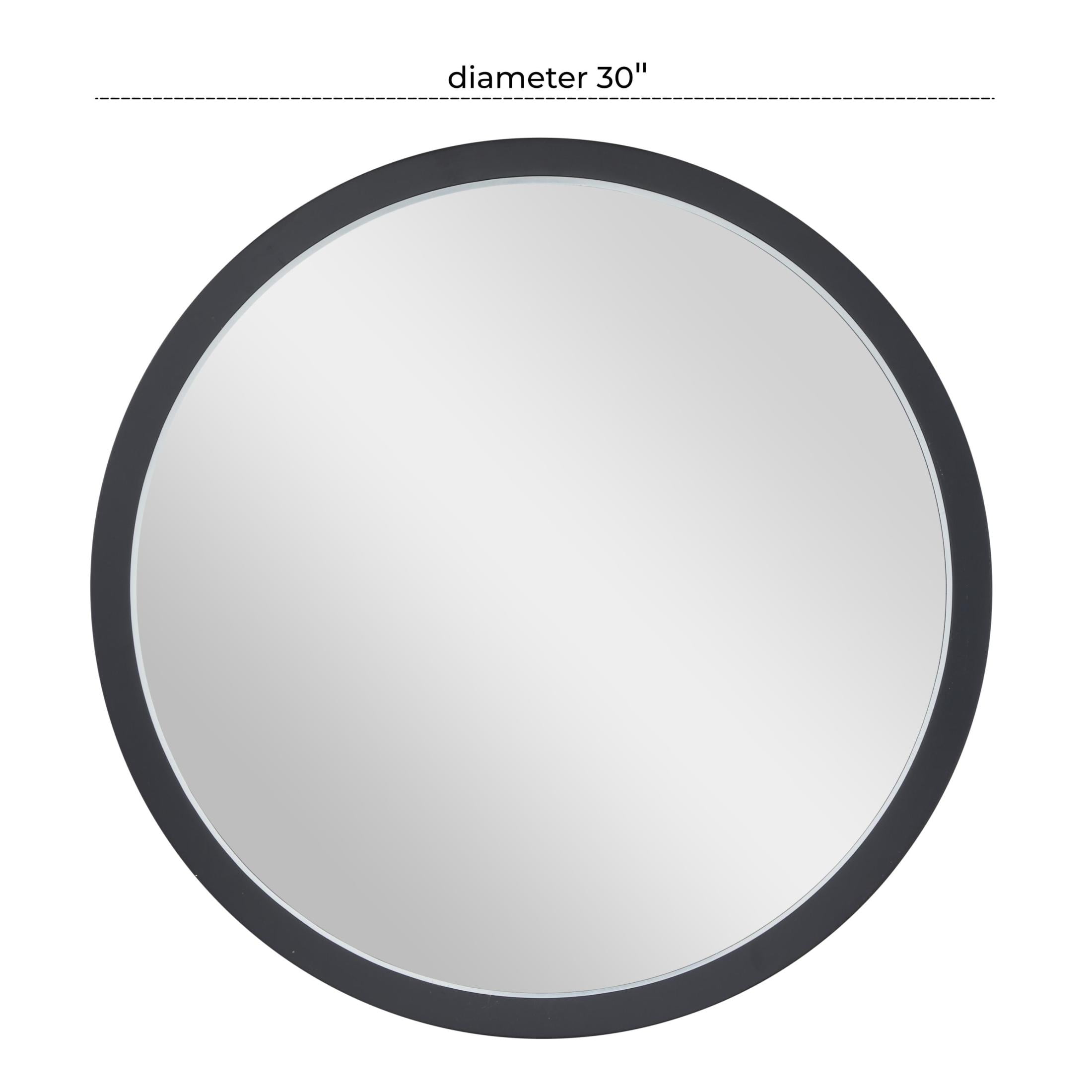 Embrace artistic expression with a style that highlights bold designs with sleek lines, neutral elements, and a minimalist aesthetic This black room wall mirror is made of quality MDF and glass materials This round hanging wall mirror is furnished with a matte black wooden frame finish and a reflective glass The wood wall mirror features a round-shaped reflective glass and a sleek black wooden frame The black wooden wall mirror measures 30L x 2W x 30H inches, and weighs 17.50 lbs This matte black mirror for wall accentuates a round shape and thin black frame Wipe clean with a dry cloth The contemporary accent wall mirror features MDF cut to shape with a backing frame for sturdiness Contemporary style DecMode 30″ x 30″ Black Wall Mirror with Thin Frame makes a perfect addition to any home