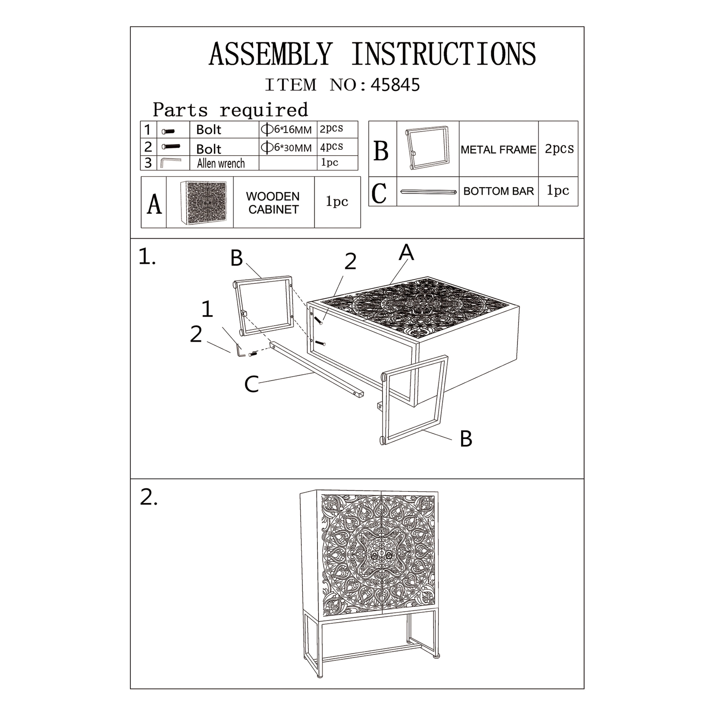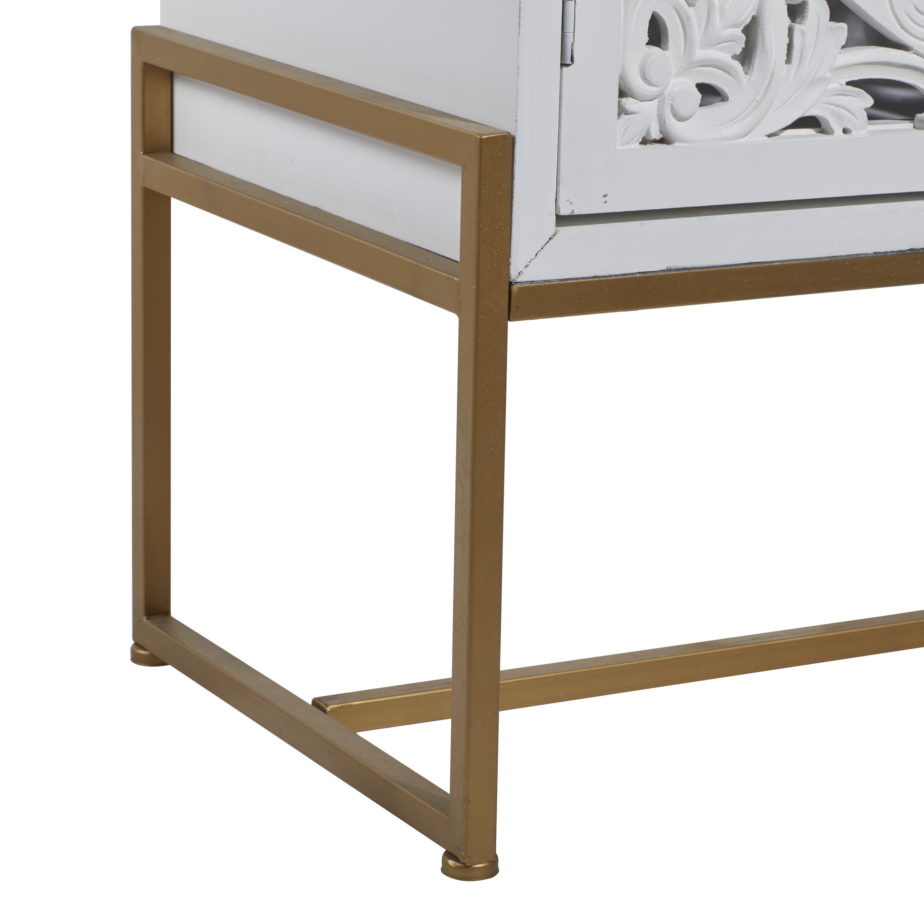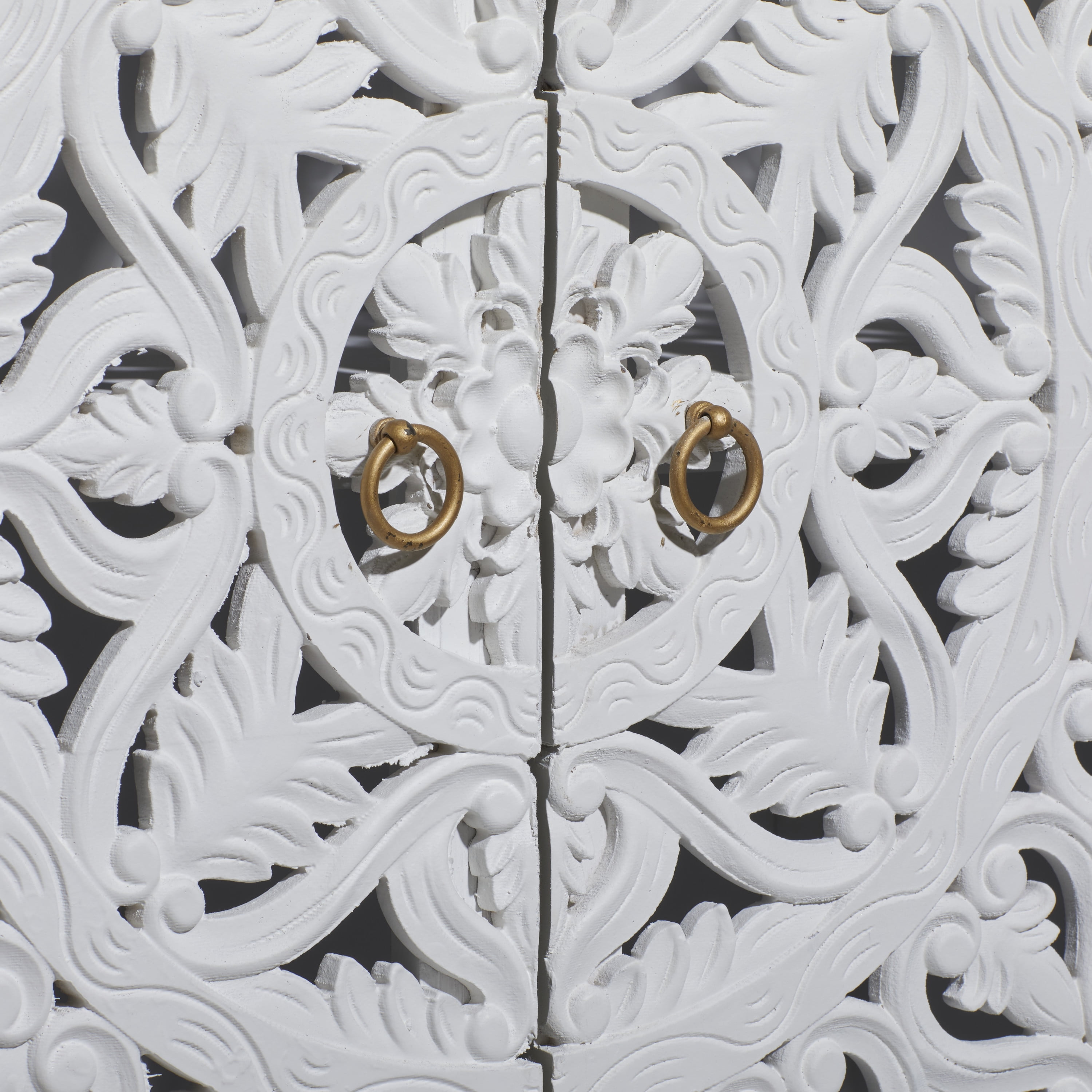 | Color | White Intricately Carved 1 Shelf and 2 Doors Radial Floral Rectangle 30" x 15" x 42" |