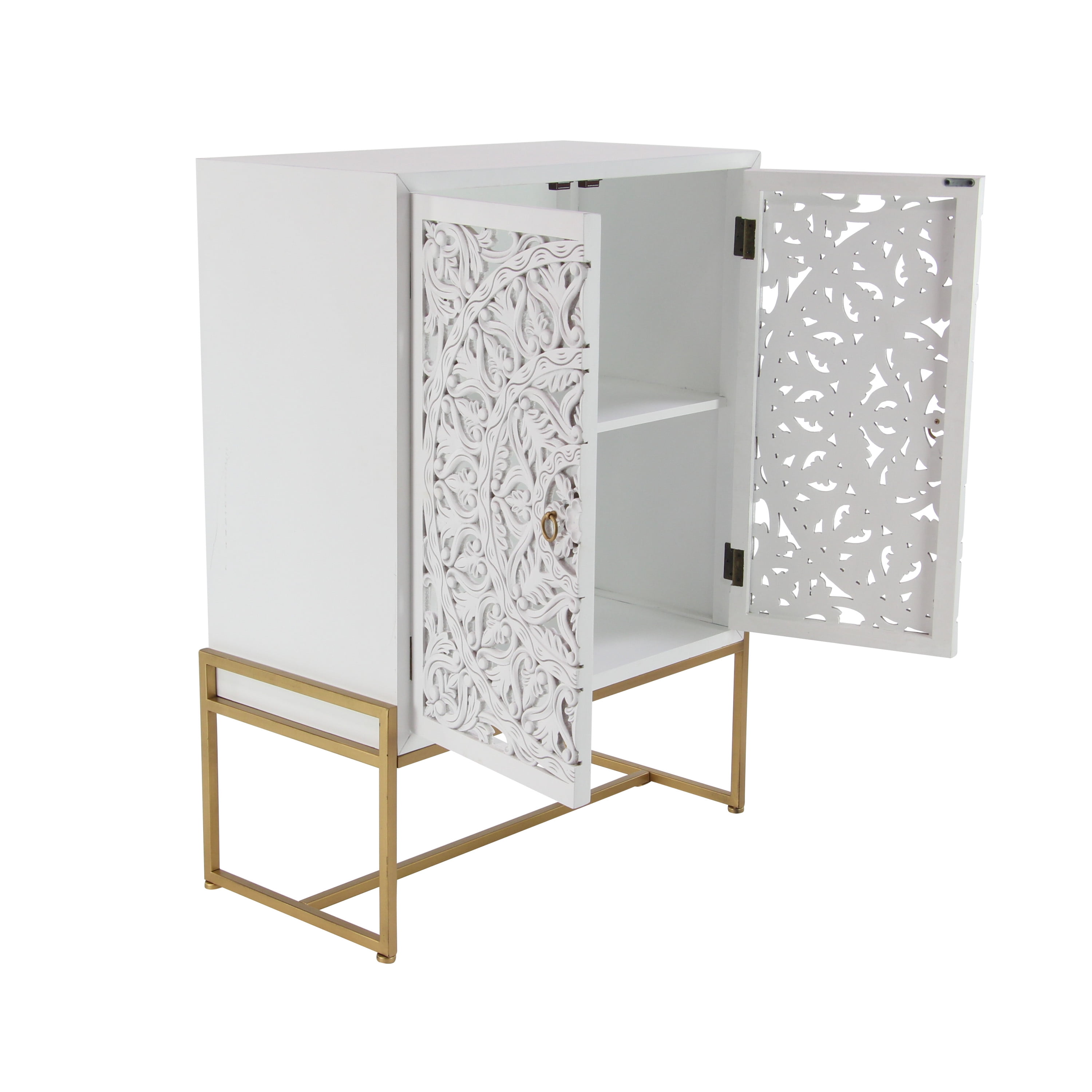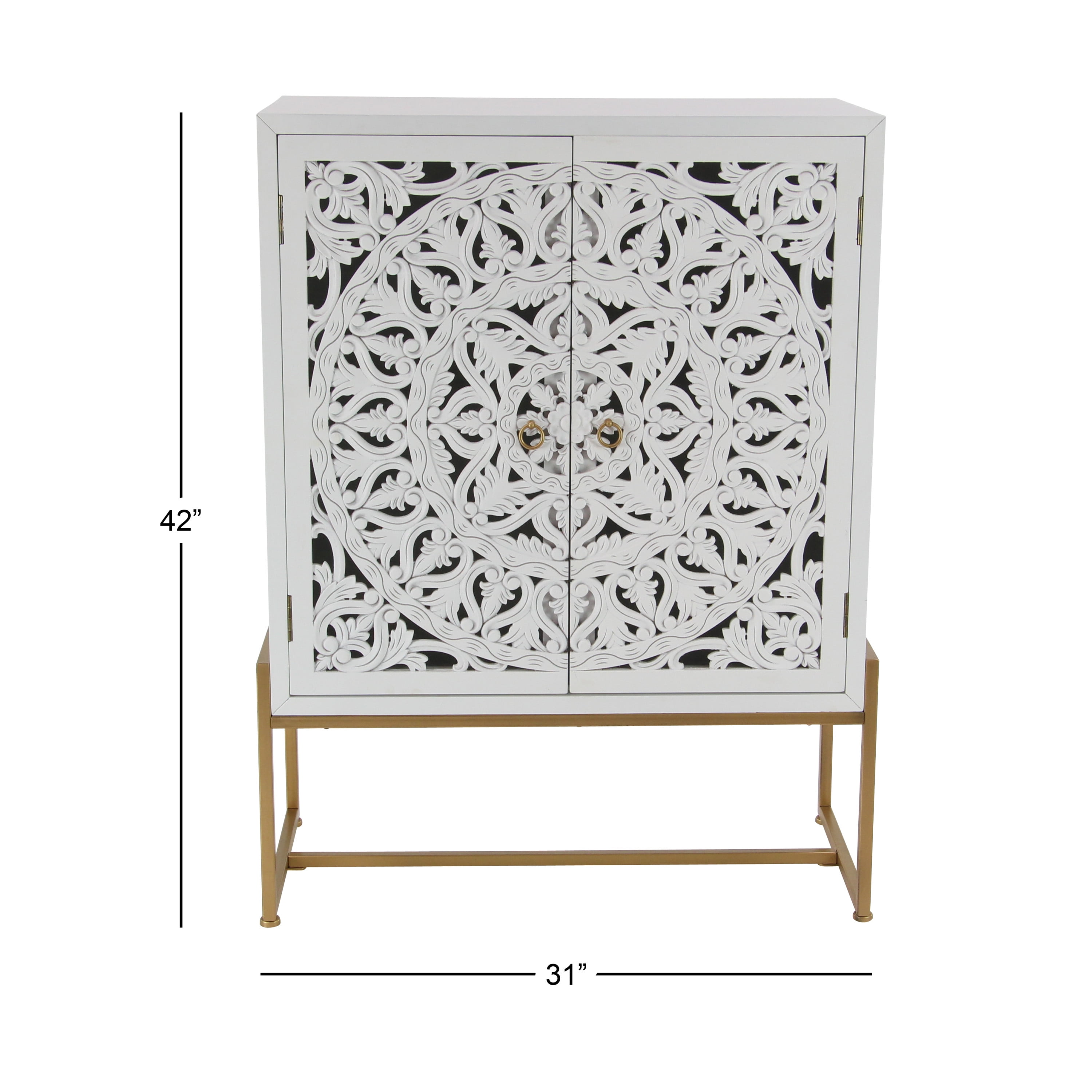 DecMode 30″ x 42″ White Wood Intricately Carved 1 Shelf and 2 Doors Floral Cabinet, 1-Piece