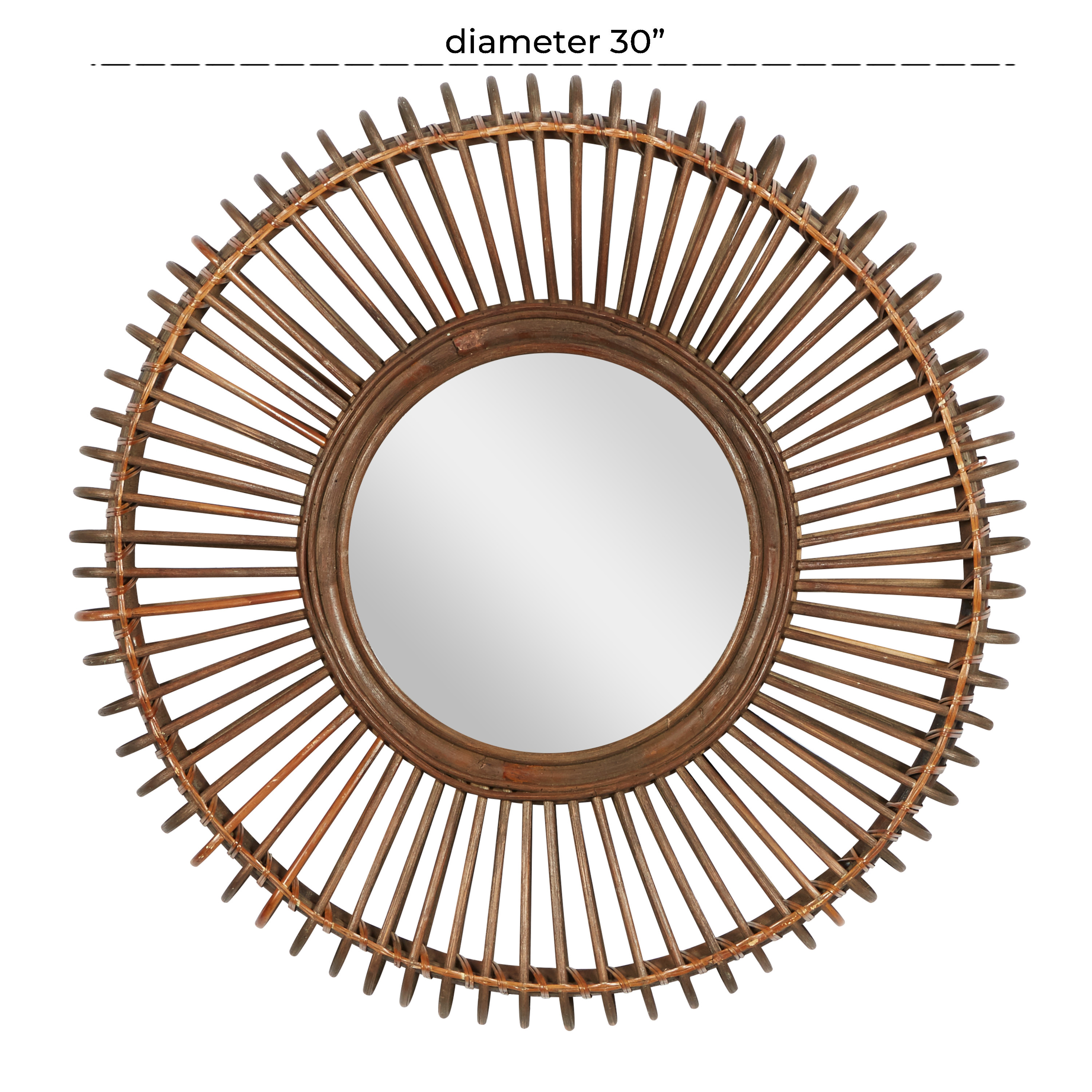 DecMode 30″W, 30″H Round Wall Mirror, Brown
