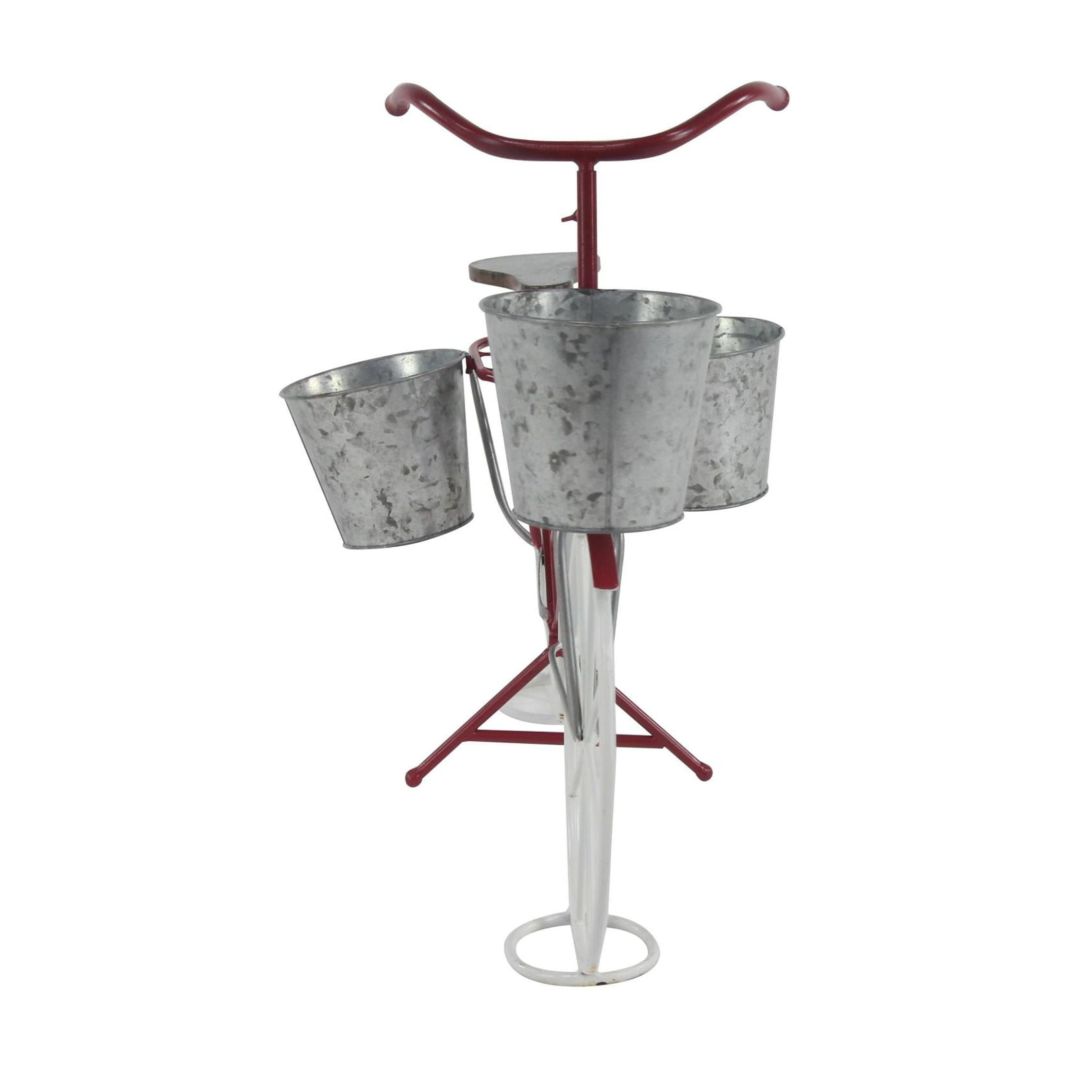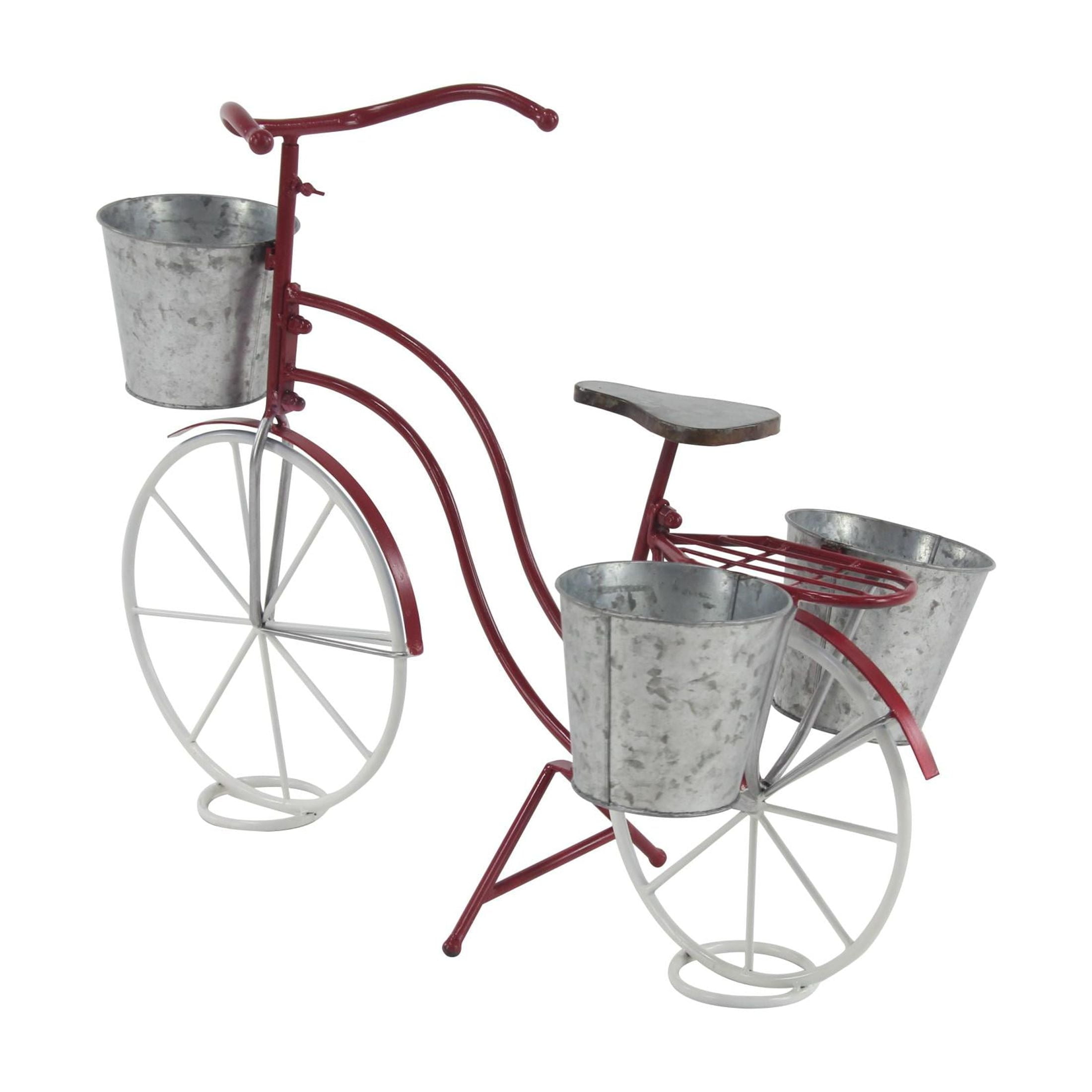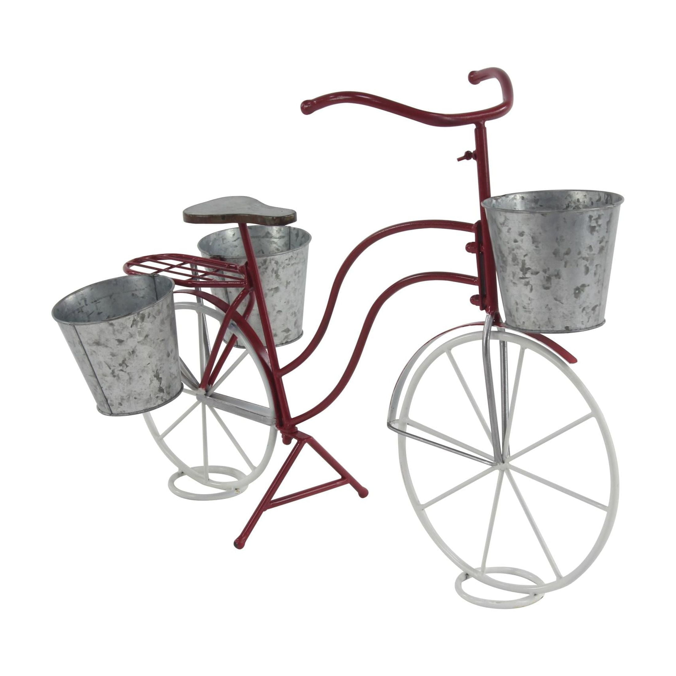 DecMode 31″ x 15″ x 23″ Red Metal Bike Plantstand with Basket and Saddle Bag Planters