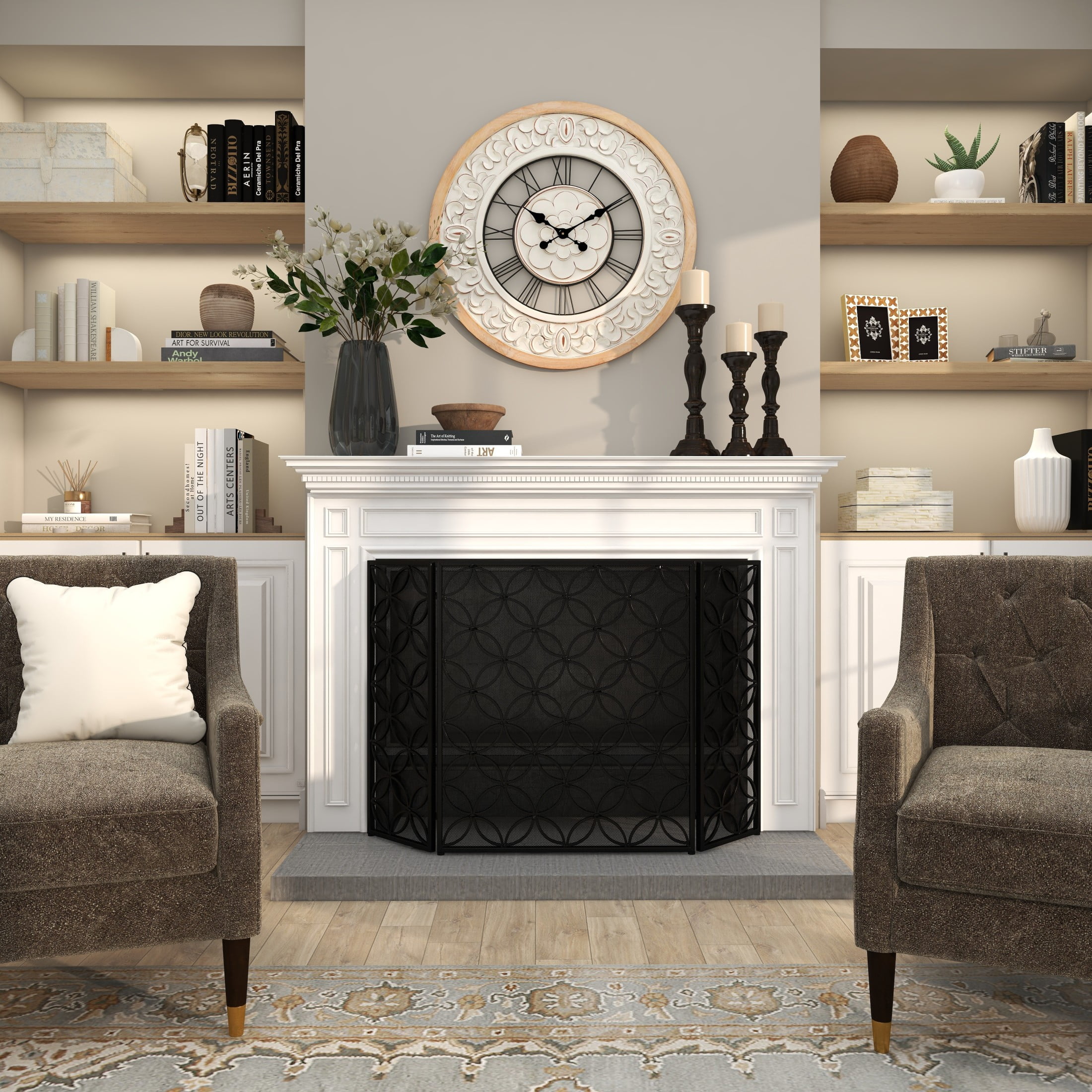 DecMode 32″ White Wooden Floral Carved Wall Clock with Black Metal Accents is a unique addition to your stylish home. Place the floral wall clock for home on your living room walls or hallway to create a serene atmosphere. Requires 1 AA battery, not included. This item ships in 1 carton. Features Roman numerals for the hour markers. The clock mechanism runs silent. Can be hung vertically using the d-rings; nails and screws not included. Suitable for indoor use only. This item ships fully assembled in one piece. This is a single white colored oversized wall clock. Farmhouse style.