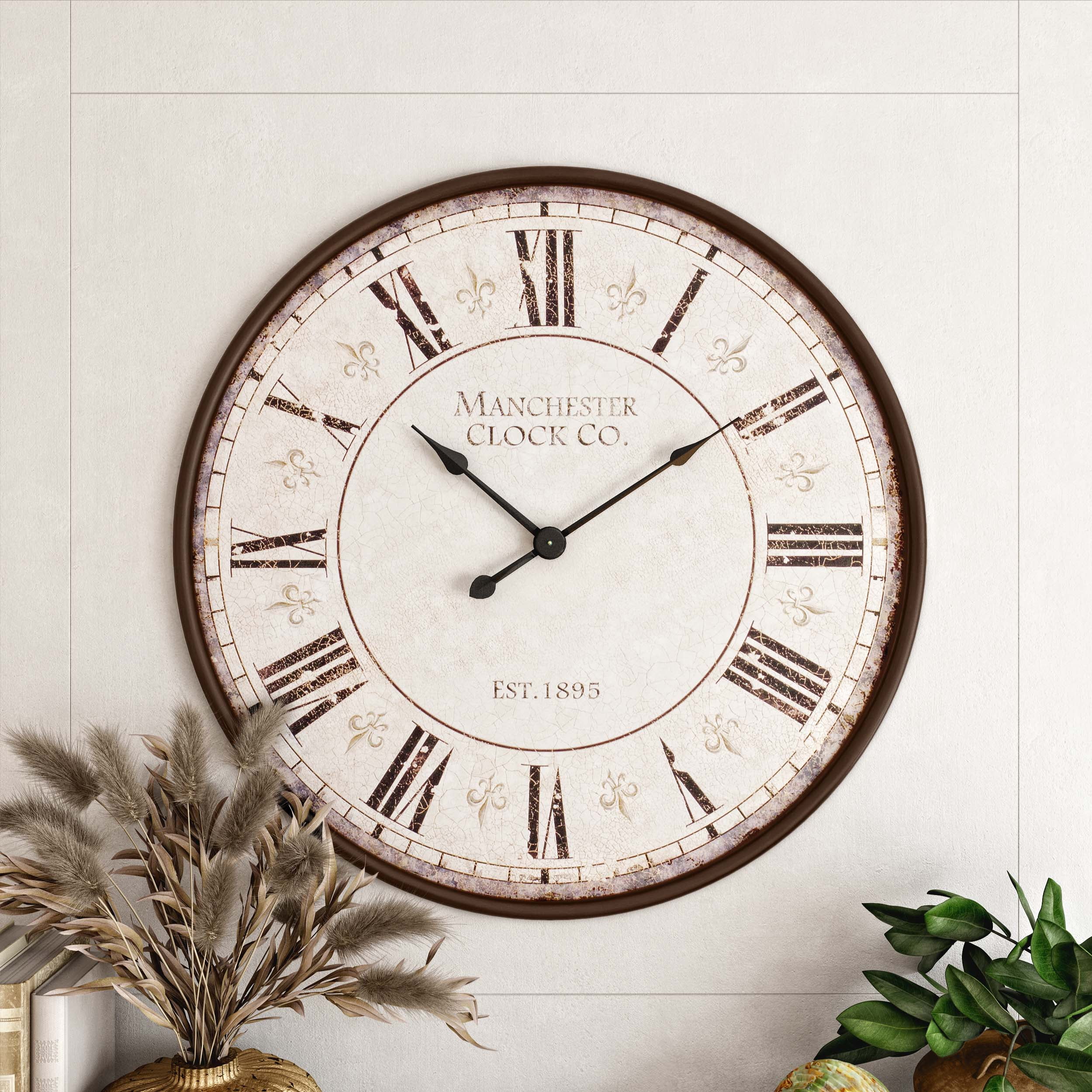Designed with rugged charm and edgy allure, where metal finishes and raw materials unite to create an urban aesthetic that showcases your artistic expression This brown decorative wall clock is crafted from solid iron material, ensuring durability and longevity The cluster wall clock for decoration features black, brown, rust, and bronze colors in a weathered finish The iron wall clock showcases an intriguing array of gear cogs forming an abstract canvas for two clock faces The brown metal wall clock measures 34L x 2.50W x 17H inches, and weighs 3.09 lbs This weathered brown oversized wall clock features gear cog figures and round discs Wipe clean with a dry cloth The industrial wall clock for kitchen is constructed with welded metal gear cogs attached together to create a unique design Industrial style DecMode 34″ x 17″ Brown Metal Gear Vintage Weathered Dual Wall Clock makes a perfect addition to any home