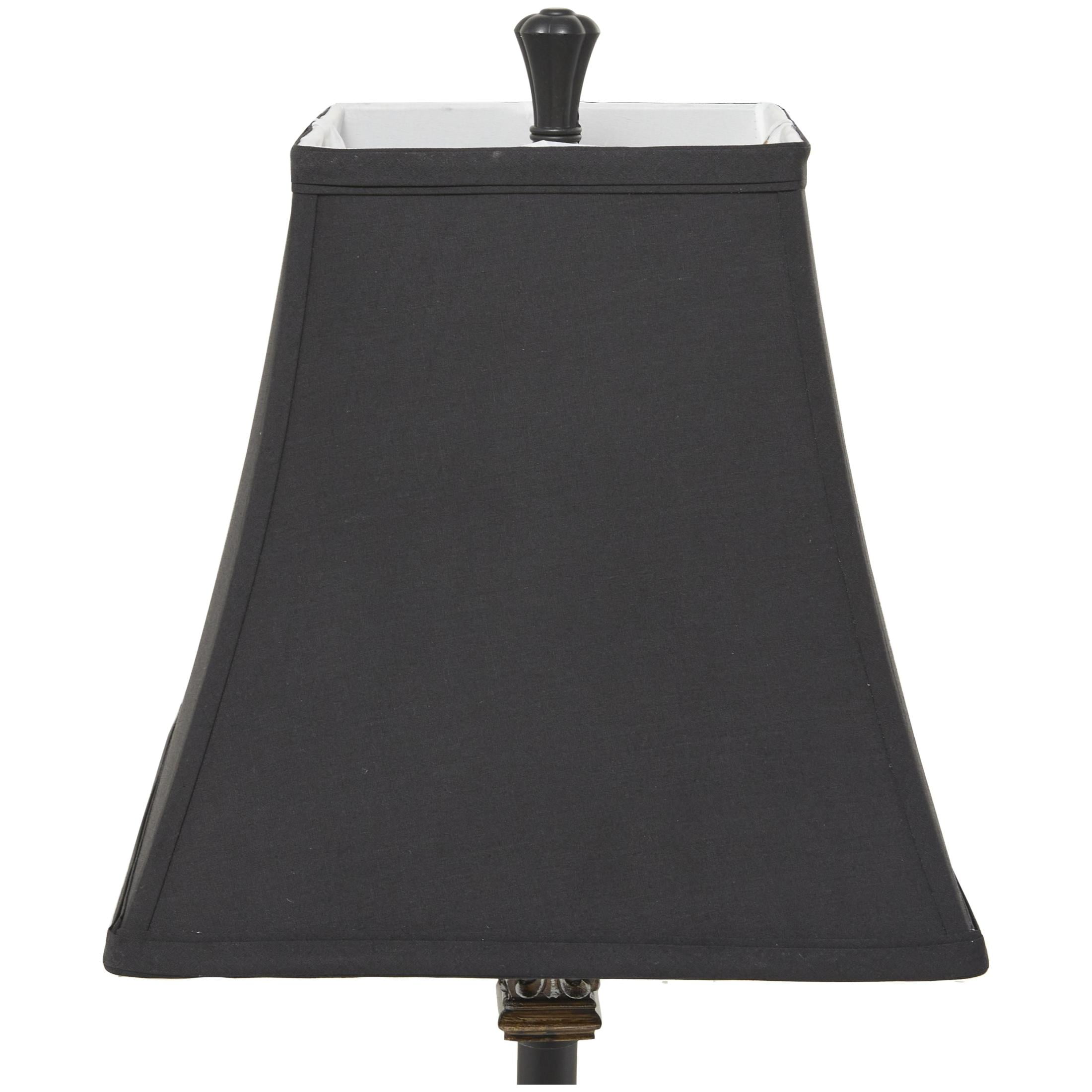 Immerse yourself in the harmony and beauty of pieces that unite natural textures with ornate details to create that Old World charm Crafted from polystone, metal, and quality fabric, the black room buffet lamp exudes quality and durability The square buffet lamp for the living room features a classic hand-painted black stand with a weathered finish, a black fabric shade, and gold accents from top to base As a unique feature, the polystone buffet lamp boasts a bell-shaped shade and a post adorned with intricate fleur-de-lis carvings The black polystone buffet lamp measures 11L x 11W x 31.25H inches, and weighs 4 lbs The matte black buffet lamp for table stands out with its bell-shaped shade, slender stand, and trapezoidal and square base, adorned with a fleur-de-lis on the base Wipe clean with a dry cloth The Tuscan living room buffet lamp is made from polystone and metal showcasing a beautifully detailed footed base, and seamlessly attached to the stand Tuscan style DecMode 35″ Antique Style Fleur De Lis Black Buffet Lamp with Brown Fabric Shade makes a perfect addition to any home