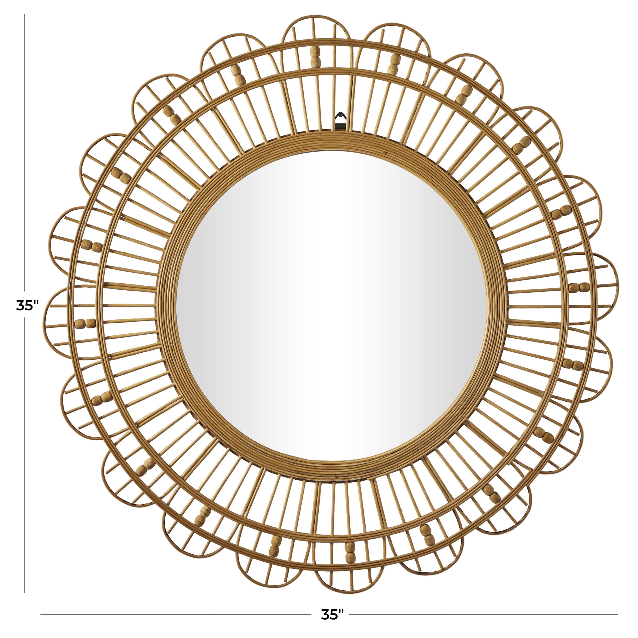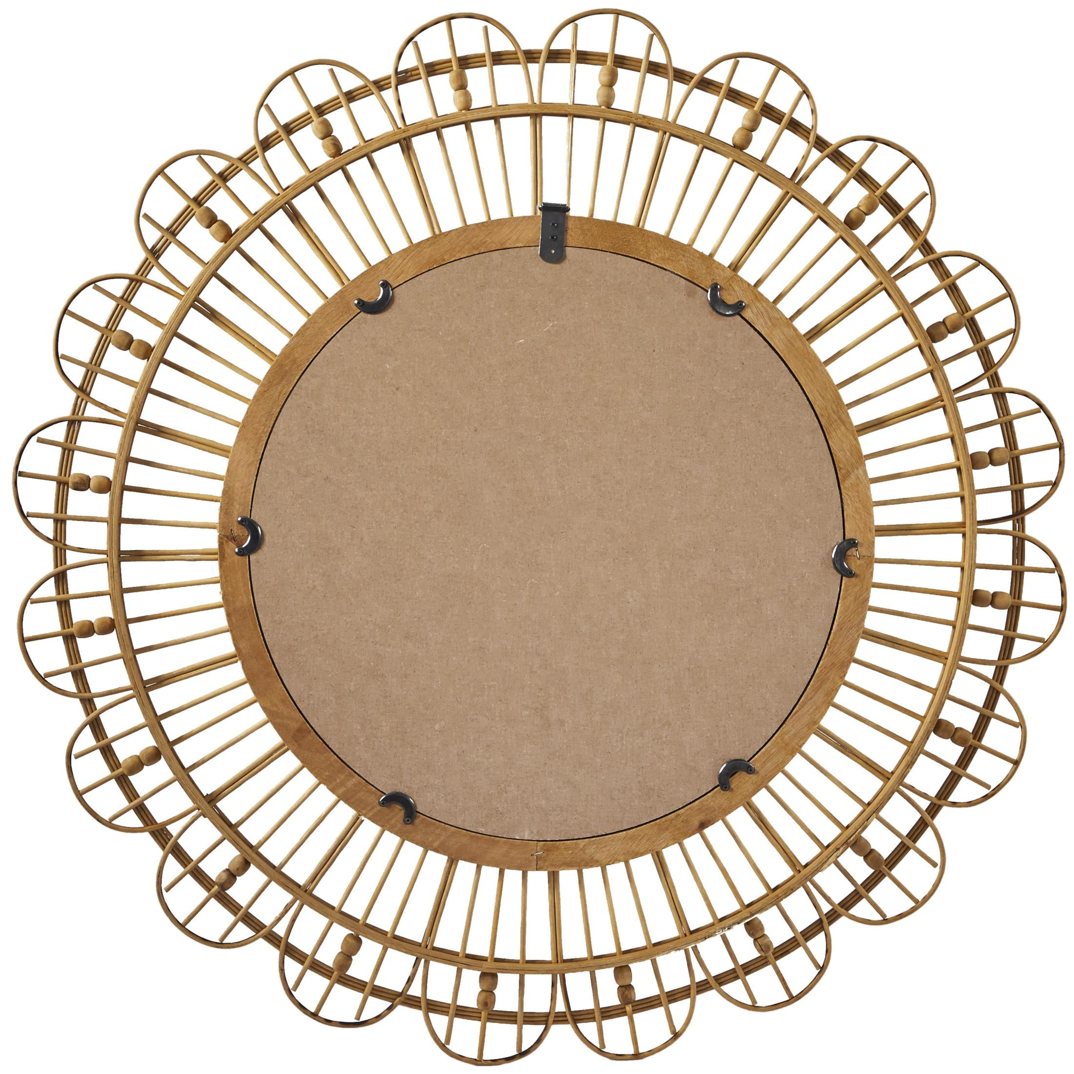 DecMode 35″ x 35″ Brown Handmade Woven Floral Wall Mirror with Beaded Accents