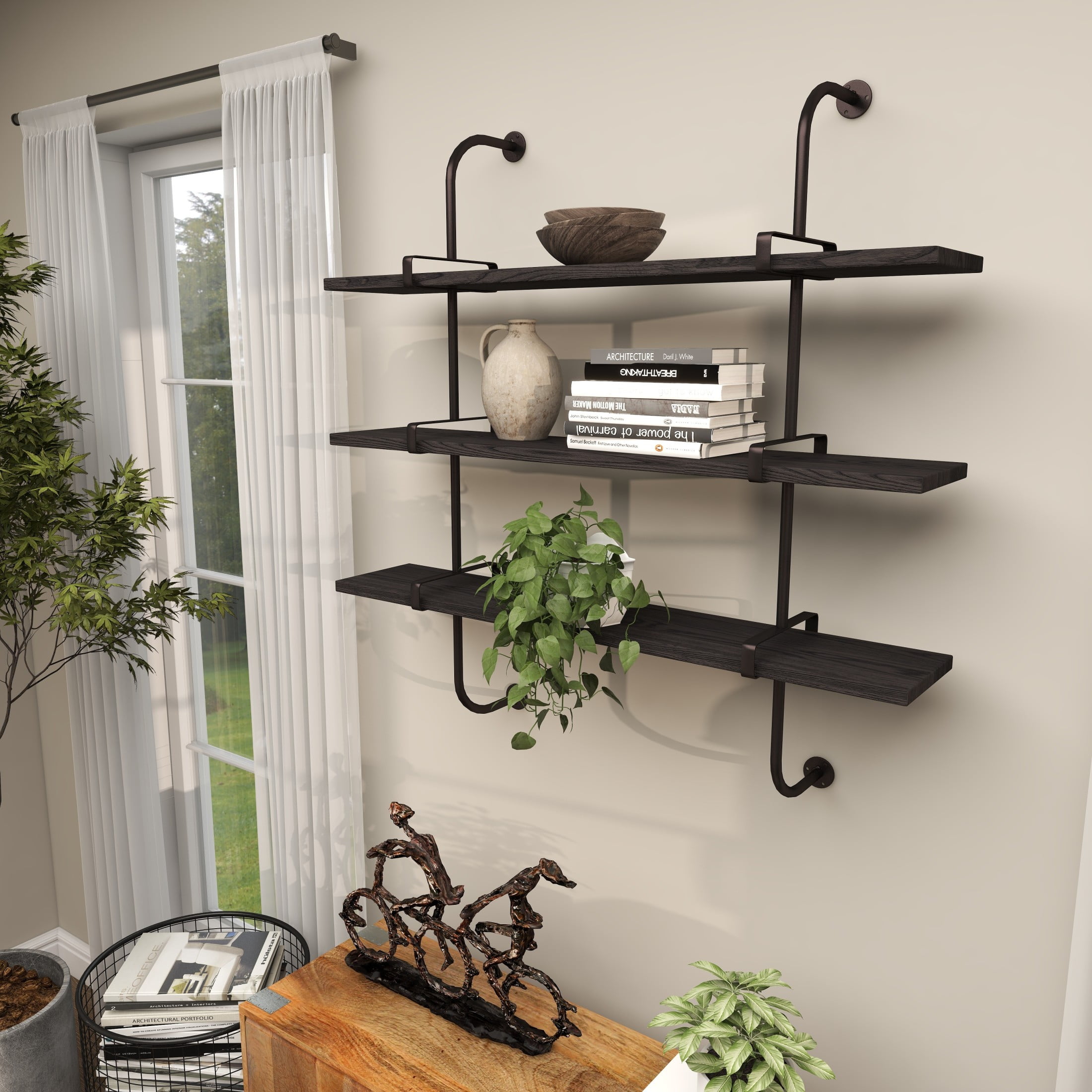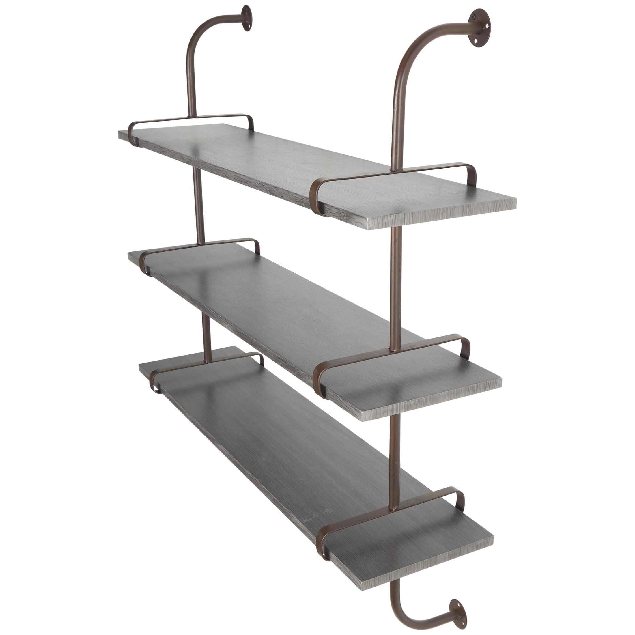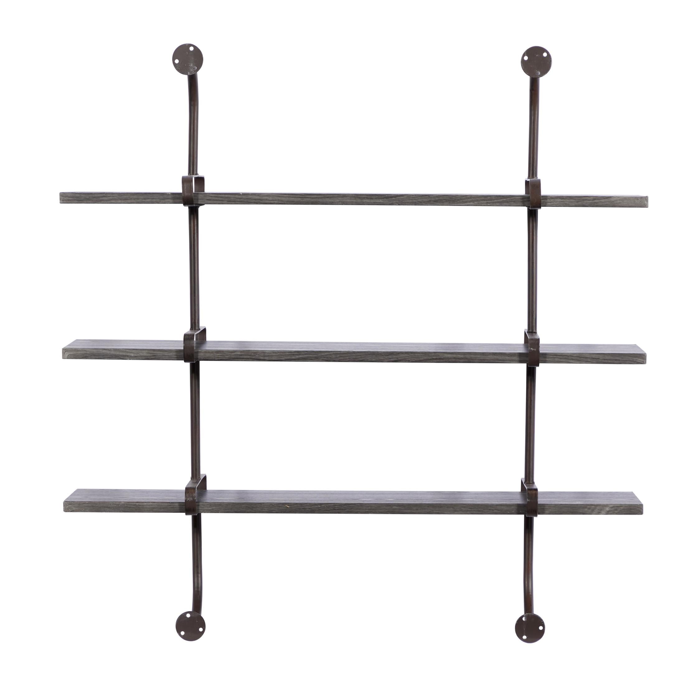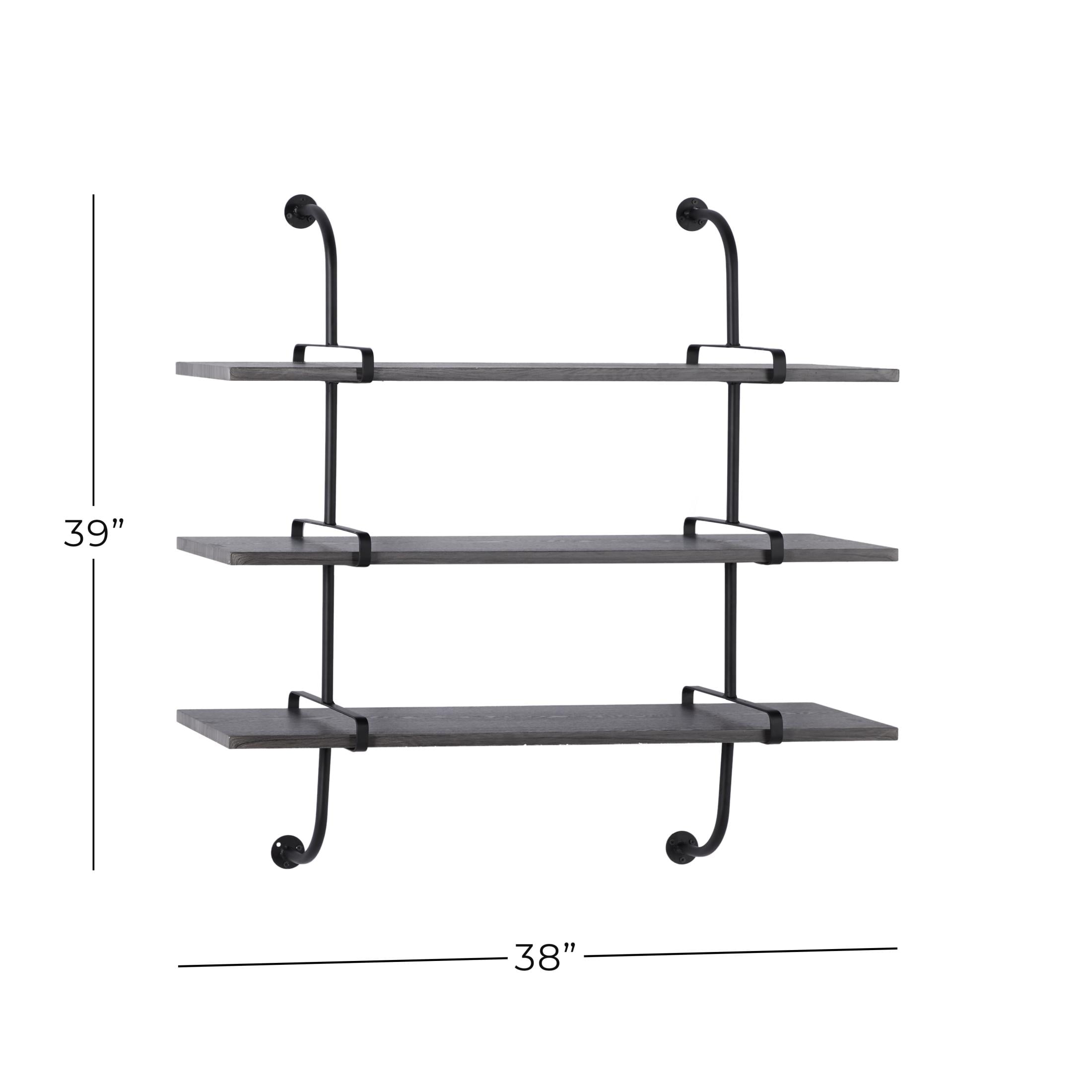 DecMode 38″ x 10″ 3-Tier Gray Wall Shelf with Black Metal Brackets